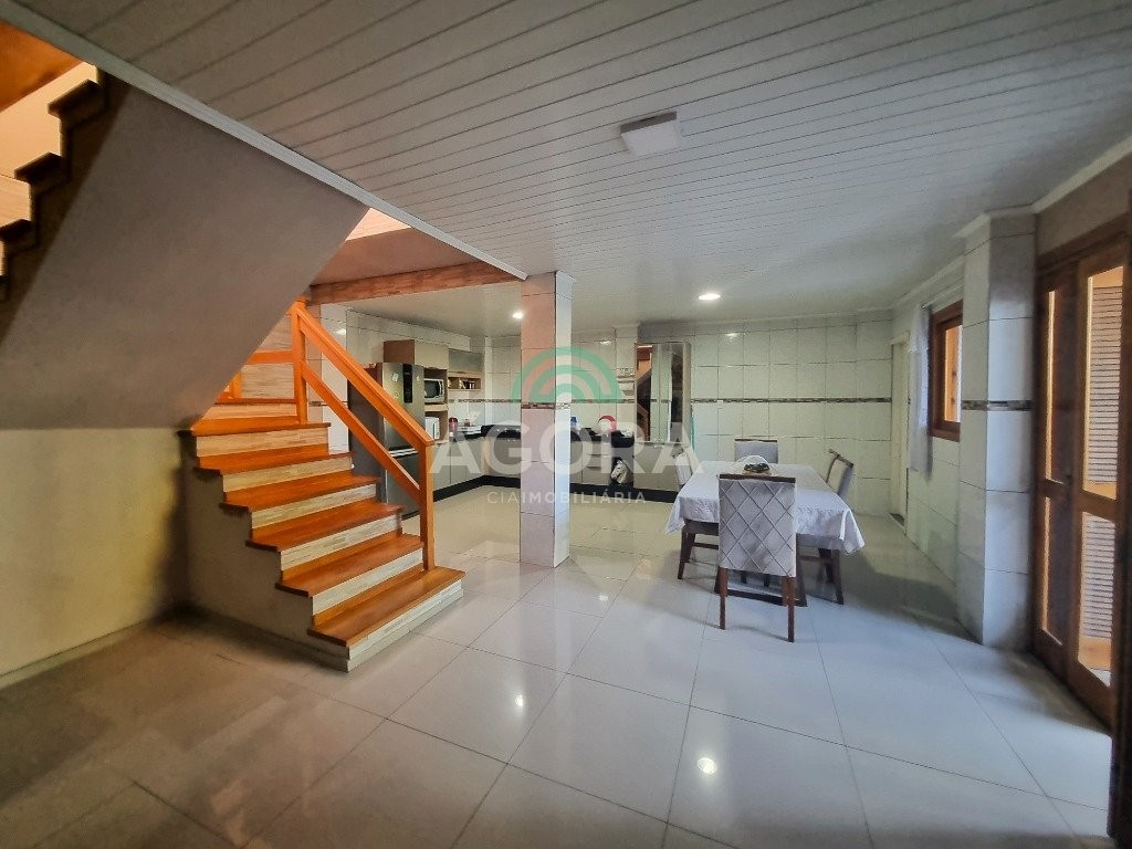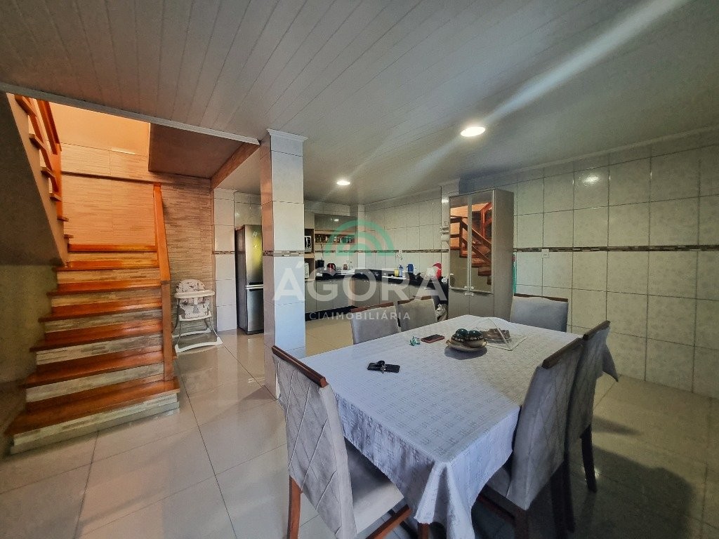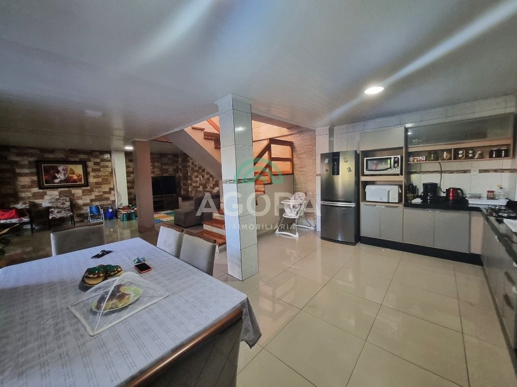 Sobrado com 3 (três) dormitórios, de 218m² privativos, sendo sala de estar, jantar, cozinha, área de serviço, pátio amplo com piscina e churrasqueira. Ficam no imóvel: cozinha sob medida, banheiros completos com armários, fogão a lenha, e pia de mármore. Localizada no bairro que mais cresce próximo a todos os mercados, praças, park shopping, capão do corvo.