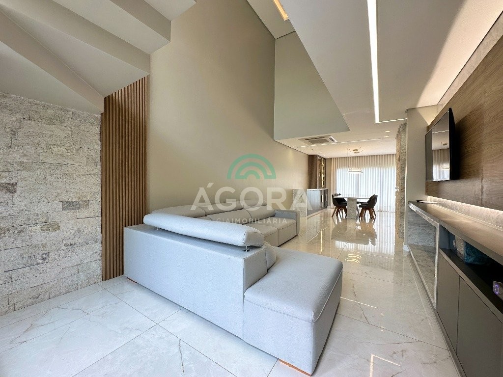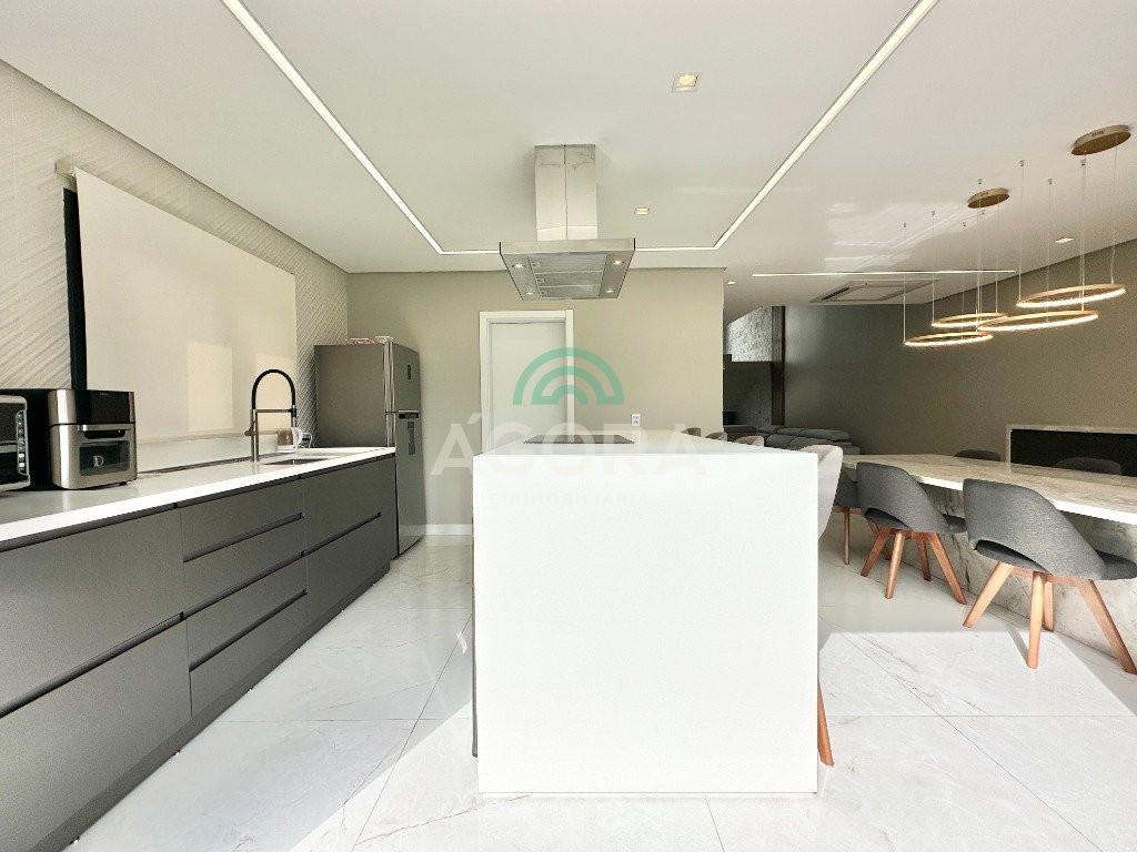 Ágora e cia vende belíssimo sobrado de alto padrão, sendo 187m² privativo,semi mobiliado com 3 (três) suítes sem 1 (uma) máster com closet e banheira e coluna de jacuzzi, sala de estar com pé direto duplo, living integrado , cozinha com ilha e eletrodomésticos de ultima geração, pisos aquecidos em toda casa ,placas solares, totalmente climatizada sendo ar central na parte inferior estar e jantar , split 12 mil btus nas demais acomodações. Porcelanto e pedras na parte inferior e na parte de cima vinilico, escada revestida em mármore, esquadrias pvc,cortinas automatizadas e moveis sob medida em toda casa.