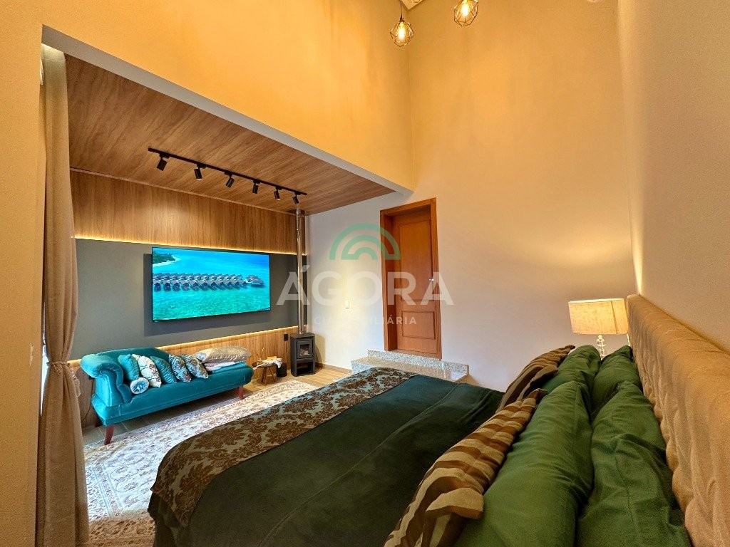 Agora cia imobiliária vende: sobrado em condomínio com 200m² privativos; 2(dois) dormitórios, sendo 1(uma) suíte máster com: 2(dois)closets, banheira de hidromassagem, lareira e sacada; escritório que pode ser transformado em um banheiro para segunda suíte; living para 2(dois) ambientes com lareira e cozinha integrada; espaço gourmet com lareira. O imóvel fica semimobiliado, com todos os móveis planejados e eletros embutidos, 5 split´s. Condomínio com infra excelente: 2(dois) salões de festas, playground, academia, quiosque com churrasqueira, quadra de esporte e segurança 24h; localizado em região privilegiada, a poucos minutos do parkshopping e br-116.