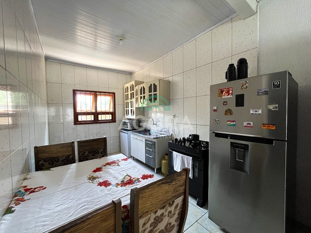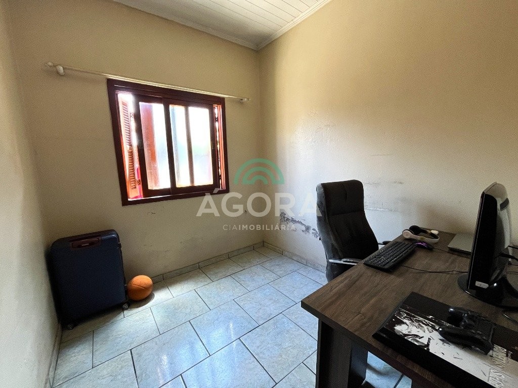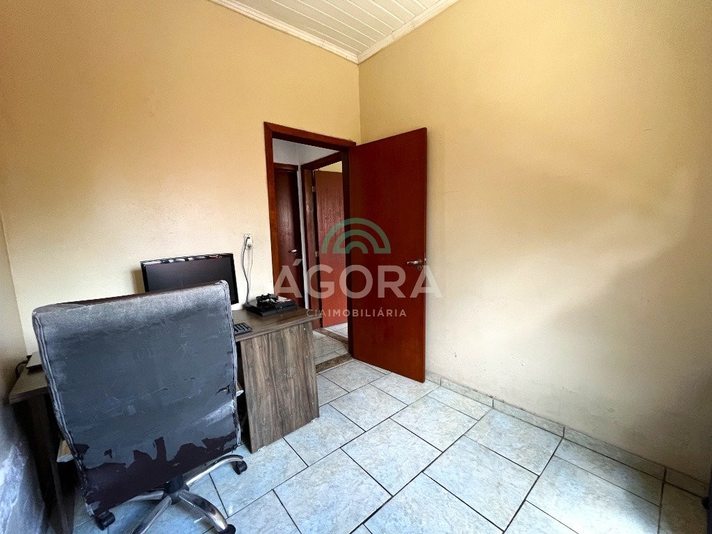 Agora cia imobiliária vende, casa térrea com 100m² de área privativa , sendo 3(três)dormitórios, 1(uma)suíte, sala, cozinha, 2(dois) banheiros e área com churrasqueira. Possui uma sala comercial na frente com 1(um ) banheiro. Ficam no imóvel moveis da cozinha e roupeiros. Localizado próximo a br116. Obs. Possui uma sala comercial de 42m²