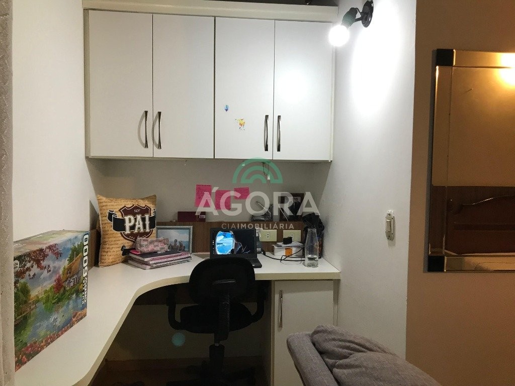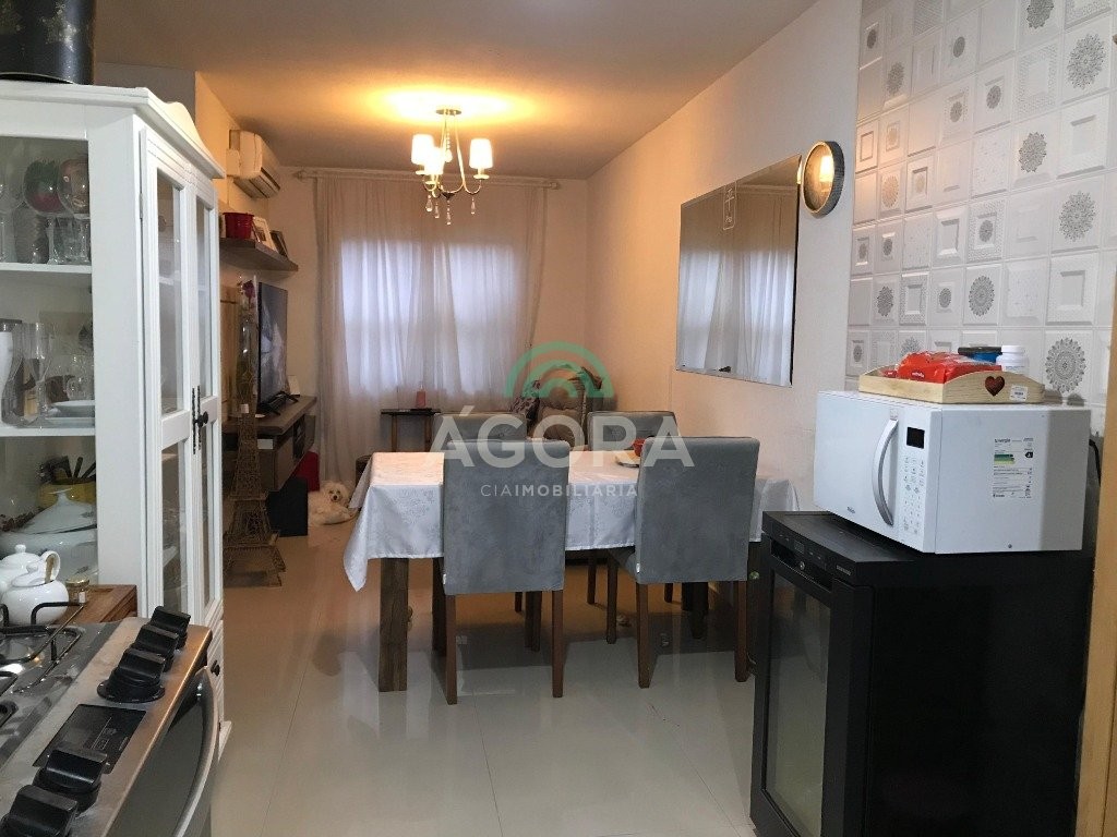 Sobrado no bairro igara em canoas. Este imóvel conta com 2 (dois) dormitórios, sendo 1 (uma) suíte, possui churrasqueira , fogão a lenha, planejados somente na suíte, conta um pátio nos fundos, com duas vagas cobertas e uma descoberta, permanecem dois splits.