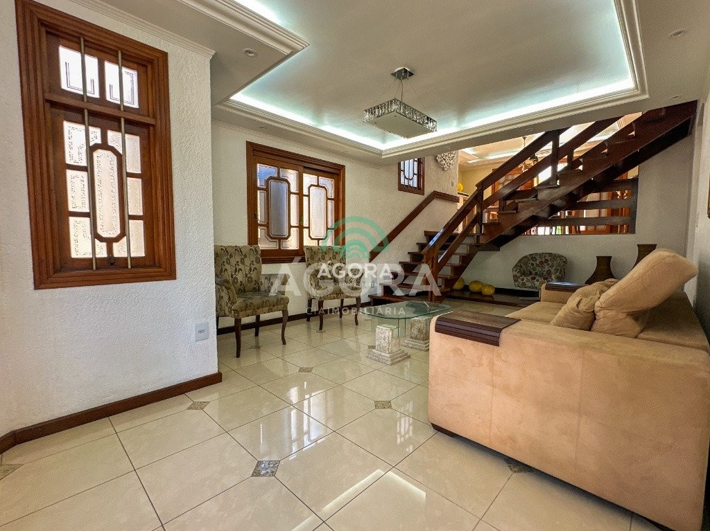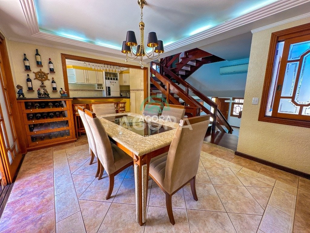 Àgora imobiliária vende: sobrado mobiliado, 4 (quatro) dormitórios, sendo 2 (duas) suítes, uma delas suíte master com closet e hidromassagem. Dormitórios com sacadas. Com excelente iluminação, sala de jantar com lareira integrada com vista para a piscina, cozinha com churrasqueira, lavanderia, banheiro social, lavabo, escritório que pode virar um quarto no primeiro andar tendo acesso direto pela garagem, quiosque com espaço gourmet , piscina grande, garagem coberta para 4 (quatro) carros e 3 (três) descobertas, com o privilégio de ter acesso a área de lazer e ao escritório. Ficam todos os móveis fixos. Localizado em um dos melhores bairros da cidade, de alto padrão, próximo ao park shopping canoas, agregando qualidade de vida por ter supermercados, shopping e a revitalização do capão do corvo próximo ao imóvel. Fácil acesso ao centro de canoas e a br-116.