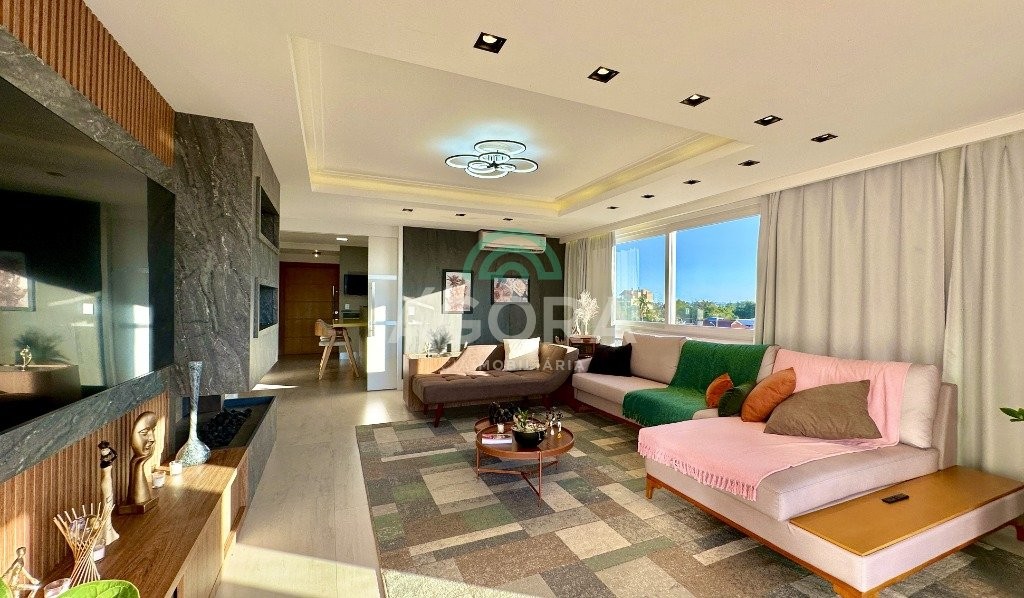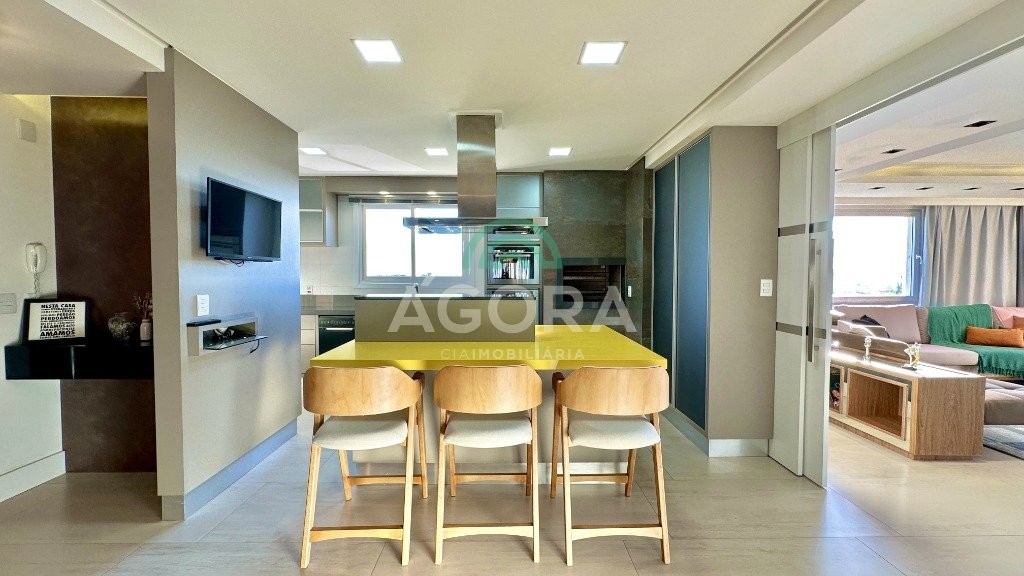 Ágora cia imobiliaria vende: apartamento 153m² privativos, 3(tres) suítes, transformado para 2(duas) suites, com living estendido, finamente mobiliado, 2(vagas) de garagem cobertas, no bairro nossa senhora das graças. Condominio com salão de festas e fitness mobiliado.