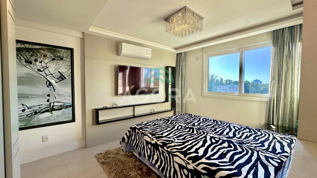 Ágora cia imobiliaria vende: apartamento 153m² privativos, 3(tres) suítes, transformado para 2(duas) suites, com living estendido, finamente mobiliado, 2(vagas) de garagem cobertas, no bairro nossa senhora das graças. Condominio com salão de festas e fitness mobiliado.