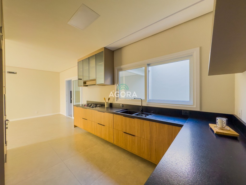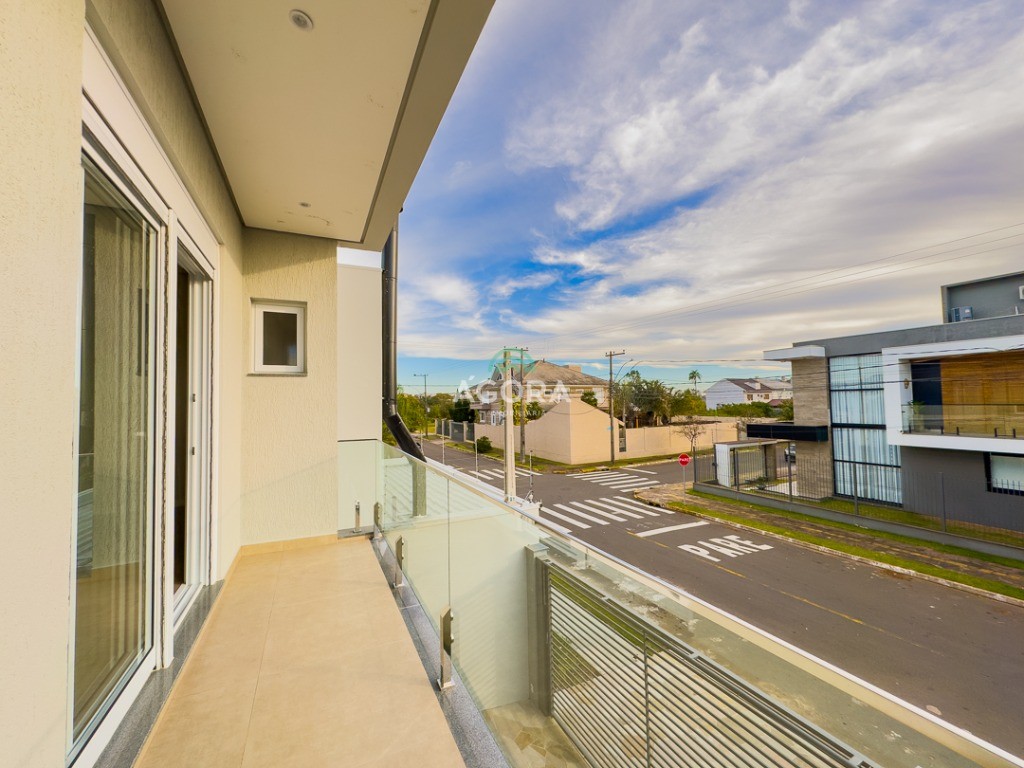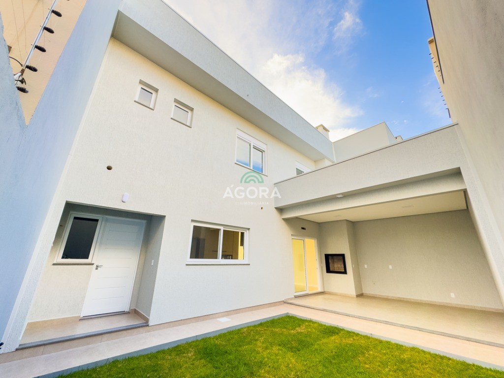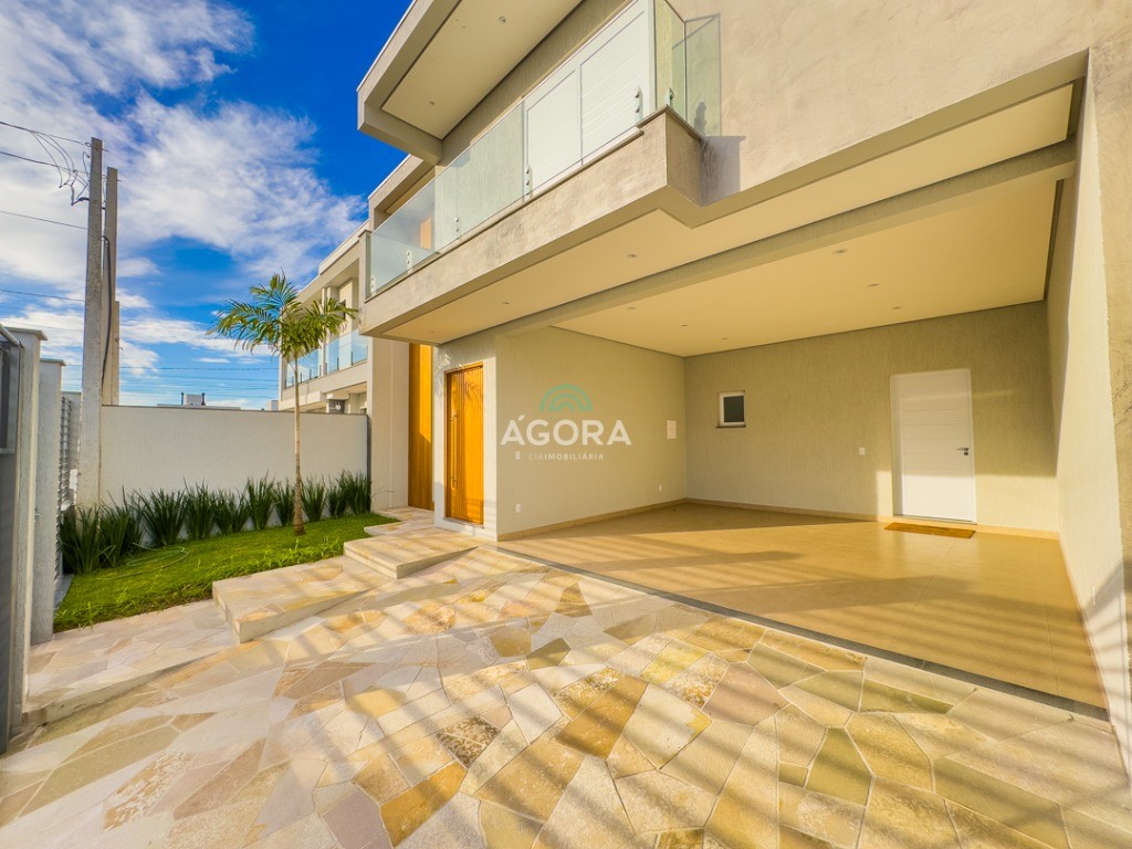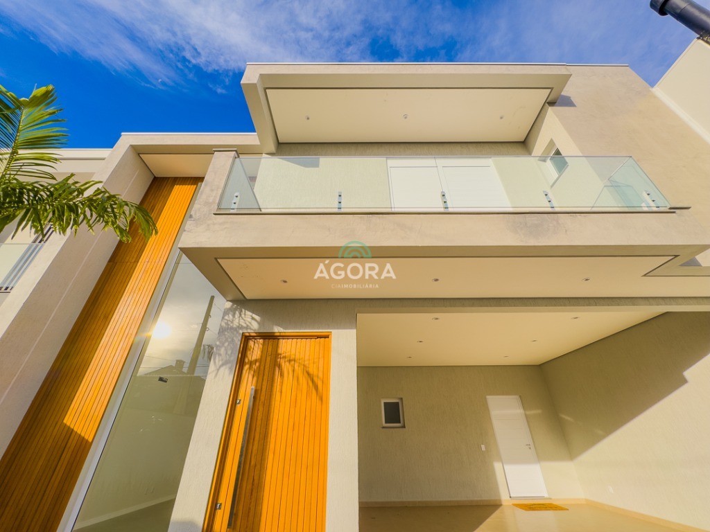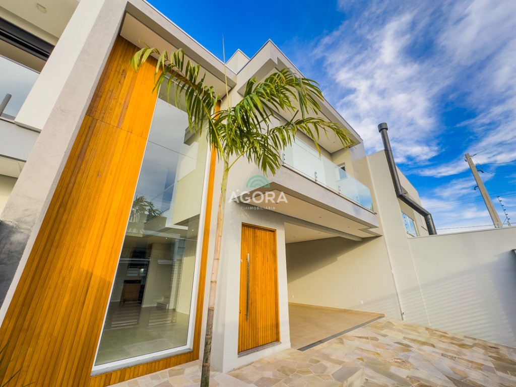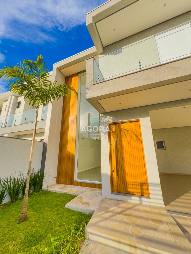 Ágora Cia Imobiliária vende: Sobrado com 3 (três) suítes, sendo a principal com banheira e sacada frontal. Este imóvel oferece conforto e privacidade para toda a família. Há ainda a opção de home office ou suíte estendida, adaptando-se facilmente ao seu estilo de vida. O térreo conta com sala de estar com lareira, cozinha e jantar integradas, proporcionando um ambiente acolhedor e fluido. Nos fundos, 1 (um) pequeno terraço integrado à sacada, churrasqueira e pátio privativo ideal para relaxar ou receber amigos. Possui lavanderia, depósito, 2 (duas) vagas de garagem cobertas e espera para carregador de carro elétrico. Acabamento impecável: Revestimento em porcelanato, esperas para split em todos os ambientes, água quente e infraestrutura para energia solar. Um sobrado que une sofisticação, eficiência e conforto em cada detalhe. Sobrado moderno arquiteto **André Pacheco** e construído por **Sérgio Fidelis**,
