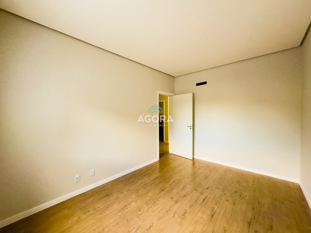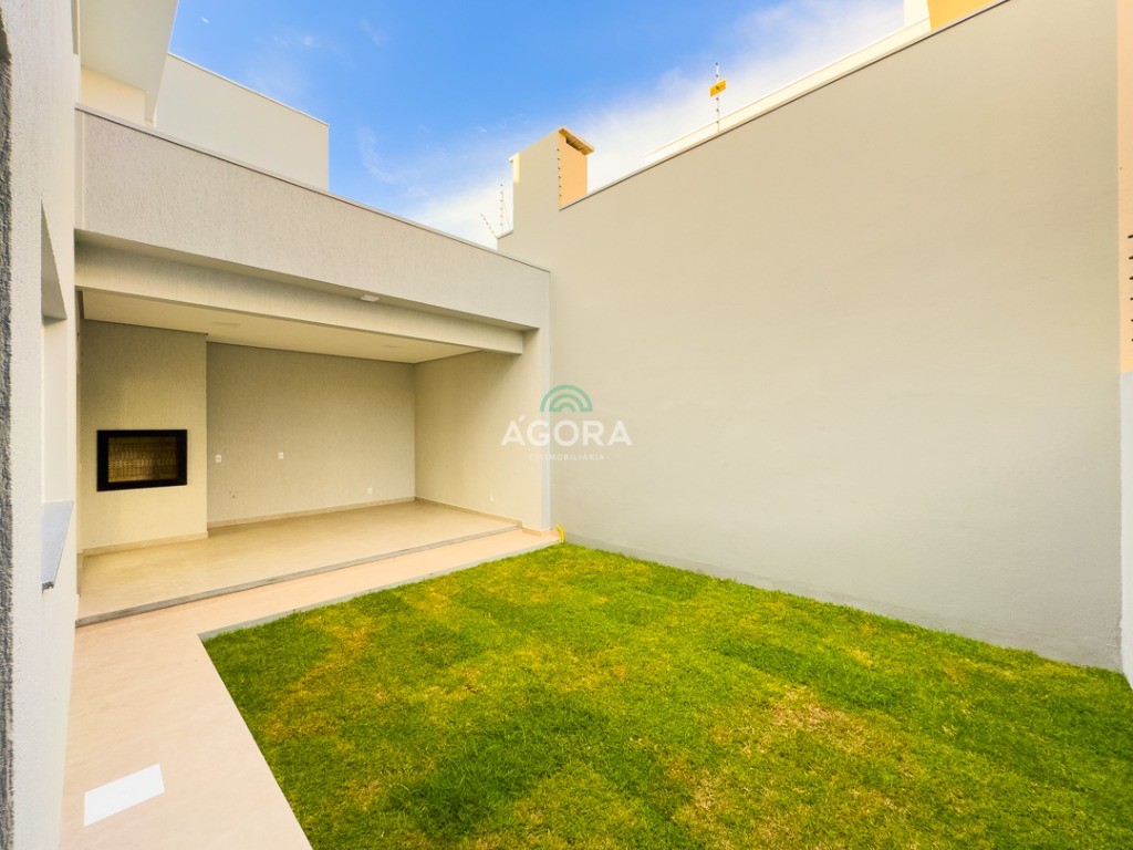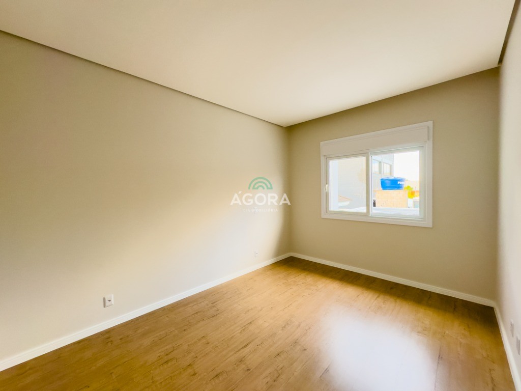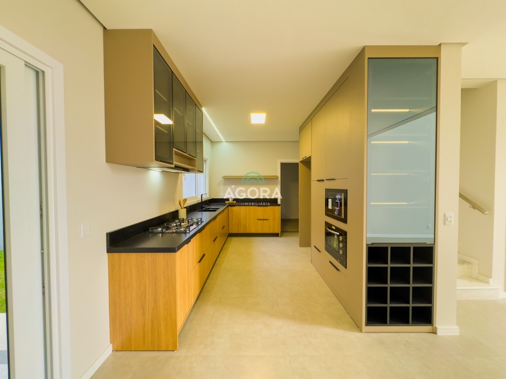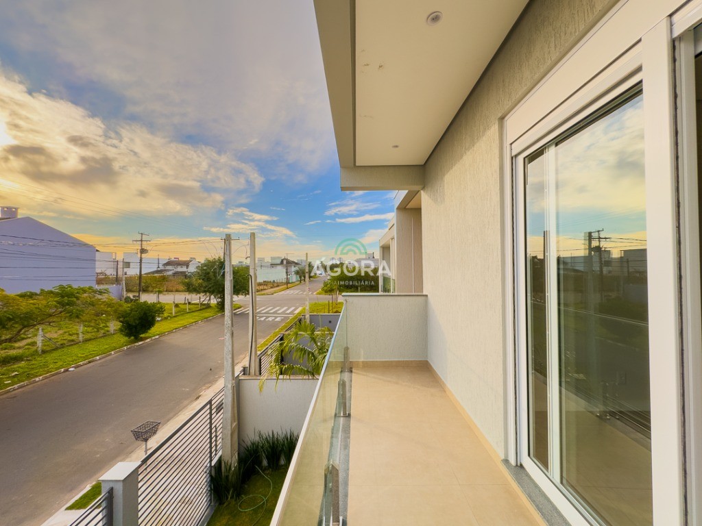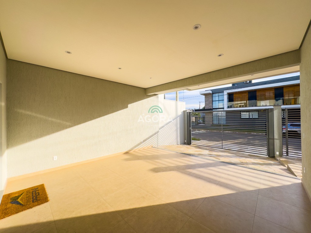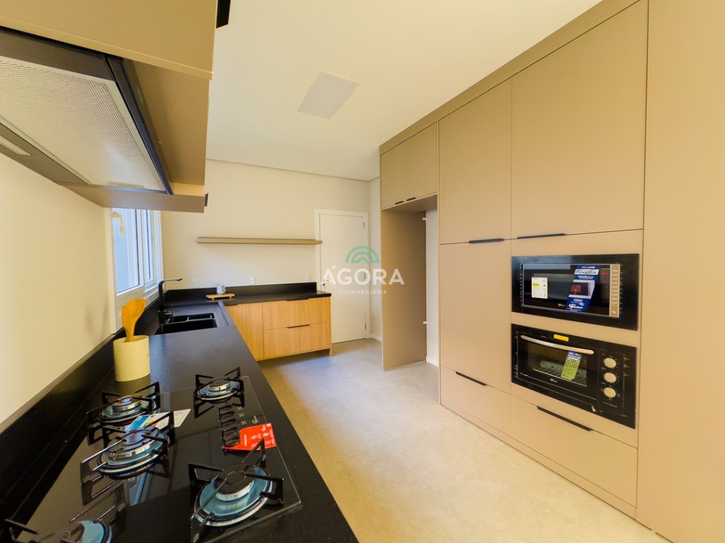 Ágora Cia Imobiliária vende: Sobrado com 3 (três) suítes, sendo a principal com banheira e sacada frontal. Este imóvel oferece conforto e privacidade para toda a família. Há ainda a opção de home office ou suíte estendida, adaptando-se facilmente ao seu estilo de vida. O térreo conta com sala de estar com lareira, cozinha e jantar integradas, proporcionando um ambiente acolhedor e fluido. Nos fundos, 1 (um) pequeno terraço integrado à sacada, churrasqueira e pátio privativo ideal para relaxar ou receber amigos. Possui lavanderia, depósito, 2 (duas) vagas de garagem cobertas e espera para carregador de carro elétrico. Acabamento impecável: Revestimento em porcelanato, esperas para split em todos os ambientes, água quente e infraestrutura para energia solar. Um sobrado que une sofisticação, eficiência e conforto em cada detalhe. Sobrado moderno arquiteto **André Pacheco** e construído por **Sérgio Fidelis**,