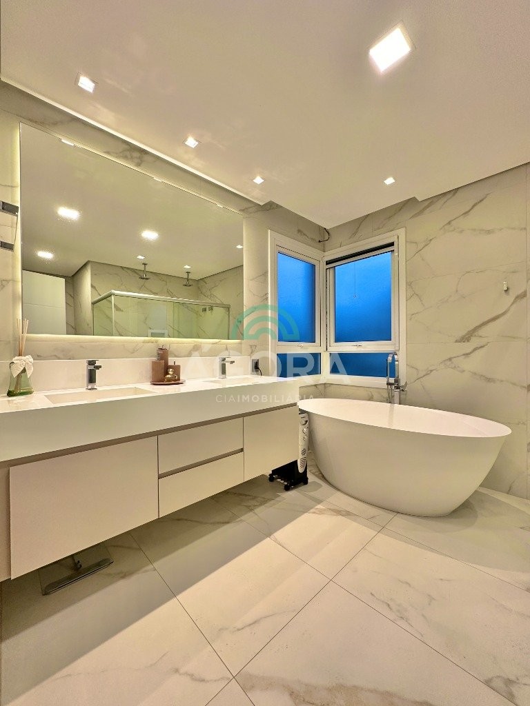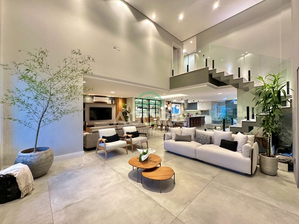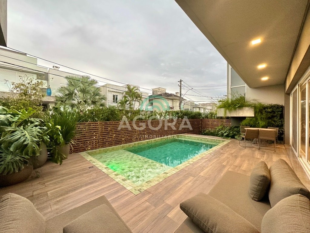 Ágora imobiliária vende: casa em condomínio fechado com 337m² em terreno de esquina. Dispõe de 4 (quatro) dormitórios, sendo 3 (três) suítes, sendo uma delas com banheira e chuveiro e cuba duplos. Living com 4 ambientes totalmente integrados, sendo cozinha com ilha. Imóvel com pé direito alto. Possui piscina com espera para aquecimento em integrada com living de convivência. O imóvel dispõe de vaga para 4 carros. Jardim com iluminação e irrigação totalmente automatizada. Excelente posição solar, sendo frente norte. Além disso, possui energia fotovoltáica e sistema de cisterna.