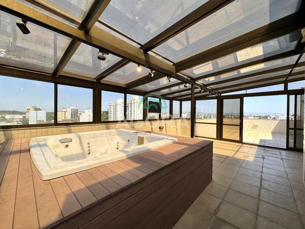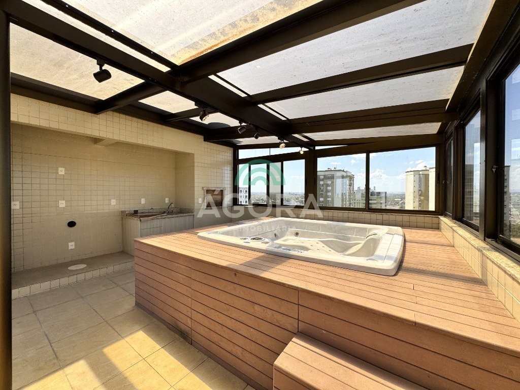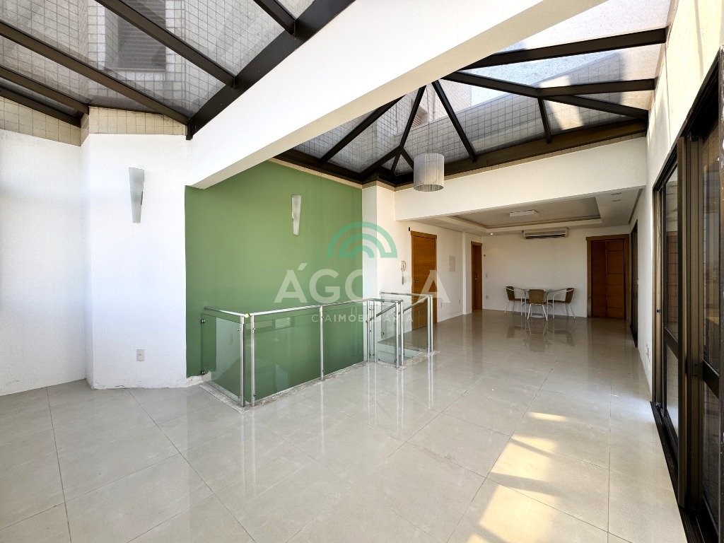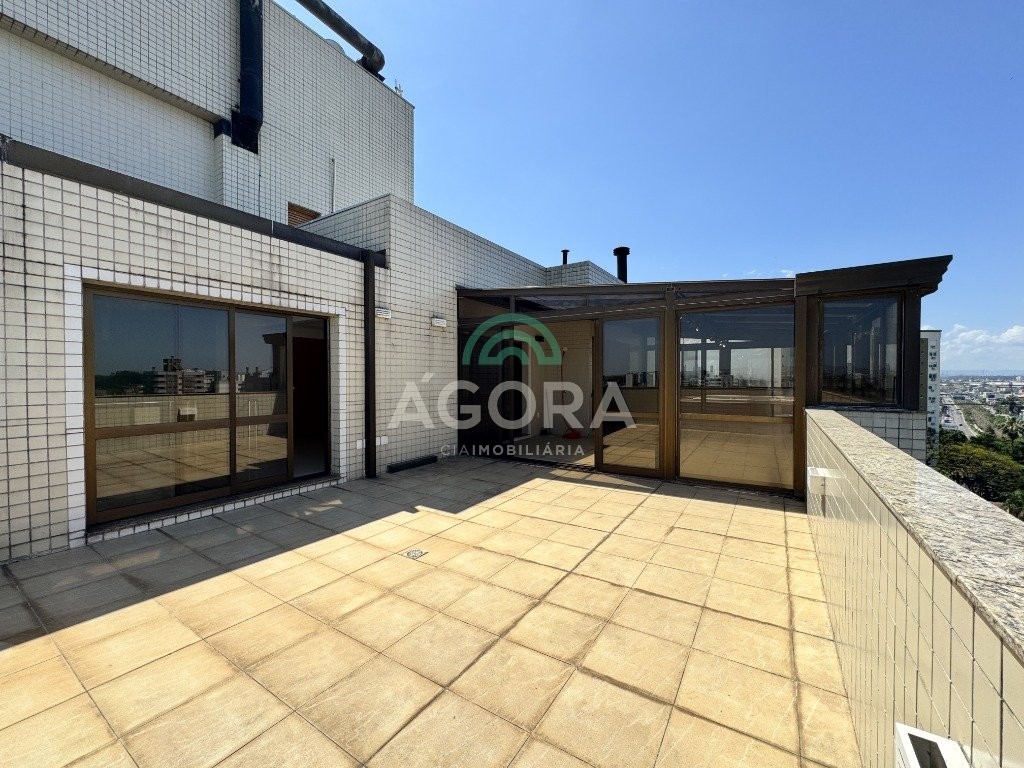 Cobertura duplex com 303m² privativos no centro. Imóvel dispõe de 4 (quatro) dormitórios, sendo duas amplas suítes e uma dela com banheira de hidromassagem. O primeiro andar possui 03 (três) dormitórios, sala de estar e jantar integradas, lavabo, lavanderia e cozinha com área para churrasco. Segundo andar dispõe de entrada independente. Possui uma suíte, lavabo, sala ampla, bem como área gourmet com churrasqueira e piscina, totalmente coberta, excelente área externa com vista da cidade e vaga de garagem para 03 (três) veículos. Condomínio com portaria virtual e espaço de convivência externo com pracinha. Agende sua visita!