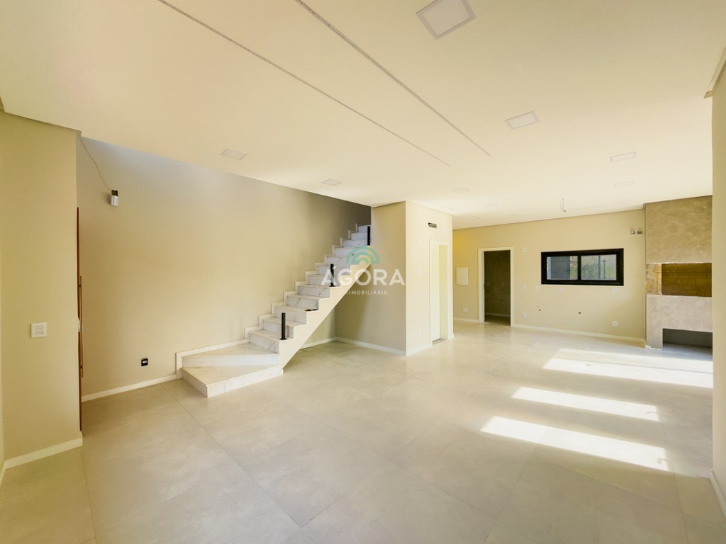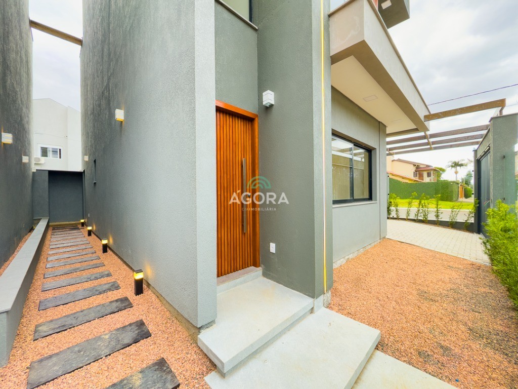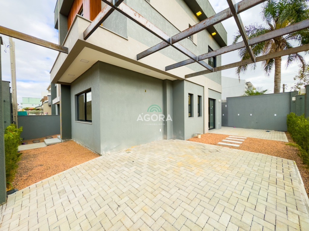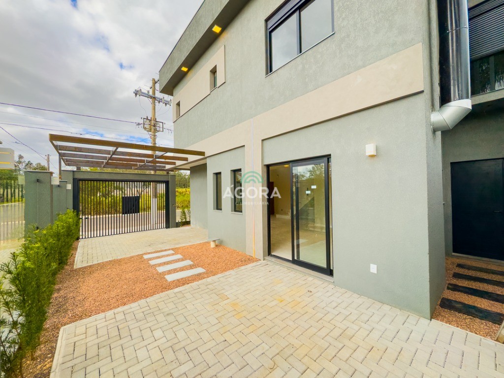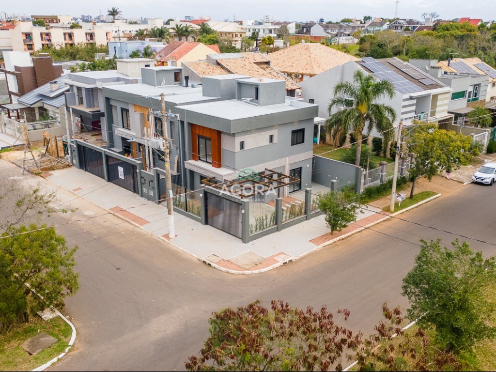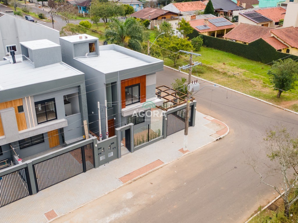 Sobrado de esquina com 138m² privativos, 3 (três) dormitórios com sacada, sendo 1 (uma) suíte, banheiro social, living integrado, cozinha com churrasqueira, área de serviço, lavabo, excelente iluminação natural no interior da casa, aberturas de pvc preto, vaga para 2 (dois) carros.