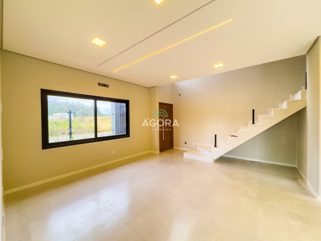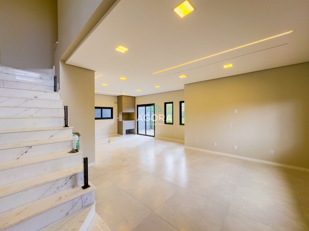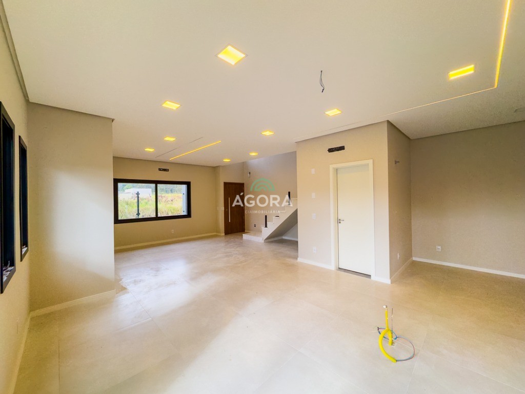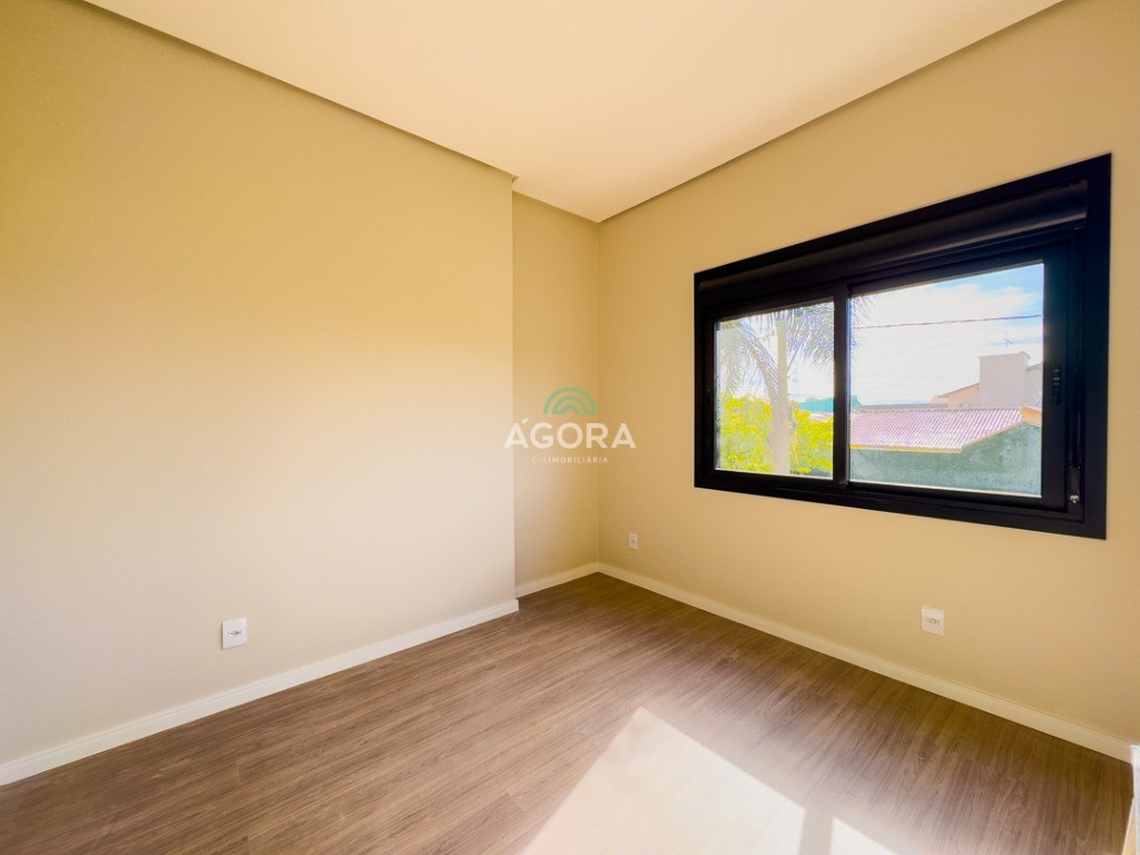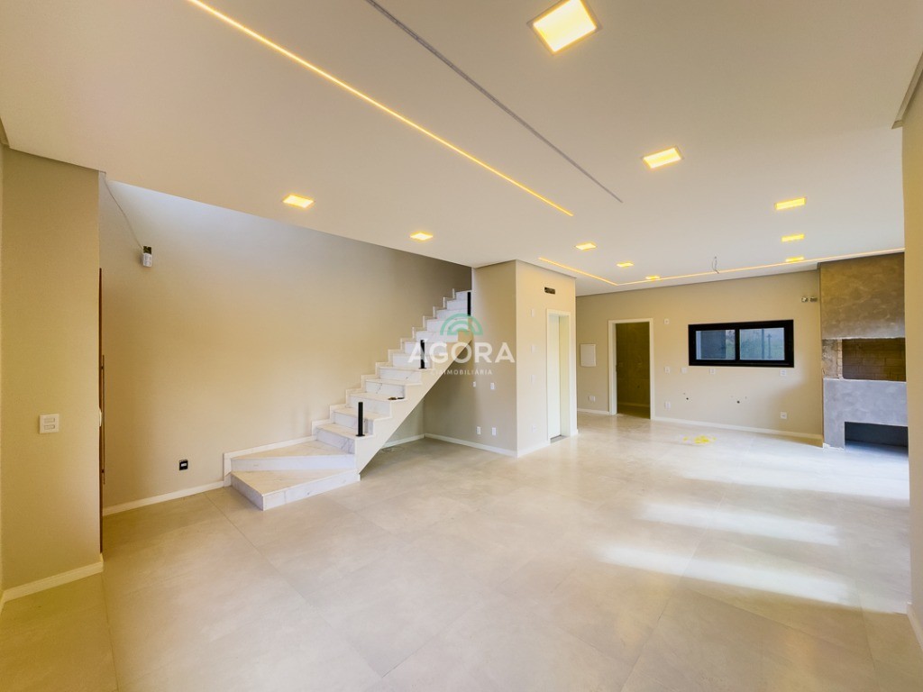 Sobrado de esquina com 138m² privativos, 3 (três) dormitórios com sacada, sendo 1 (uma) suíte, banheiro social, living integrado, cozinha com churrasqueira, área de serviço, lavabo, excelente iluminação natural no interior da casa, aberturas de pvc preto, vaga para 2 (dois) carros.