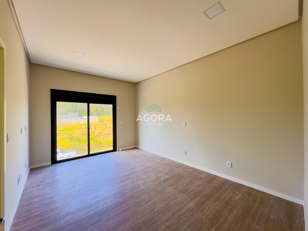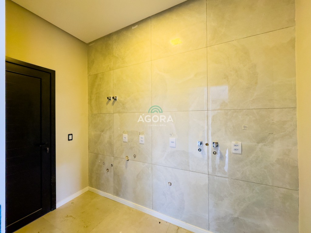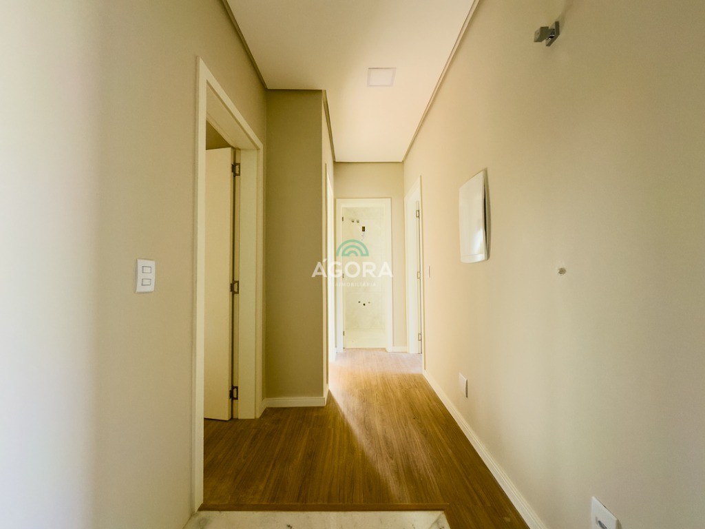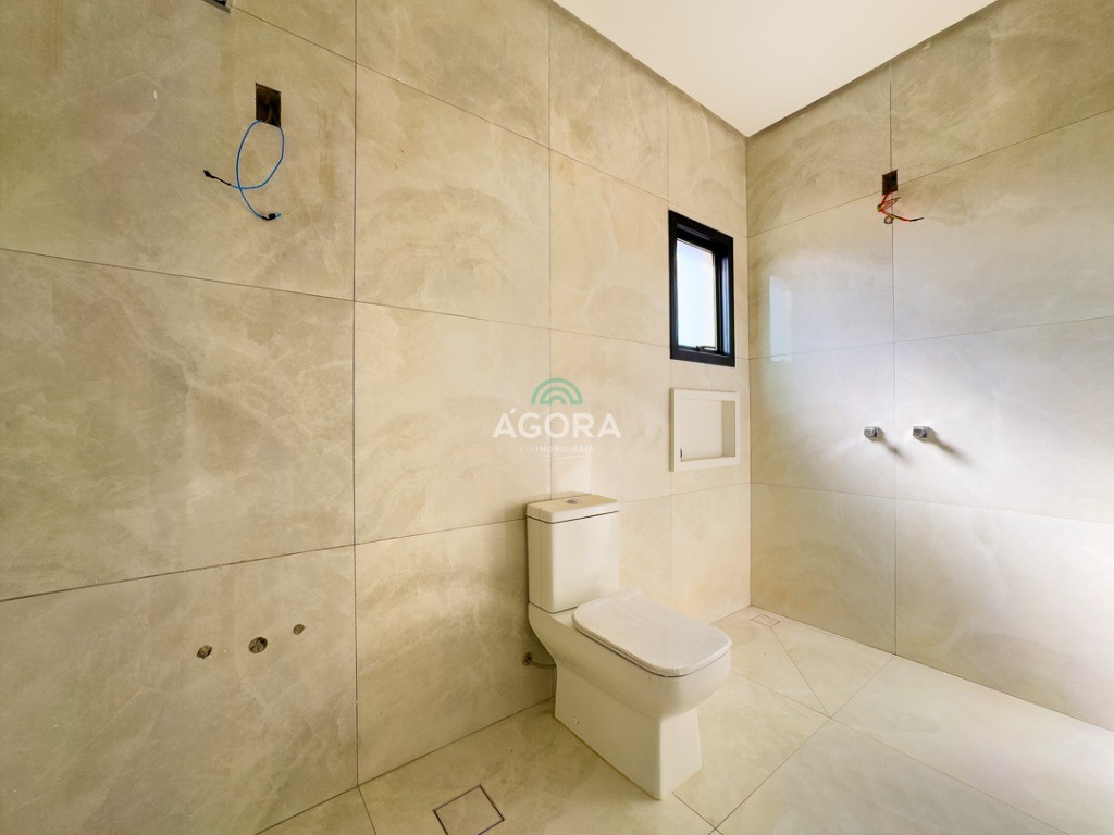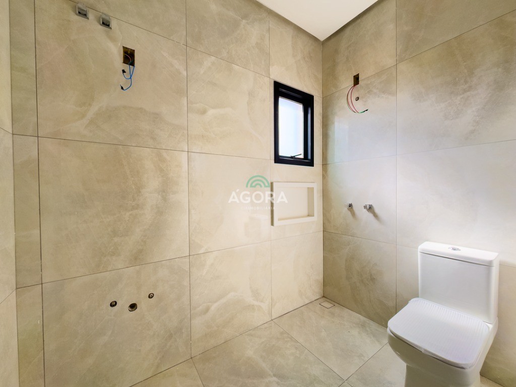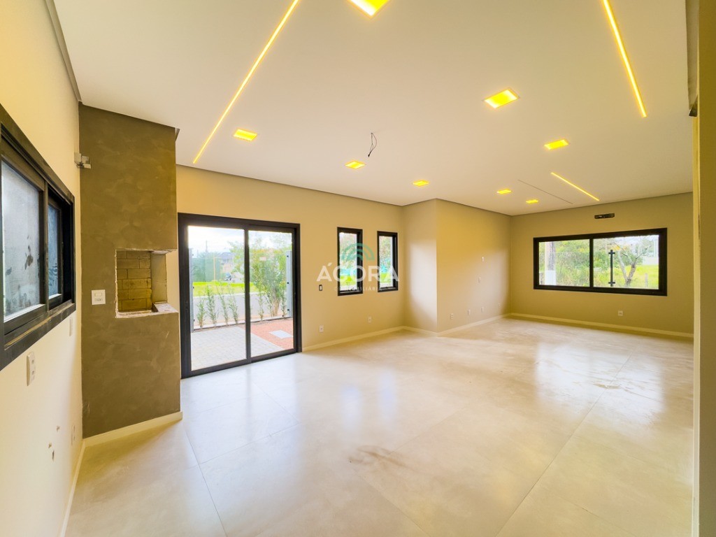 Sobrado de esquina com 138m² privativos, 3 (três) dormitórios com sacada, sendo 1 (uma) suíte, banheiro social, living integrado, cozinha com churrasqueira, área de serviço, lavabo, excelente iluminação natural no interior da casa, aberturas de pvc preto, vaga para 2 (dois) carros.
