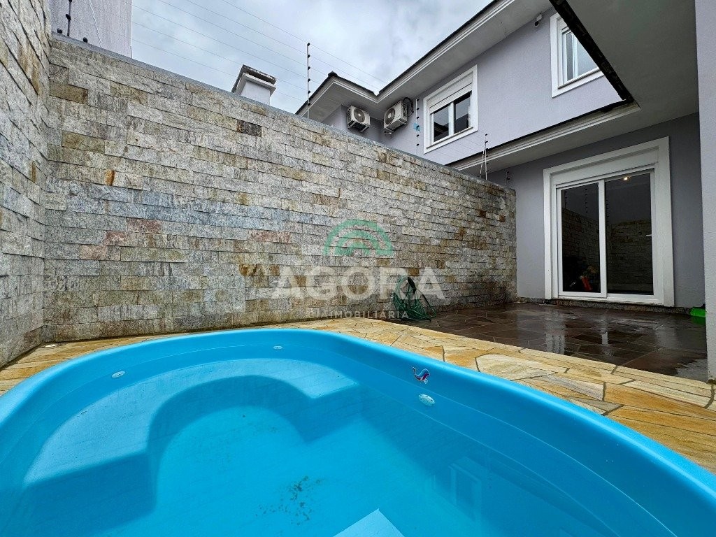 Lindo sobrado no bairro são josé em canoas, com 135,56 m² de área construída privativa, no andar superior possuí 2 (duas) suítes com sacada sendo 1 (uma) atualmente transformada em academia. No andar térreo: sala estar, lavabo (com espera para chuveiro), sala tv, 1 (um) dormitório, cozinha americana, sala de jantar, pátio nos fundos com espaço amplo e uma linda piscina. Na frente um lindo jardim e lugar para 2 (dois) carros sendo 1 (uma) vaga coberta.