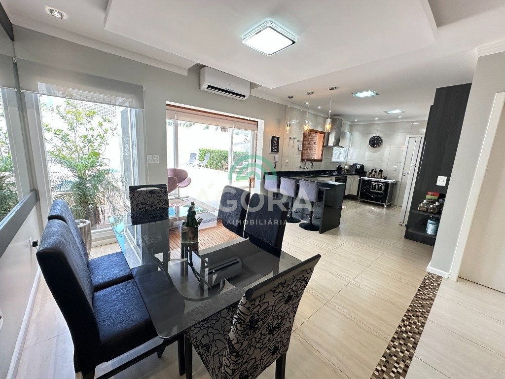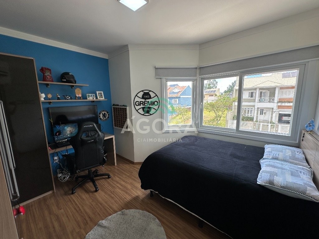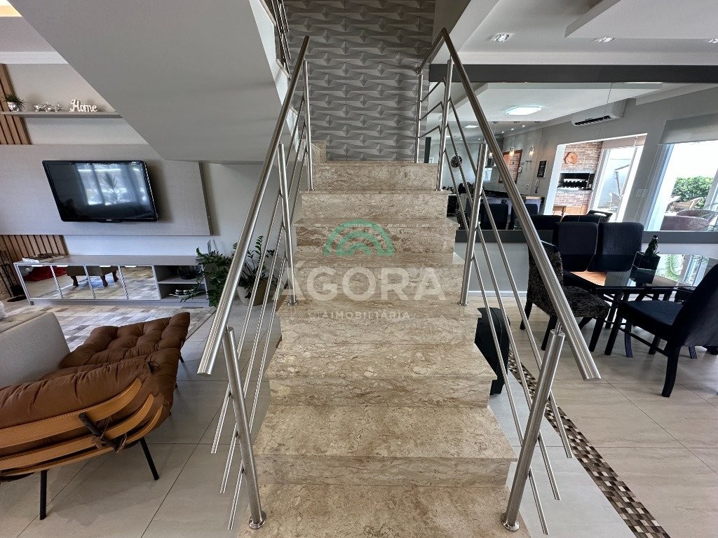 Sobrado de 220 m² privativos, com 4 (quatro) dormitórios, sendo 1 (uma) suíte ampla com closet e hidromassagem, banheiro social, amplo living para 2 (dois) ambientes com lareira, lavabo, cozinha mobiliada, lavanderia, sótão com lavabo, gabinete, aberturas em pvc, água quente, 2 (dois) aquecedores à gás sendo 1 (um) para a suíte, vagas para 4 (quatro) carros, laminado no piso superior e porcelanato no piso inferior. Ficarão todos os móveis planejados. Aquecimento solar localização privilegiada, próximo ao park canoas shopping, parque capão do corvo e comércios. Aceita dação e financiamento.