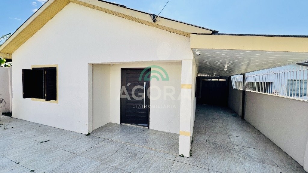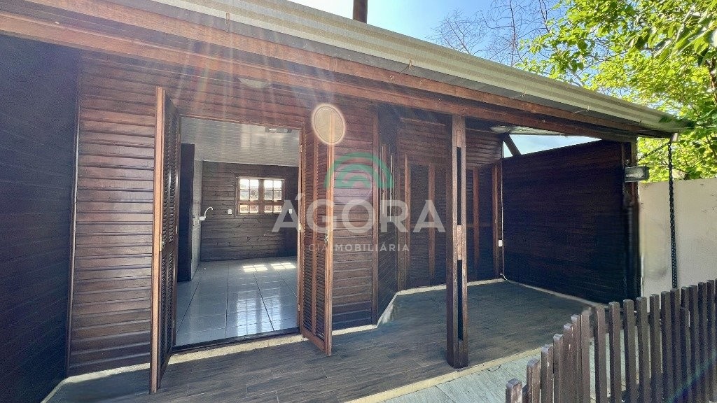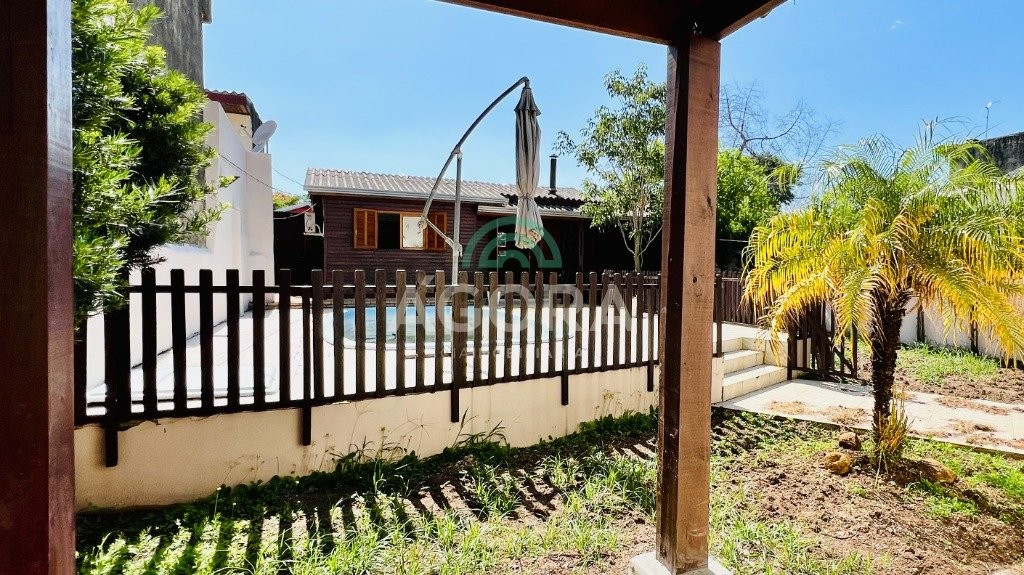 Em um terreno com 418m², possui 2 (duas) casas. A casa da frente, em alvenaria, com área privativa de 96m², é distribuída em 2 (dois) dormitórios, living com 2 (dois) ambientes, cozinha, banheiro social, área de serviço e uma ampla área gourmet com churrasqueira. A casa dos fundos, em madeira, possui aproximadamente 50 m² de área construída, distribuída em 2 (dois) dormitórios, sala, cozinha, banheiro social e uma área gourmet com churrasqueira integrada. Ambas as casas se destacam por possuírem seus ambientes equipados com ar-condicionado. O imóvel ainda conta com vaga coberta para até 3 (três) carros, piscina, jardim e pátio todo murado, com grade na frente. Localizado no bairro harmonia, a região oferece vantagens como escolas, mercados, lojas de varejo e paradas de ônibus.
