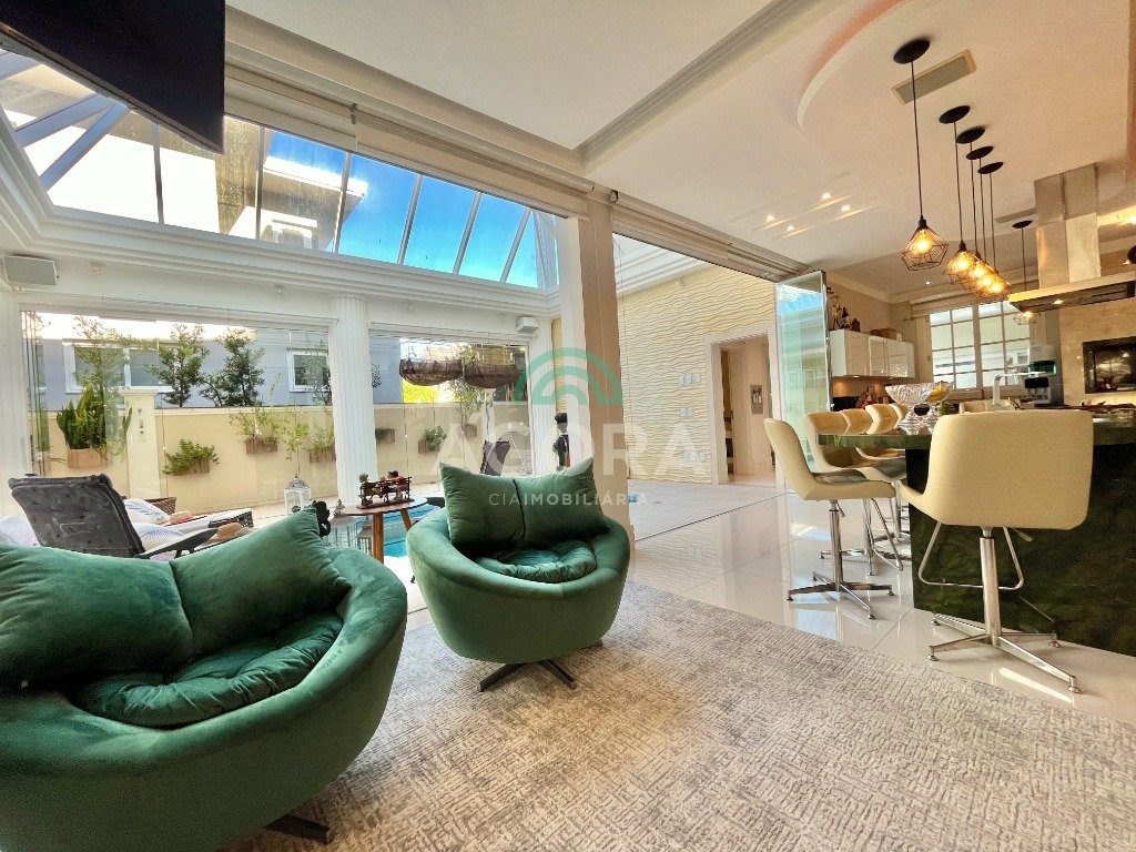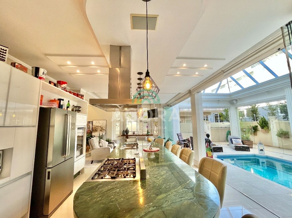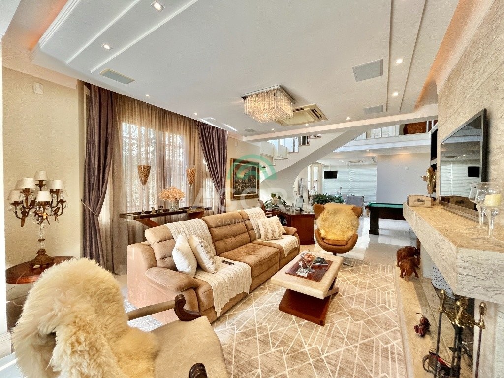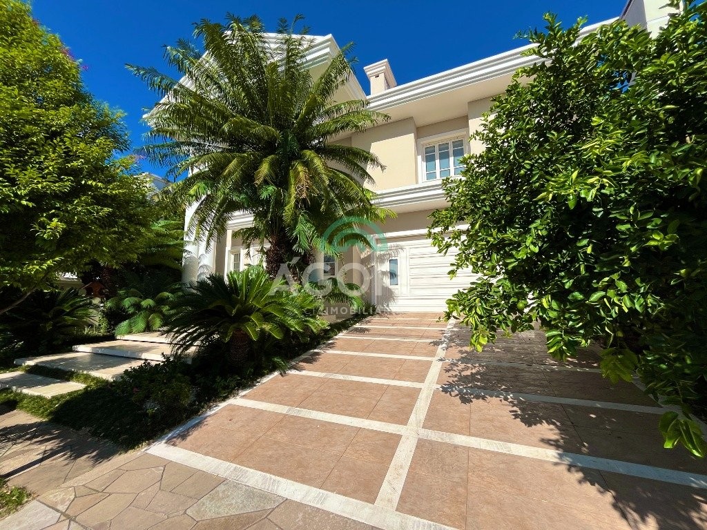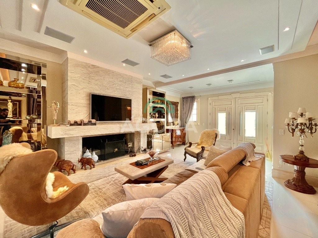 Sobrado estilo neoclássico, totalmente mobiliado e equipado, com móveis de gramado, de 586m² privativos, 3 (três) suítes, sendo 1 (uma) máster com banheira de hidromassagem e closet, sala de estar e jantar integradas com lareira, cozinha com ilha e churrasqueira gourmet, todos os ambientes com piso aquecido, área de lazer com piscina aquecida, sistema de ar central e vaga de garagem coberta para 4? (quatro) veículos, sendo 2 (dois) cobertos.