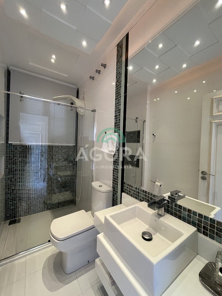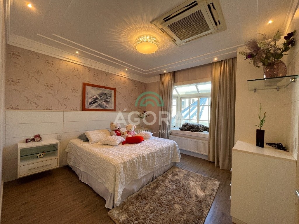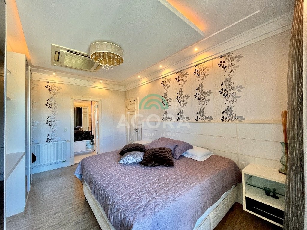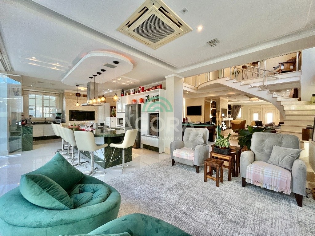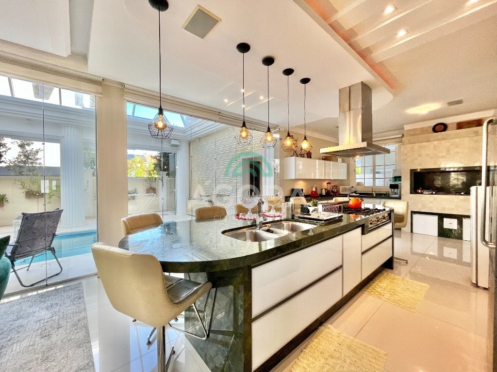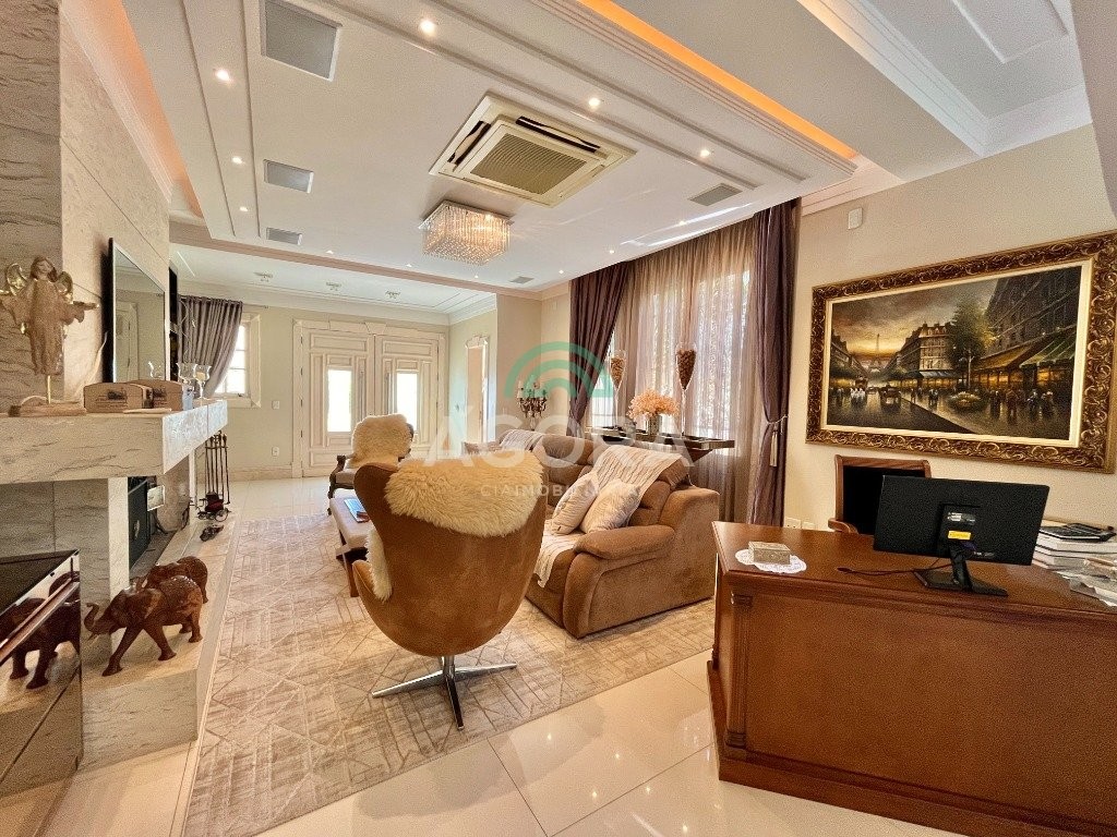 Sobrado estilo neoclássico, totalmente mobiliado e equipado, com móveis de gramado, de 586m² privativos, 3 (três) suítes, sendo 1 (uma) máster com banheira de hidromassagem e closet, sala de estar e jantar integradas com lareira, cozinha com ilha e churrasqueira gourmet, todos os ambientes com piso aquecido, área de lazer com piscina aquecida, sistema de ar central e vaga de garagem coberta para 4? (quatro) veículos, sendo 2 (dois) cobertos.