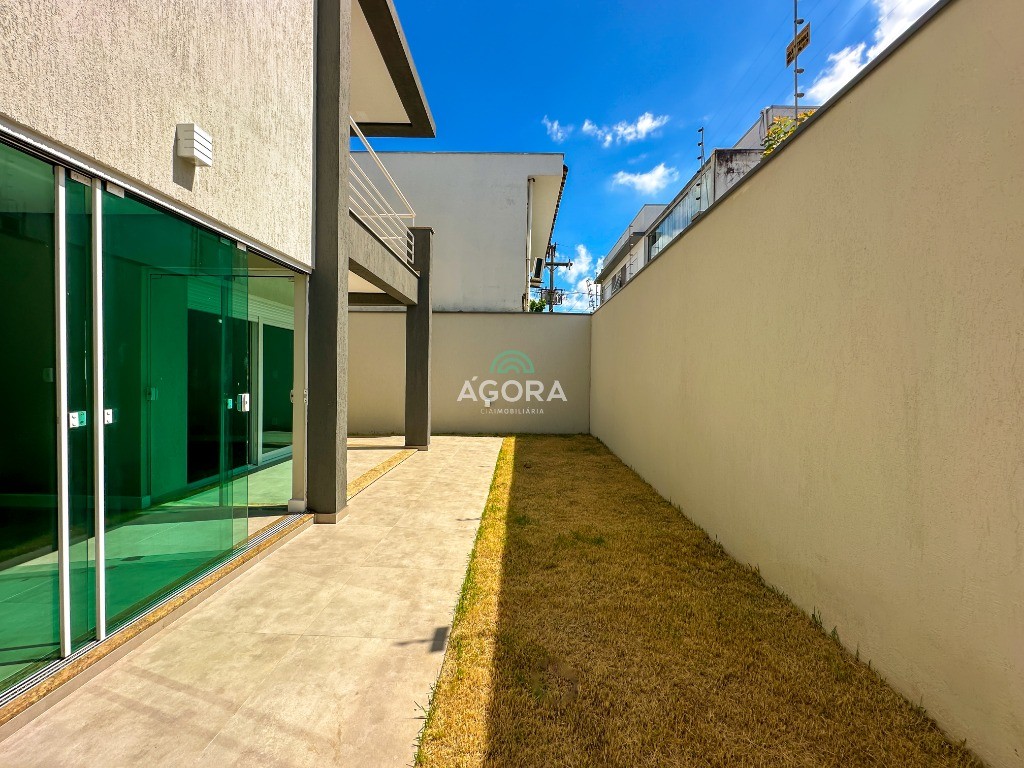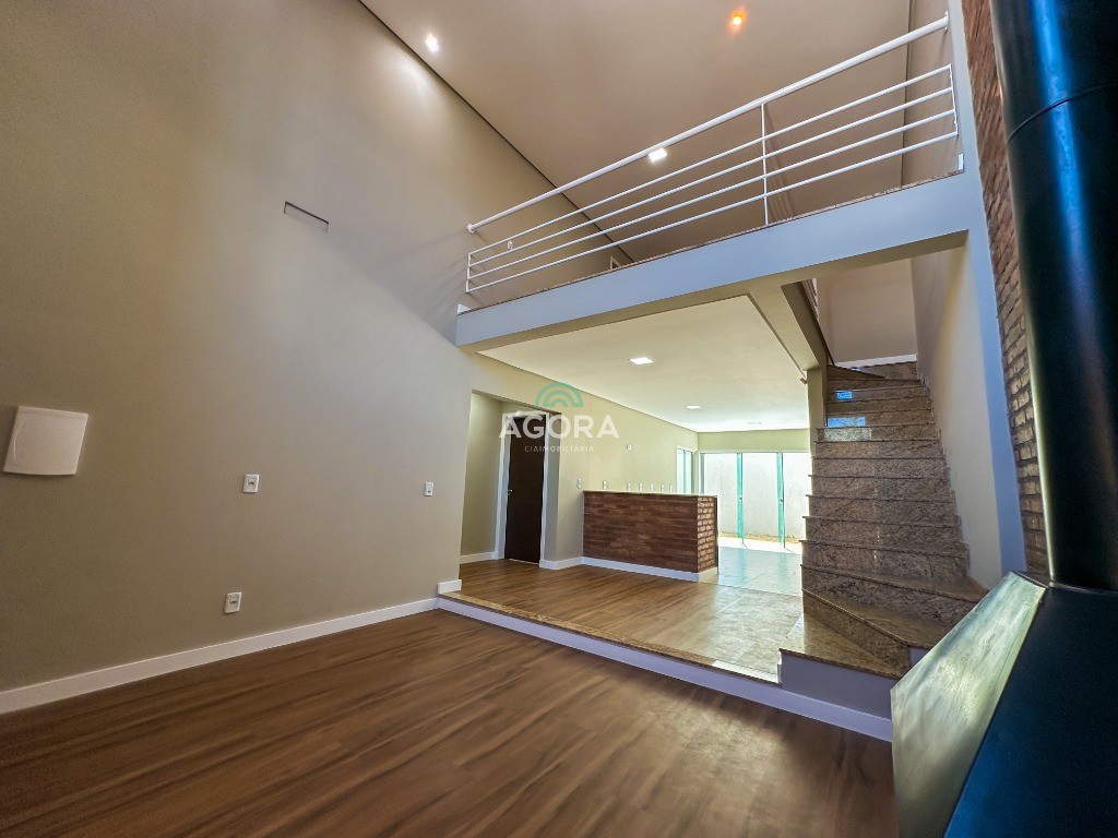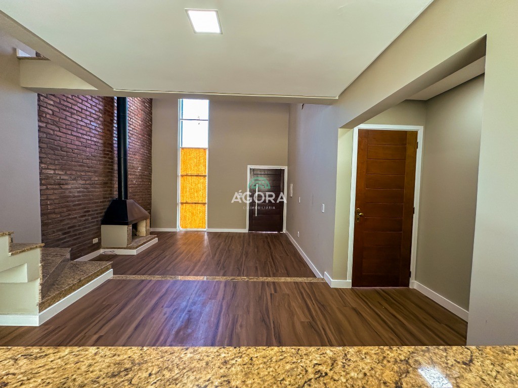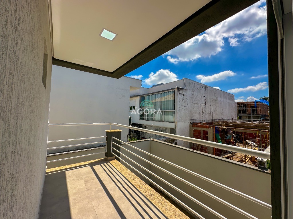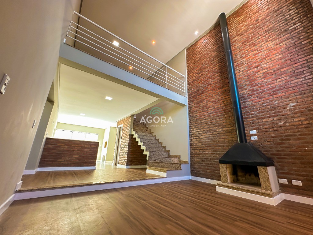 Ágora Cia Imobiliária vende: Sobrado com 3 (três) suítes, sendo a principal com banheira e sacada frontal. Este imóvel oferece conforto e privacidade para toda a família. Há ainda a opção de home office ou suíte estendida, adaptando-se facilmente ao seu estilo de vida. O térreo conta com sala de estar com lareira, cozinha e jantar integradas, proporcionando um ambiente acolhedor e fluido. Nos fundos, 1 (um) pequeno terraço integrado à sacada, churrasqueira e pátio privativo ideal para relaxar ou receber amigos. Possui lavanderia, depósito, 2 (duas) vagas de garagem cobertas e espera para carregador de carro elétrico. Acabamento impecável: Revestimento em porcelanato, esperas para split em todos os ambientes, água quente e infraestrutura para energia solar. Um sobrado que une sofisticação, eficiência e conforto em cada detalhe. Sobrado moderno arquiteto **André Pacheco** e construído por **Sérgio Fidelis**,