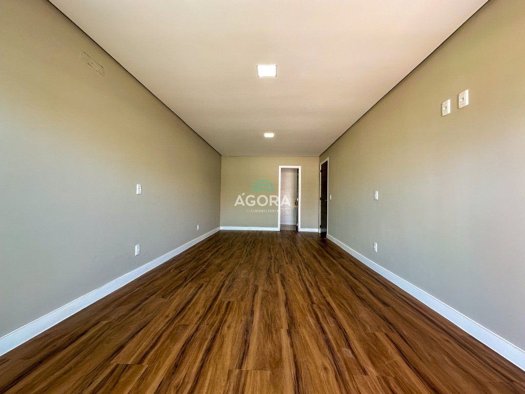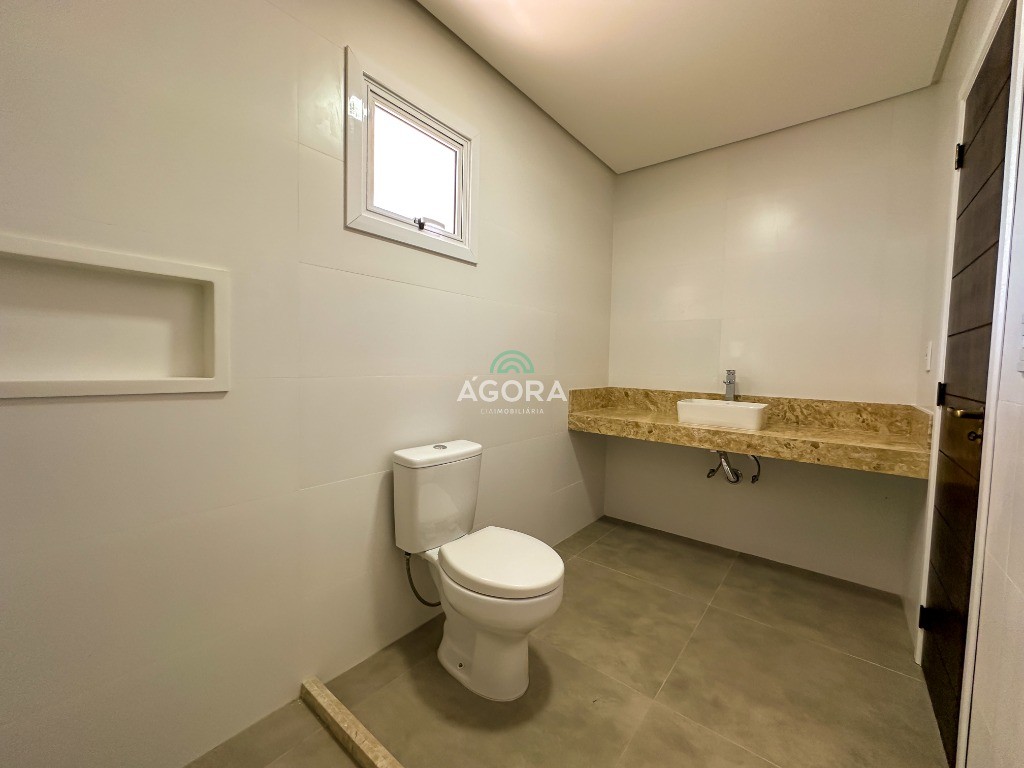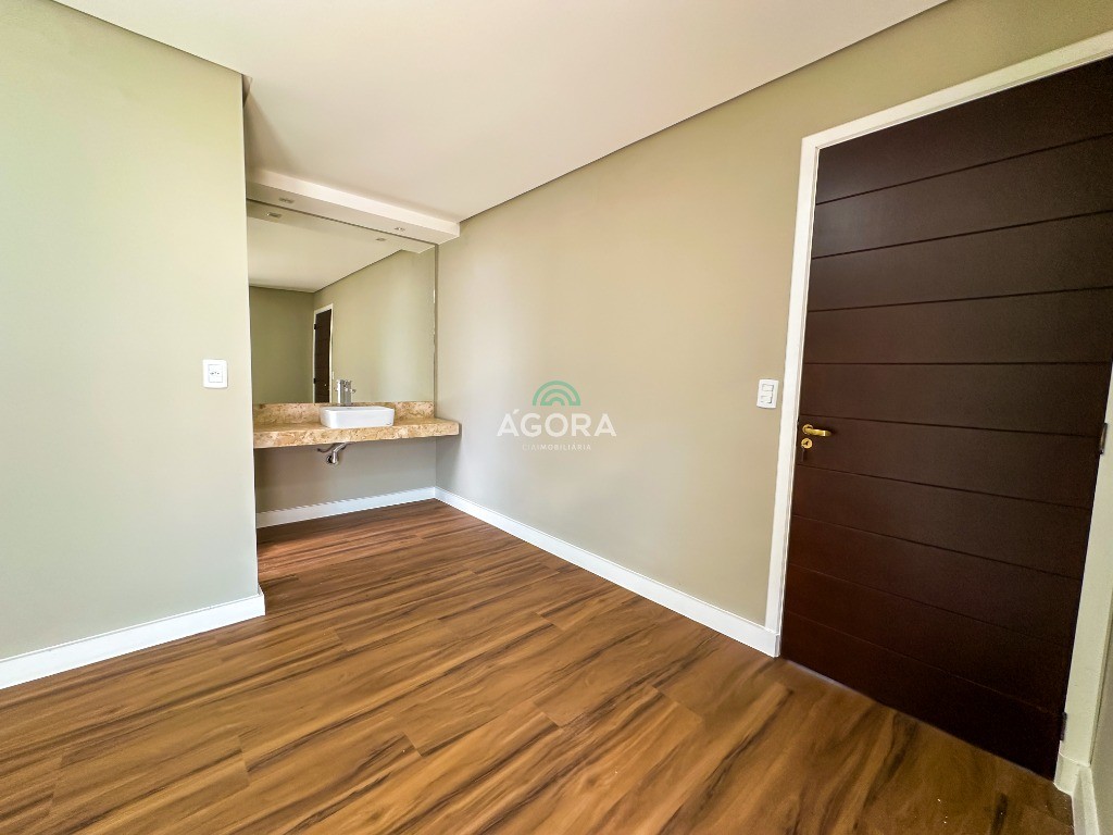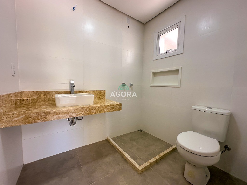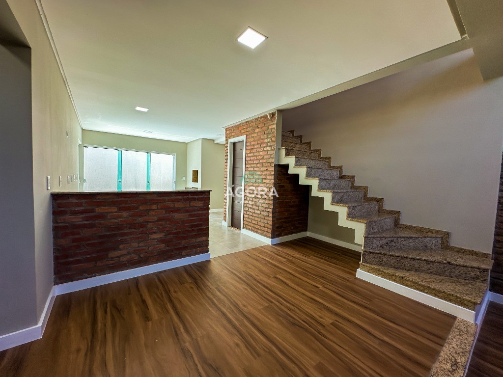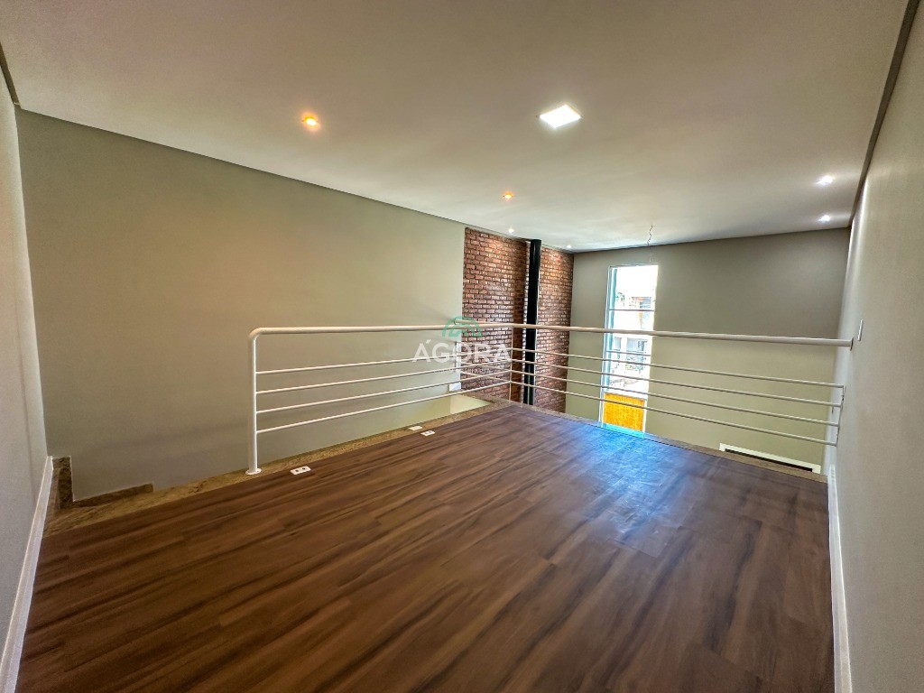 Ágora Cia Imobiliária vende: Sobrado com 3 (três) suítes, sendo a principal com banheira e sacada frontal. Este imóvel oferece conforto e privacidade para toda a família. Há ainda a opção de home office ou suíte estendida, adaptando-se facilmente ao seu estilo de vida. O térreo conta com sala de estar com lareira, cozinha e jantar integradas, proporcionando um ambiente acolhedor e fluido. Nos fundos, 1 (um) pequeno terraço integrado à sacada, churrasqueira e pátio privativo ideal para relaxar ou receber amigos. Possui lavanderia, depósito, 2 (duas) vagas de garagem cobertas e espera para carregador de carro elétrico. Acabamento impecável: Revestimento em porcelanato, esperas para split em todos os ambientes, água quente e infraestrutura para energia solar. Um sobrado que une sofisticação, eficiência e conforto em cada detalhe. Sobrado moderno arquiteto **André Pacheco** e construído por **Sérgio Fidelis**,