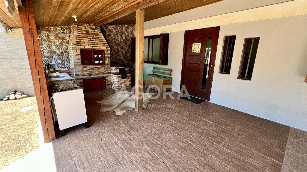 Casa térrea de 126m² privativos, sala de estar, jantar, cozinha planejada. Possuindo 3 (três) dormitórios, sendo 1 (uma) suíte, garagem para 3 (três) carros com 1 (uma) sendo coberta. Imóvel totalmente reformado e com placas fotovoltaicas para maior economia de energia. Na frente possui pátio com jardim e Área gourmet. Próximo a comércios, praças, paradas de ônibus, fácil acesso para porto alegre pela 448.