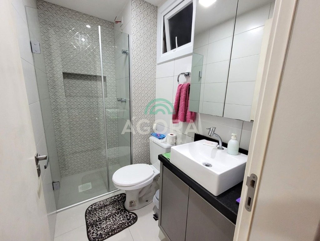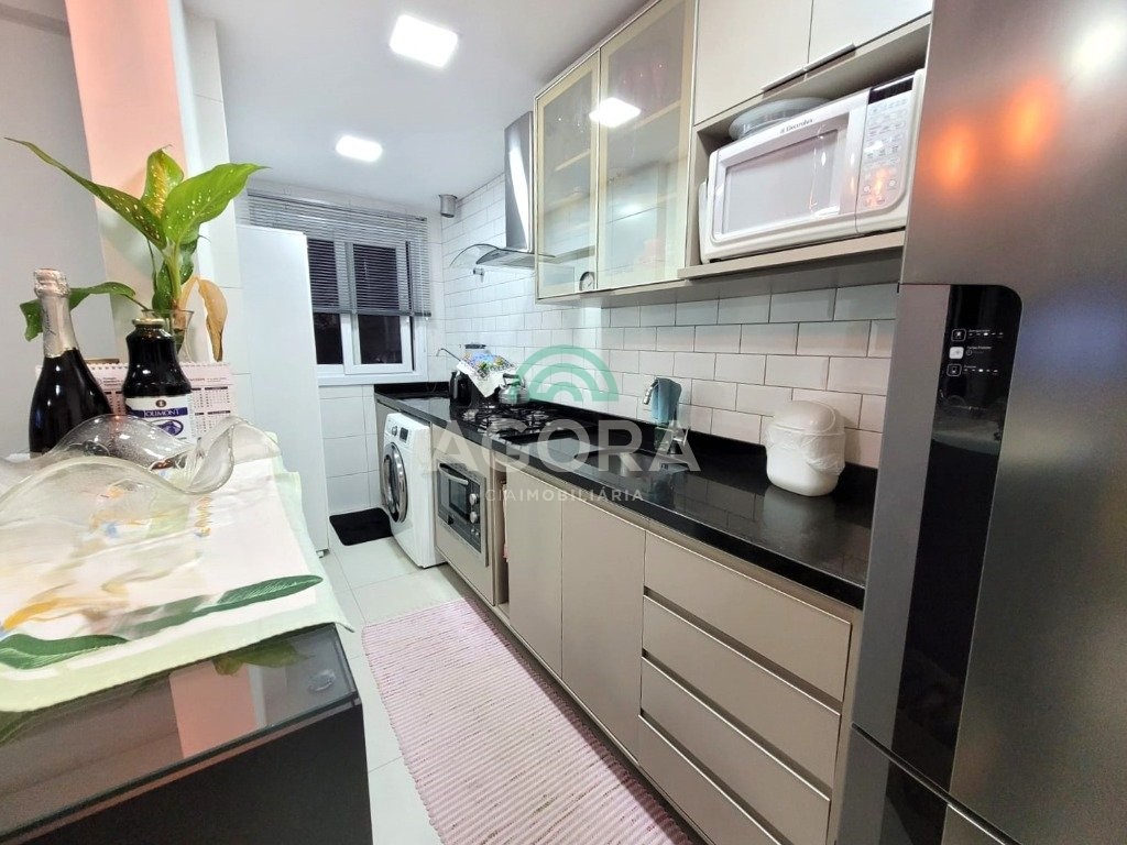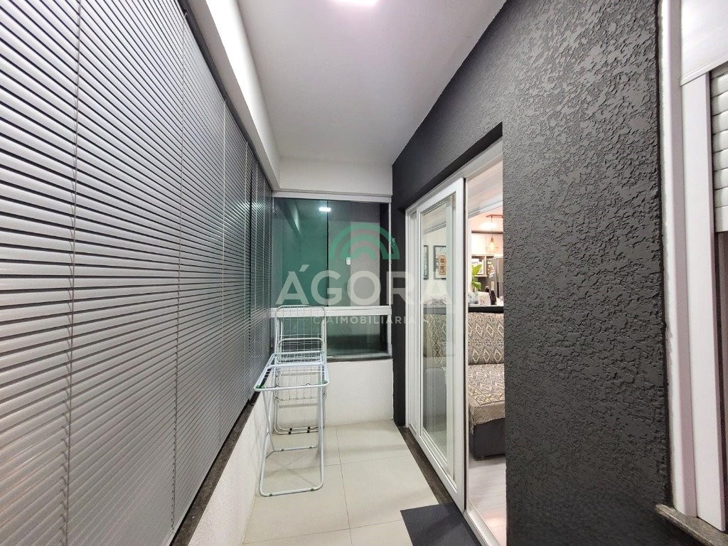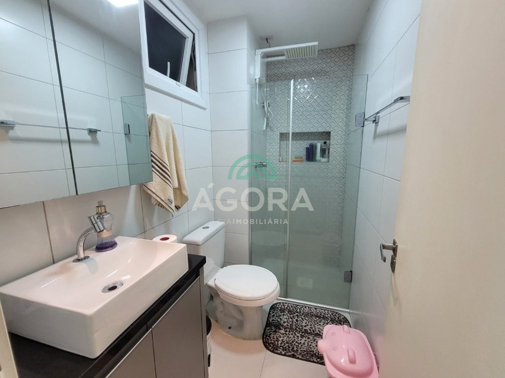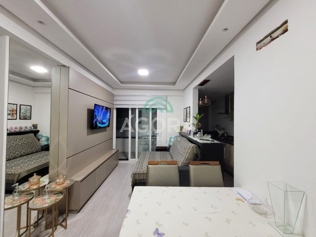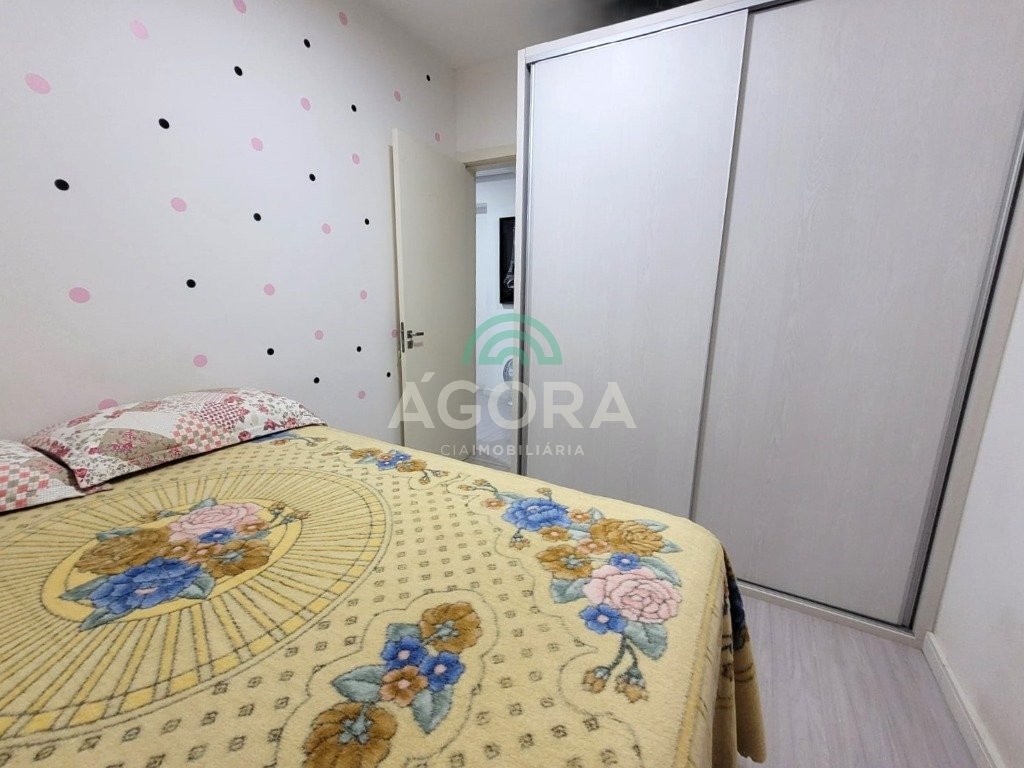 Lindo apartamento de 52,91m² privativos, com 2 (dois) dormitórios, sendo 1(uma) suíte, sacada grande e fechada com churrasqueira, 2 (dois) banheiros e vaga para carro semi-coberta. Ficam no imóvel moveis planejados, 1 (um) split, cooktop e coifa forno. Condomínio com elevador, salão de festas, zelador e ótima localização no bairro próximo a comércios, faculdade, posto de saúde e transporte.