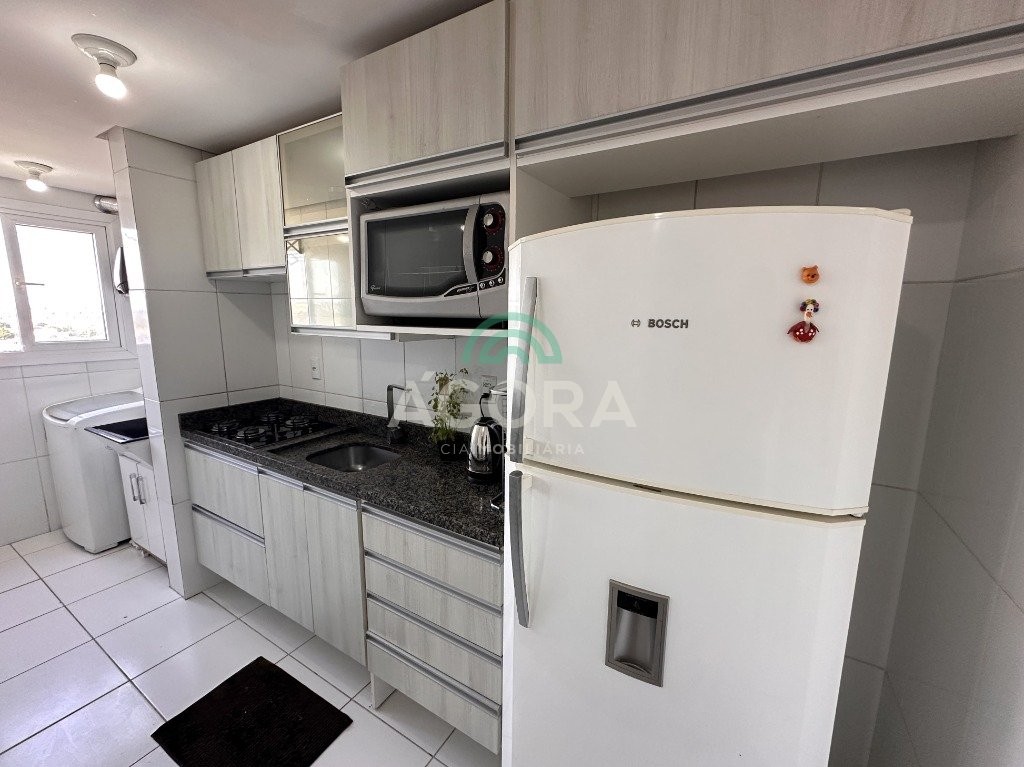 Apartamento de 54m² privativos, com 2 (dois) dormitórios, sacada com churrasqueira, sala de estar e jantar integradas, cozinha estilo americana, banheiro social, espaço de serviço, água quente e 1 (uma) vaga de garagem coberta. Condomínio com portaria eletrônica, piscina, playground, quadra de esportes, salão de festas e mini mercado. Região em ampla expansão e valorização.