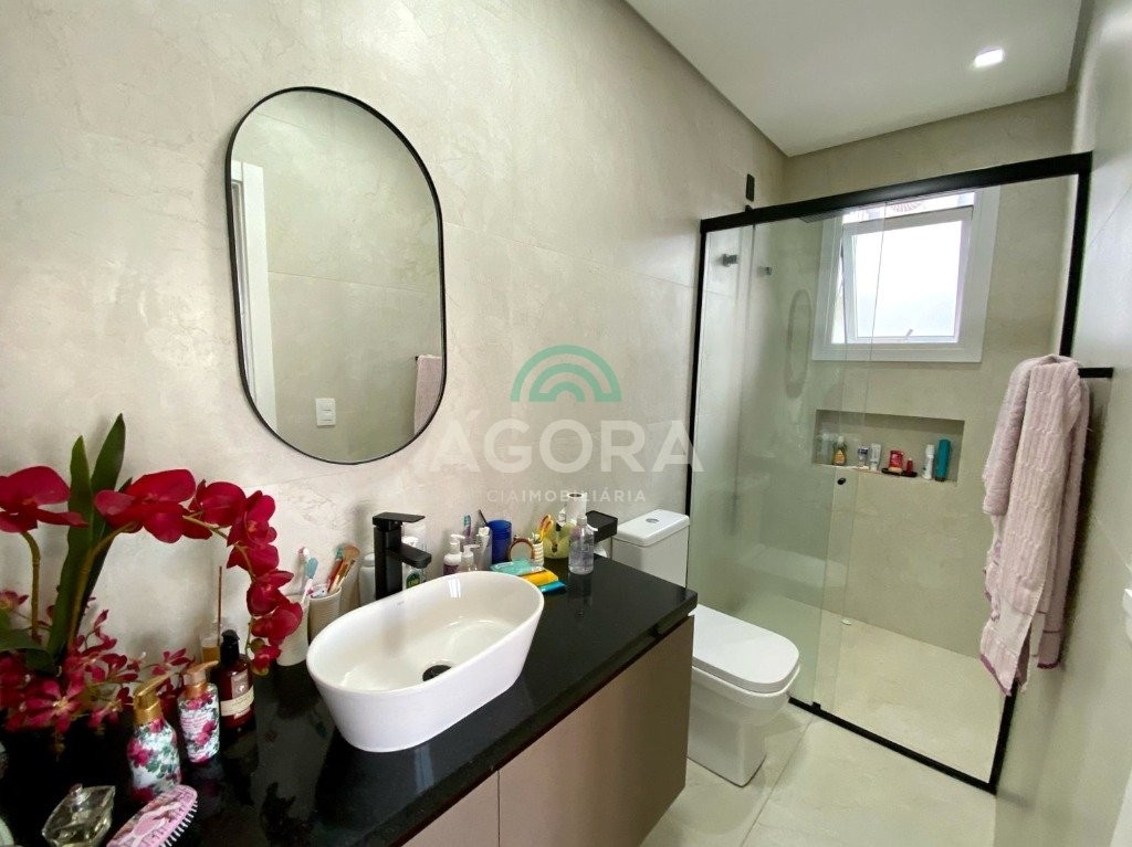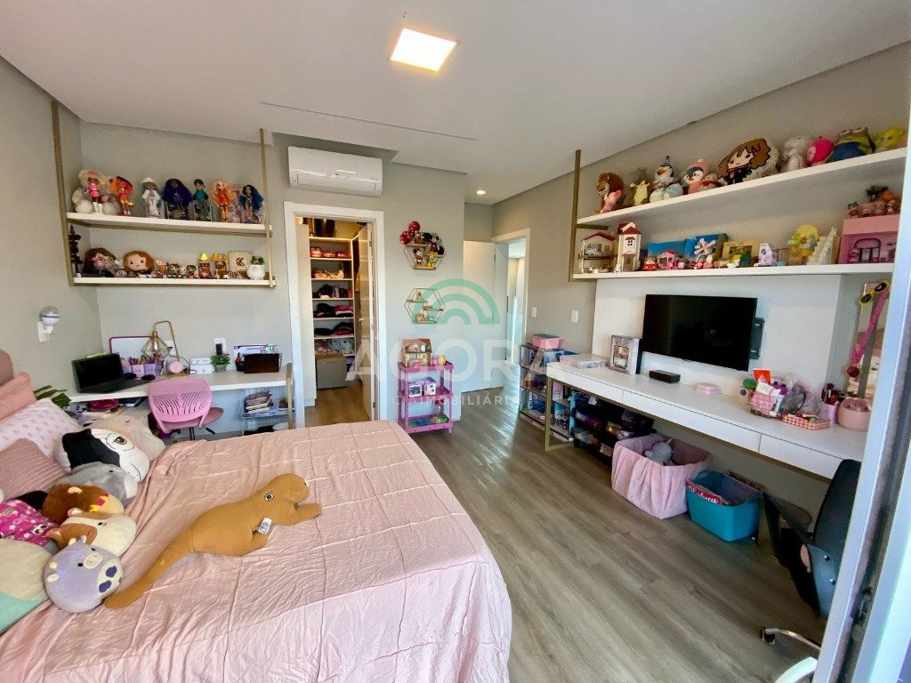 Sobrado mobiliado em condomínio de alto padrão de 296m², com 3 (três) dormitórios, sendo 2 (duas) suítes com closet, 1 (um) escritório, 2 (dois) depósitos, pé direito duplo, rebaixo em gesso, área gourmet, churrasqueira com parrilha, aberturas em pvc, persianas automatizadas, piscina aquecida e 4 (quatro) vagas. ótima localização.
