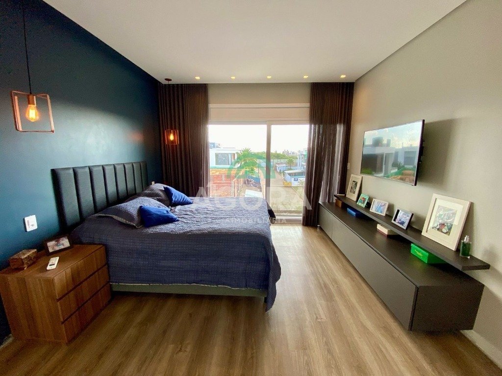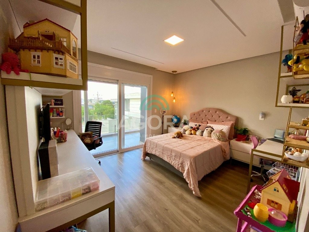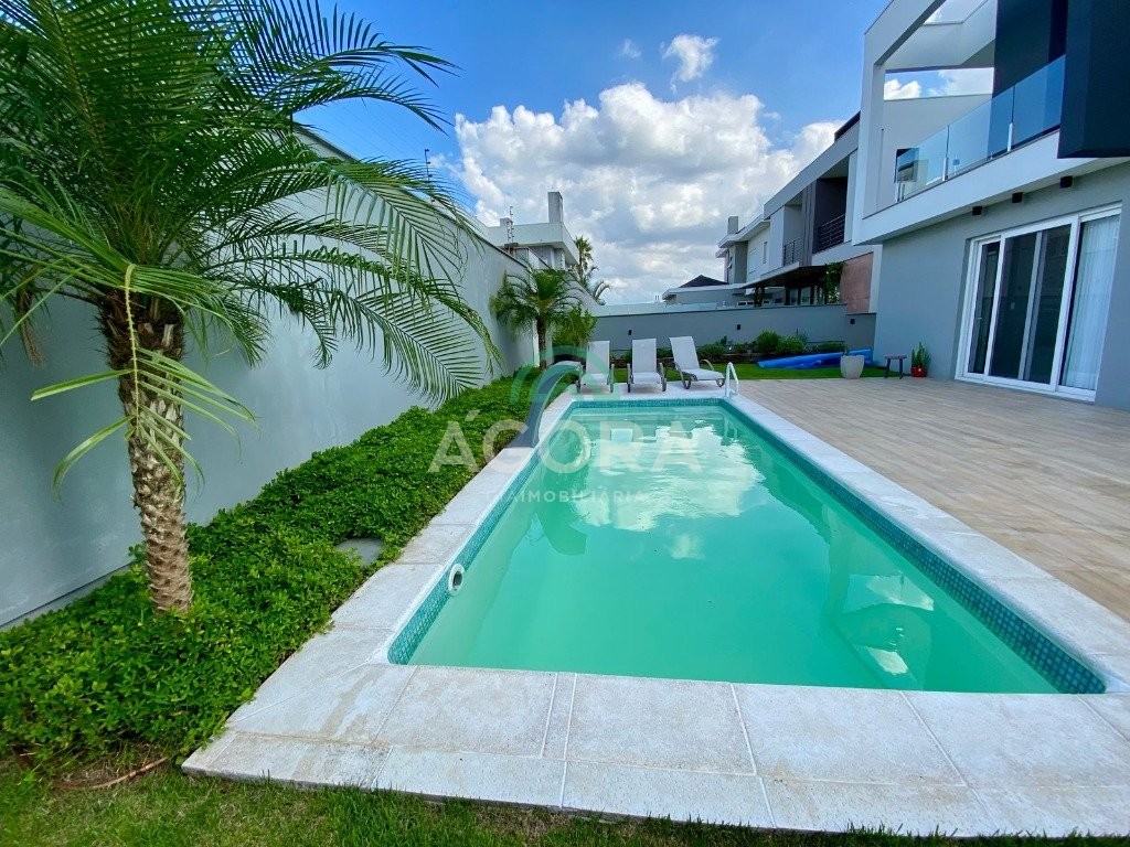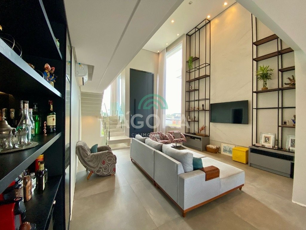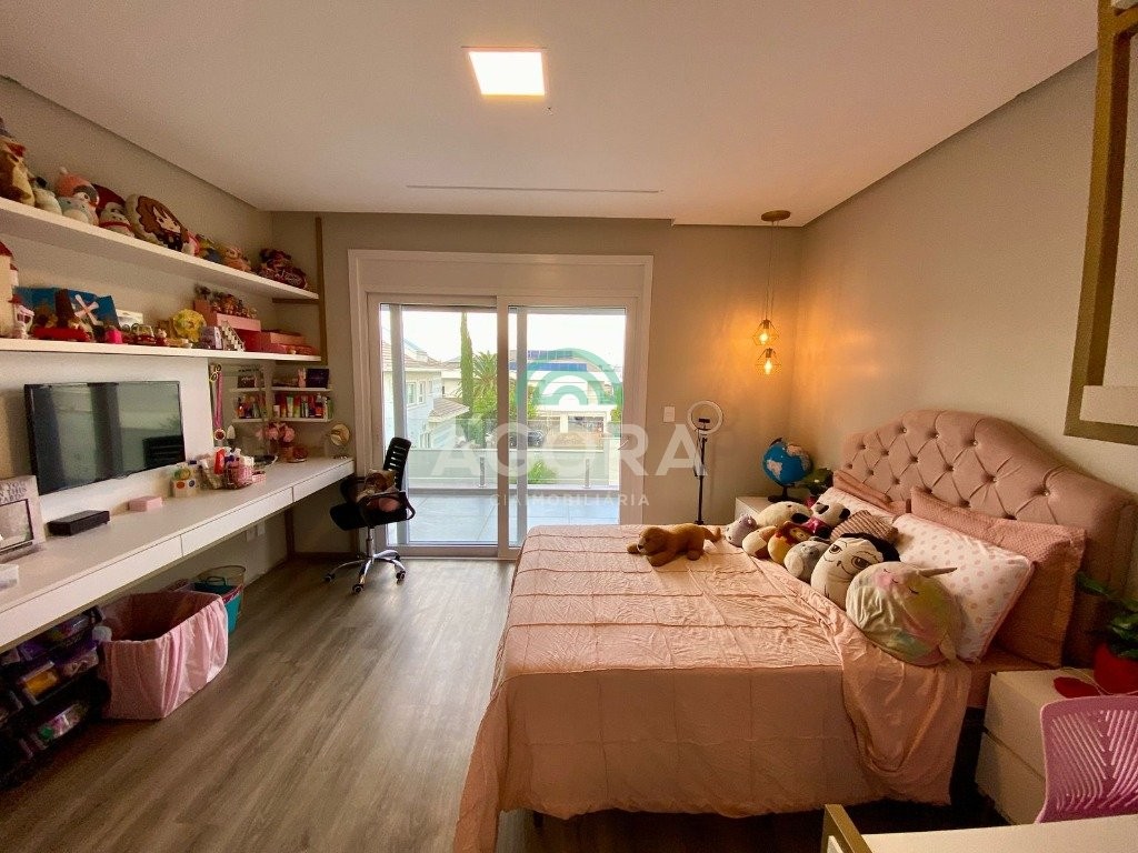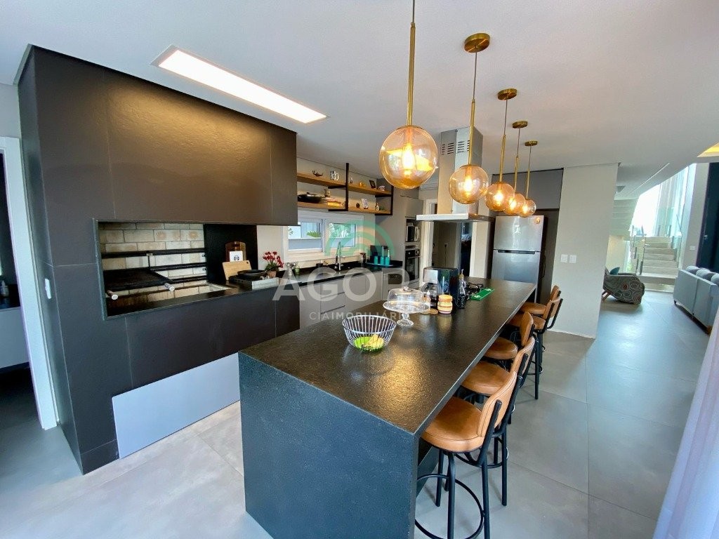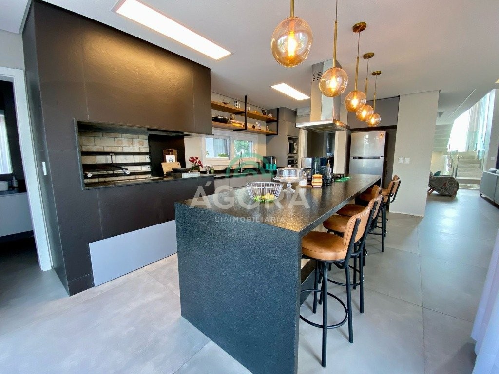 Ágora Cia Imobiliária vende: Sobrado mobiliado de alto padrão em condomínio fechado com 329m² privativos, construídos em um terreno único com 17m de frente, Com 4 (quatro) dormitórios, sendo 1 (uma) suíte master com e 2 (duas) suítes tradicionais e 1 (uma) dormitório no térreo. Living integrado entre sala de estar com lareira, sala e jantar e cozinha, com pé direito duplo e acabamentos em alta qualidade. Pátio privativos aos fundos coberto com teto retrátil e piscina aquecida. Garagem para 4 (quatro) veículos, sendo 2 (duas) vagas cobertas. O imóvel permanece mobiliado, com 4 aparelhos de splits e Juncker. Condomínio com infraestrutura completa. Ambiente seleto e tranquilo, com segurança 24h. Fácil acesso e próximo a todo o comércio local.