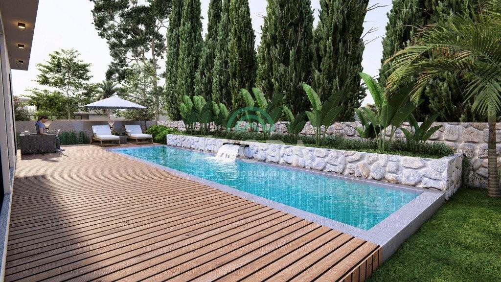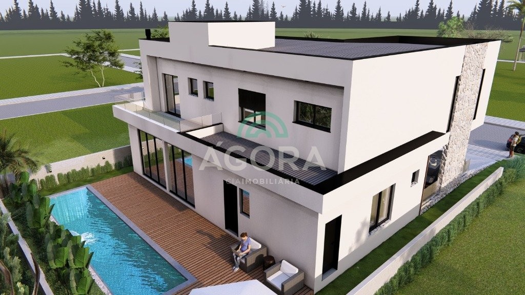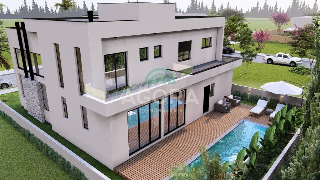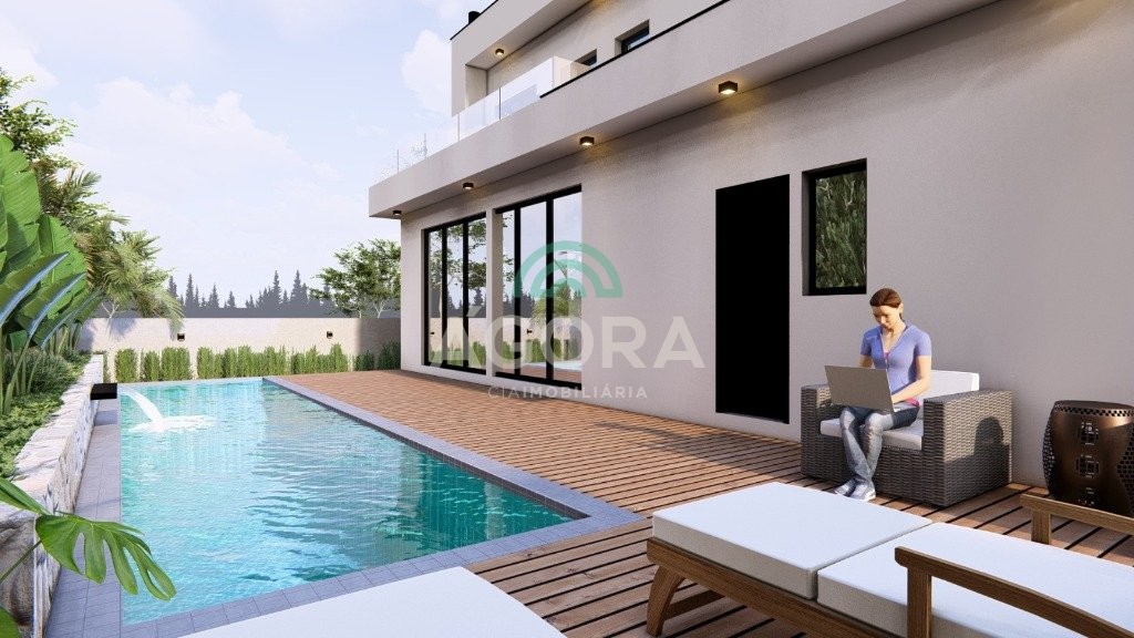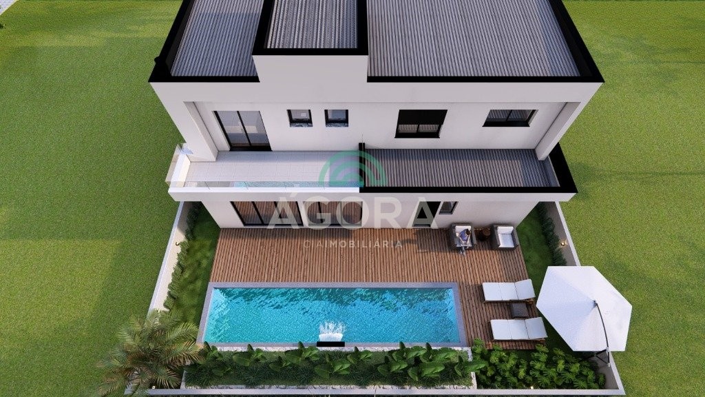 Sobrado de alto padrão mobiliado e equipado com piscina e 4 suítes.