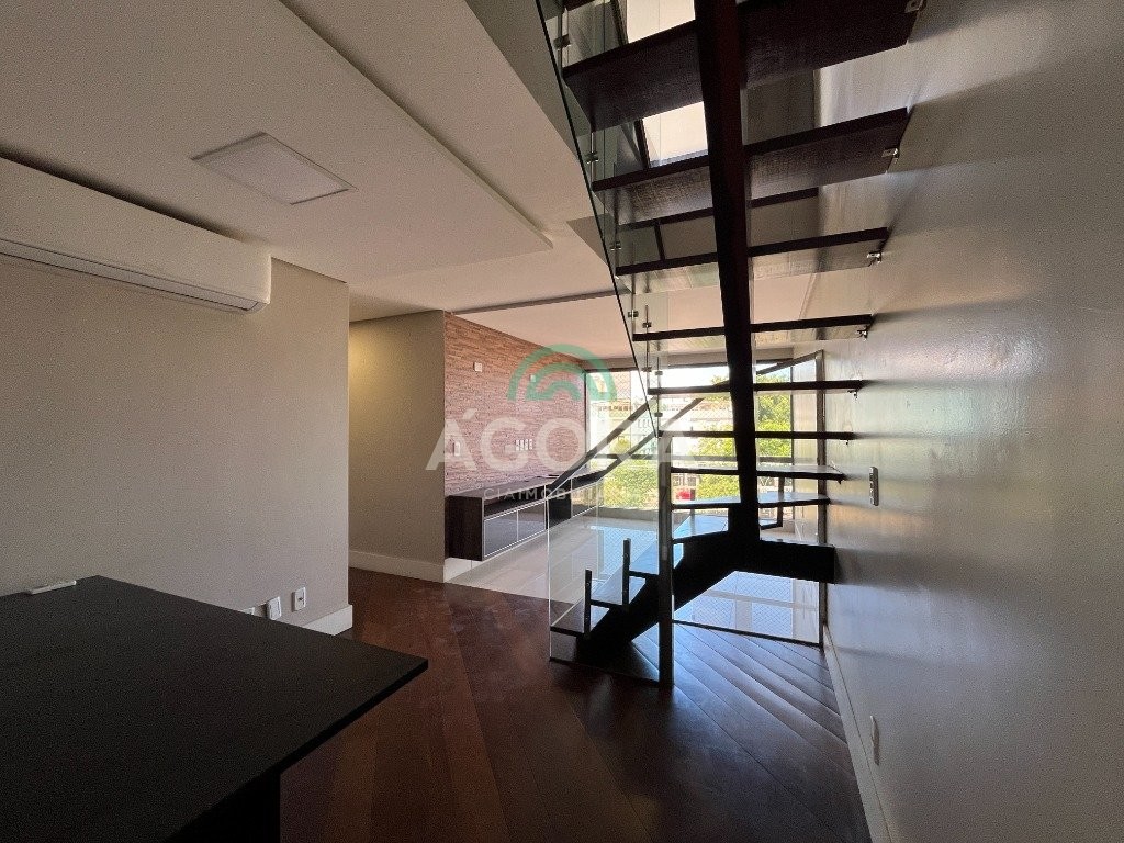 Cobertura de 171,95m² privativos, com 3 (três) dormitórios, 1 (suíte) suíte, lavabo, 3 (três) banheiros, 2 (duas) salas, escritório, cozinha, área de serviço, área gourmet com churrasqueira, amplo pátio e vaga para 2 (dois) carros. Ficam no imóvel 5 (cinco) splits. Fica semi-mobiliado conforme as fotos. Condomínio possui: elevador, gás central, poço artesiano e salão de festas. Aceita financiamento bancário.