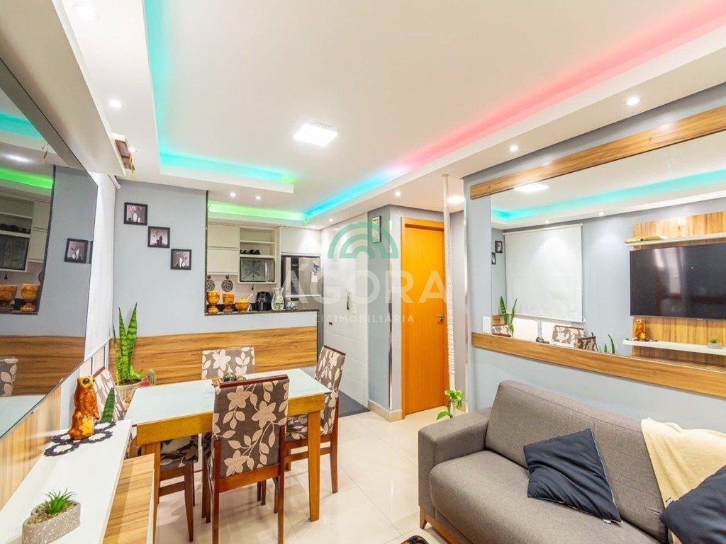 O condomínio possui portaria 24h, salão de festas, piscinas adulto e infantil, brinquedoteca, academia ao ar livre, playground, quiosque com churrasqueira, quadra de esportes. Excelente apartamento de 47m² privativos, semi-mobiliado, com 2 (dois) dormitórios, sala de estar e jantar integradas, banheiro com box de vidro, cozinha com lavanderia e vaga para 1 (um) carro. O condomínio possui portaria 24h, salão de festas, piscinas adulto e infantil, brinquedoteca, academia ao ar livre, playground, quiosque com churrasqueira, quadra de esportes. Localizado em região com fácil acesso a br 116, próximo ao trensurb, universidade luterana do brasil, diversos comércios locais.