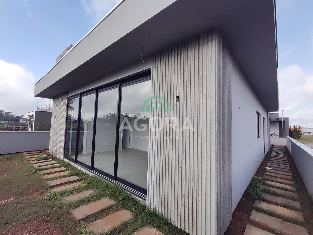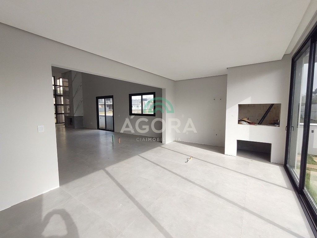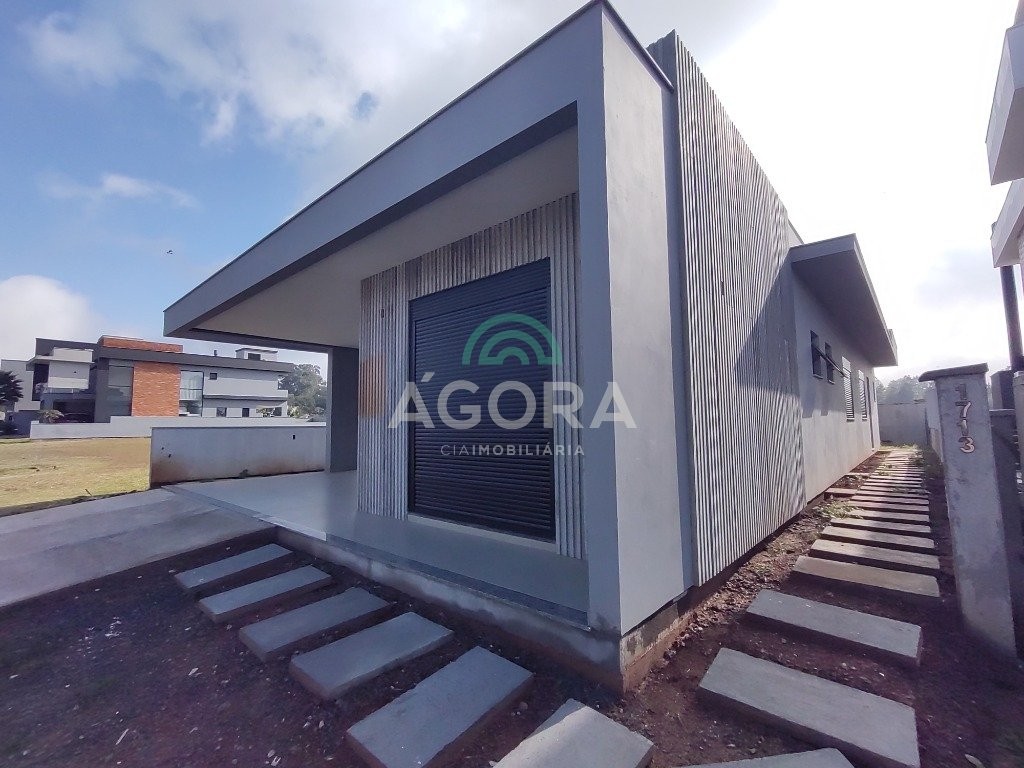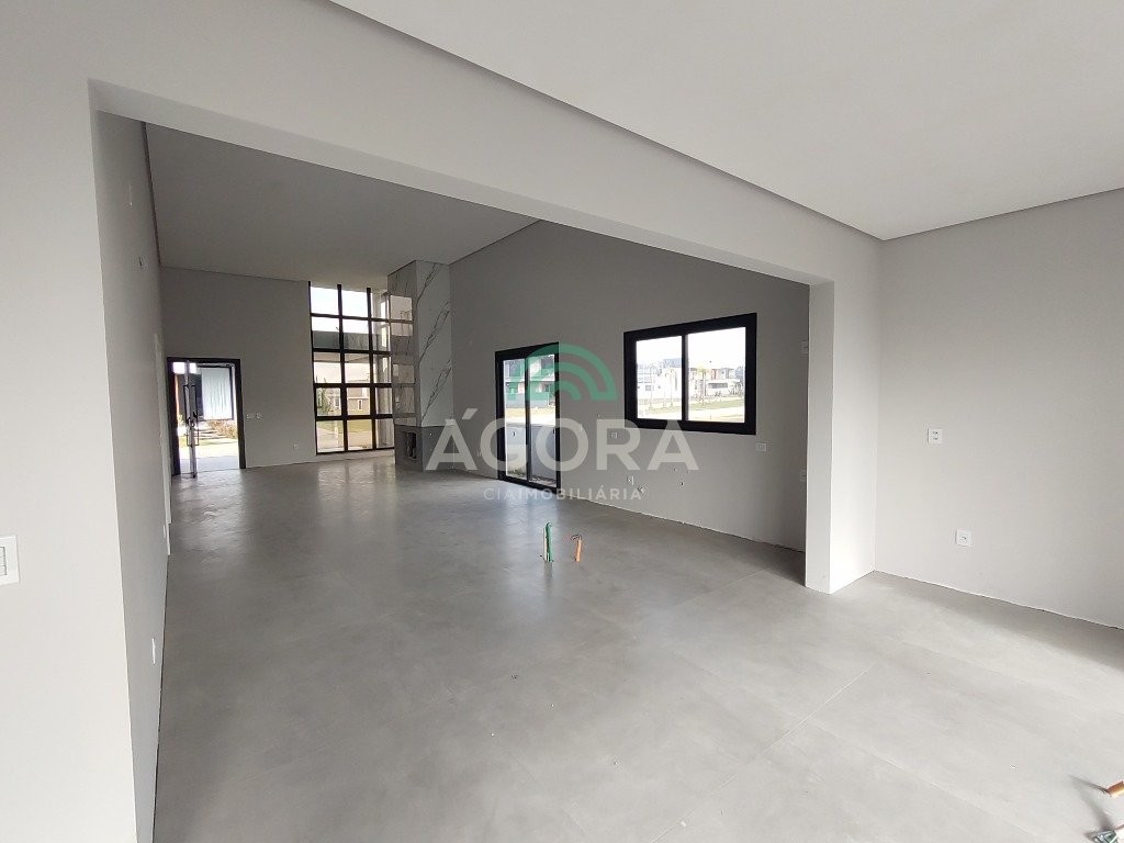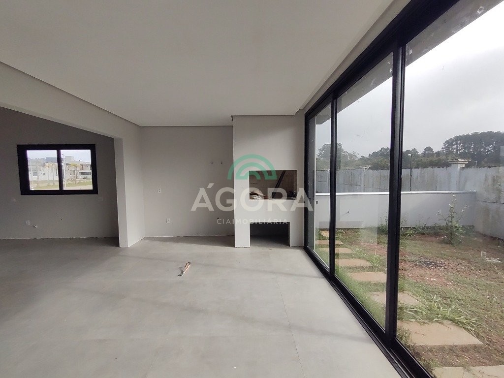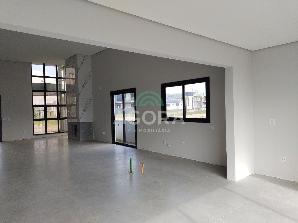 Ágora cia imobiliária vende: casa térrea de 180m² privativos, com 3 (três) dormitórios, sendo 1 (uma) suíte, sala de estar, jantar e cozinha integradas e lareira. Espaço gourmet com churrasqueira e banheiro auxiliar. Lavandaria. Garagem para 2 (dois) carros lado a lado. Imóvel em fase final de construção. Finaliza em abril/25. Construção executada com materiais de primeira qualidade. Revestimentos e acabamentos de alto padrão. Condomínio fechado, com total infraestrutura de lazer, segurança o e paisagismo. Fácil acesso a br-386 e muito próximo a cidade de canoas.