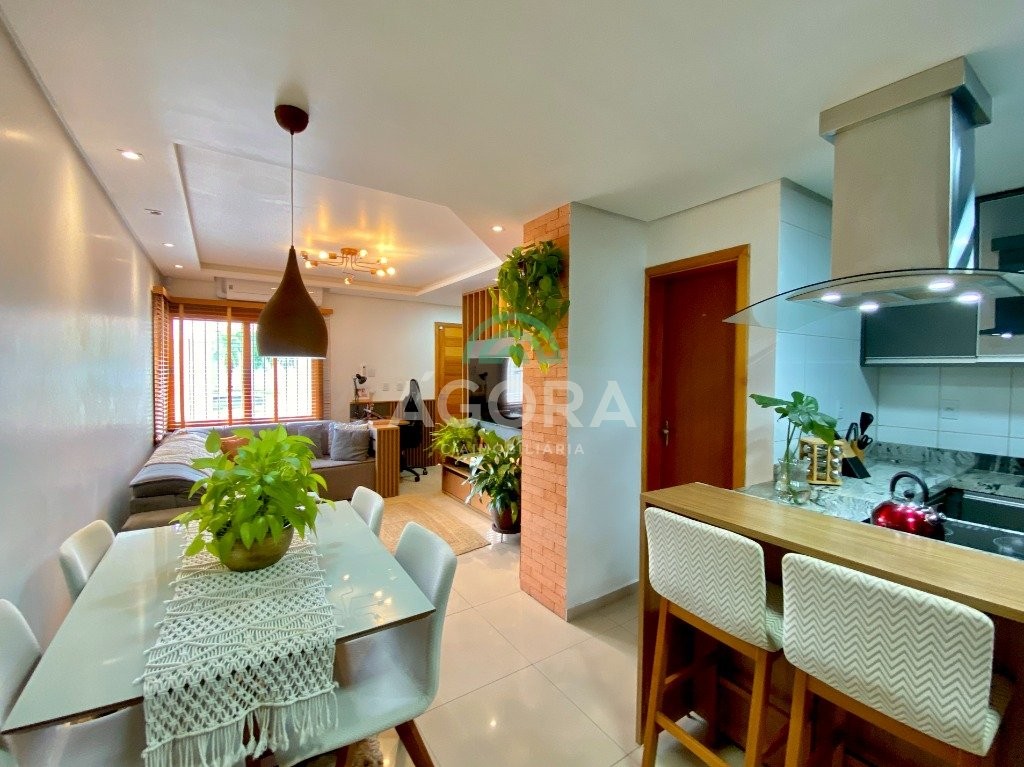 Lindo sobrado semi-mobiliado de 92² metros privativos, com 2 (duas) suítes, sendo 1 (uma) delas com sacada privativa, sala de estar com lareira, integrada com a cozinha totalmente planeja, lavabo, área de serviço independente para maior organização no dia a dia, um dos grandes destaques do imóvel é a área gourmet equipada, ideal para reunir amigos e familiares com conforto, o pátio comporta até dois veículos, e o imóvel permanece com todos os móveis planejados, agregando valor, bom gosto e praticidade para quem busca um lar pronto para morar.