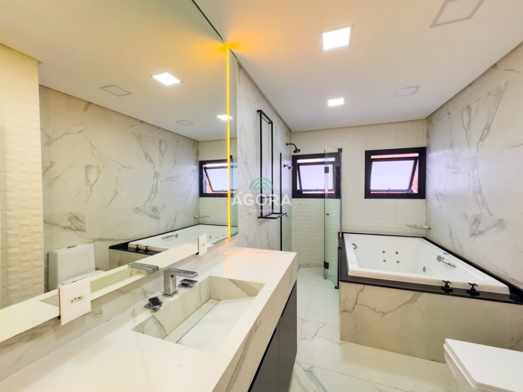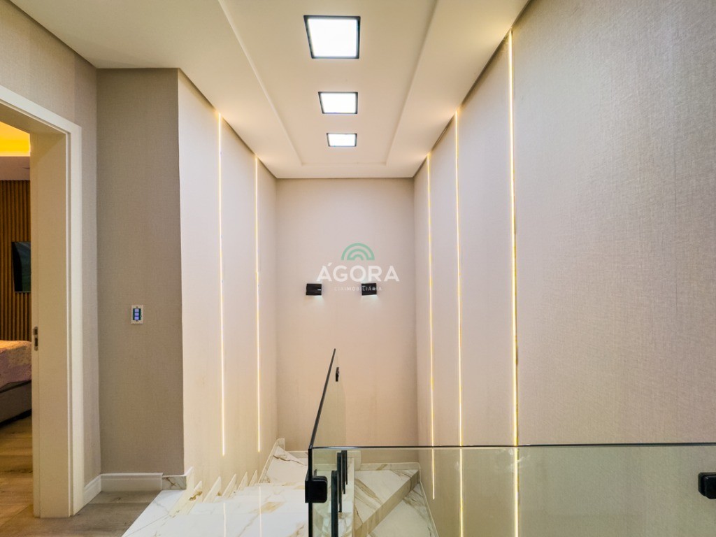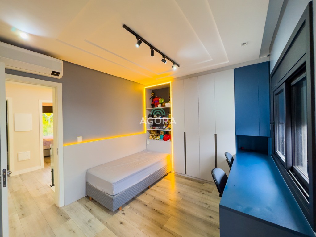 Lindíssimo sobrado semimobiliado, composto de 3 (três) dormitórios, sendo 1 (uma) suíte master com hidromassagem e closet. Sacada, sala de jantar, estar ,cozinha, banheiro social, lavabo, lareira, pátio e jardim com oliveira de 15 anos, área de serviço e churrasqueira. Garagem coberta para 2 (dois) veículos e descoberta para 2 (dois). Rebaixamento em gesso em todo imóvel, piso em porcelanato e área íntima laminado. Esquadrias em pvc preto, vidros duplos, mosquiteiro, área externa com grama artificial, cisterna, placa solar, alexia e tomadas inteligentes e espera para piscina aquecida. Em frente a praça, próximo a mercados e parkshopping canoas.