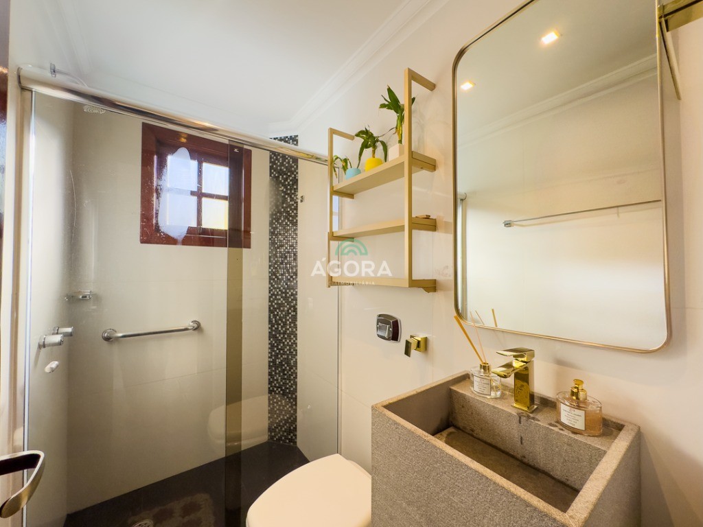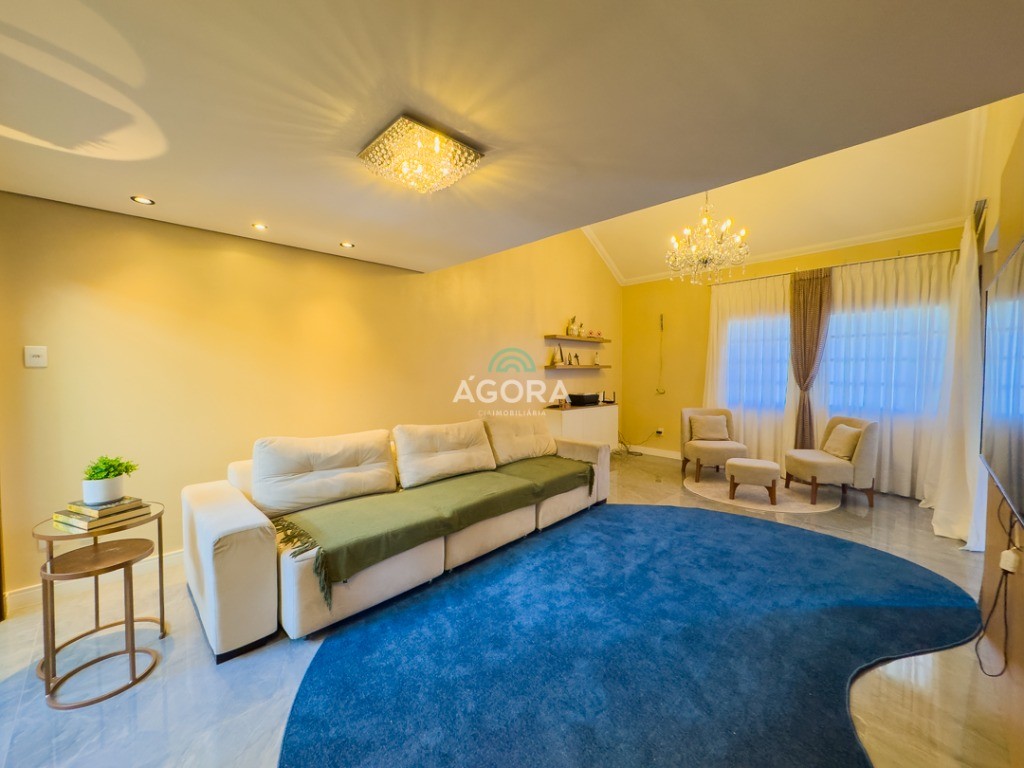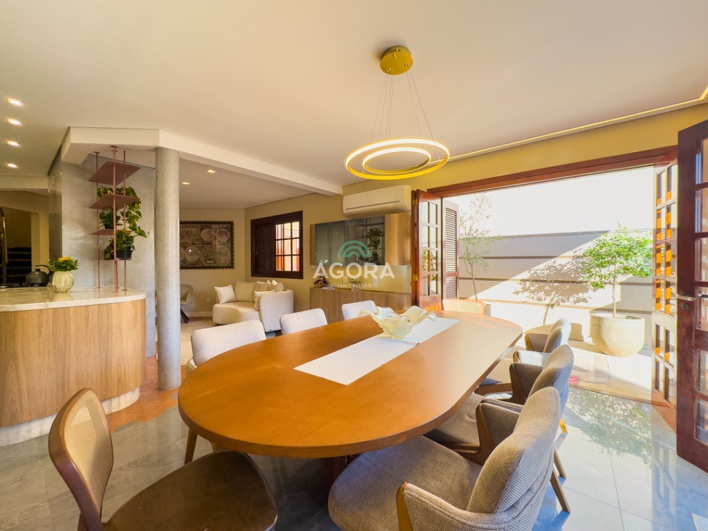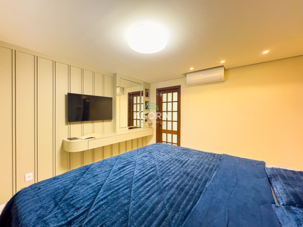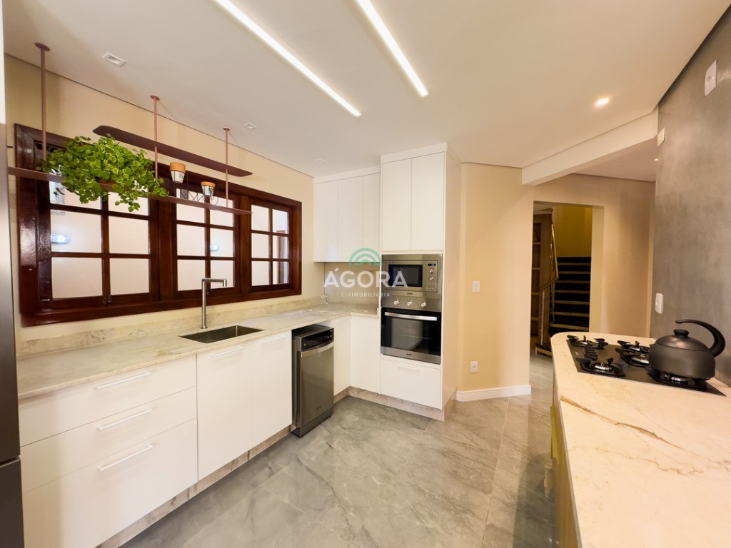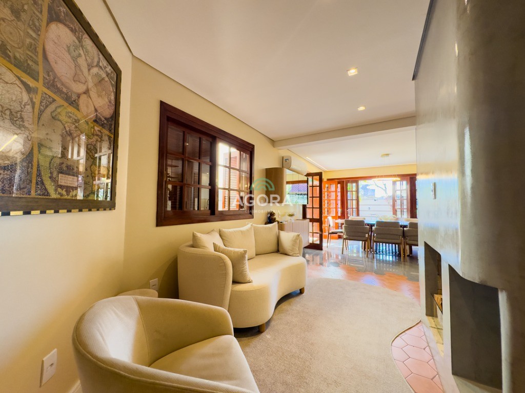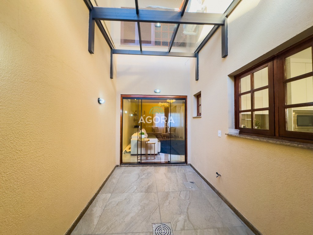 Ágora cia imobiliária vende: belíssimo sobrado com 4 (quatro) dormitórios, sendo 1 (uma) suíte master com closet, banheira de hidromassagem e sacada. 254m² de área privativa, sala de estar com lareira, sala de jantar, cozinha montada, dependência de empregada com banheiro, lavanderia, despensa. 3 (três) banheiros e mais 1 (um) lavado na sala de estar. Churrasqueira interna anexo a área da cozinha. Pátio com paisagismo e piscina. Espaço gourmet anexo aos fundos completamente equipado. Garagem coberta para 2 (dois) carros lado a lado. Vista panorâmica do bairro. Excelente localização. Região central. Fácil acesso e bem próximo a todos os comércios da região. Supermercados, shoping, escolas, igrejas, posto de gasolina, praça e etc. Totalmente reformado e completamente mobiliado. Móveis planejados de alto padrão. Novos e com acabamentos perfeitos. Ficam no imóvel 5 (cinco) ar condicionado split instalados. Casa sem reparos. Ideal para quem procura morar bem, com conforto, qualidade de vida e por um preço justo. Vale a pena visitar está sobrado!