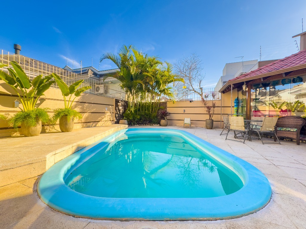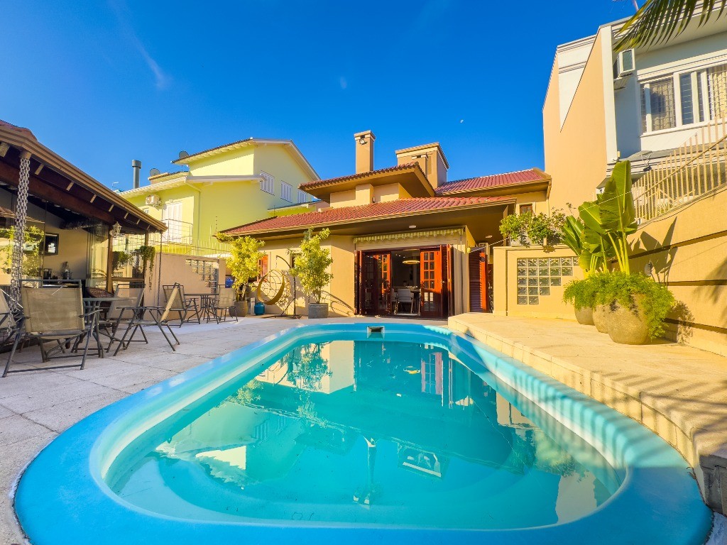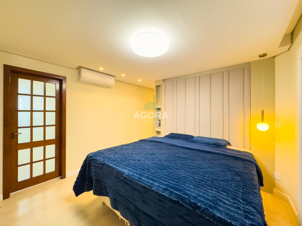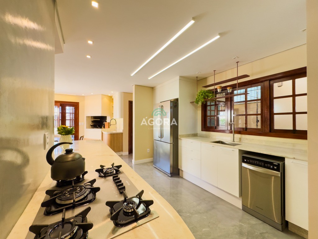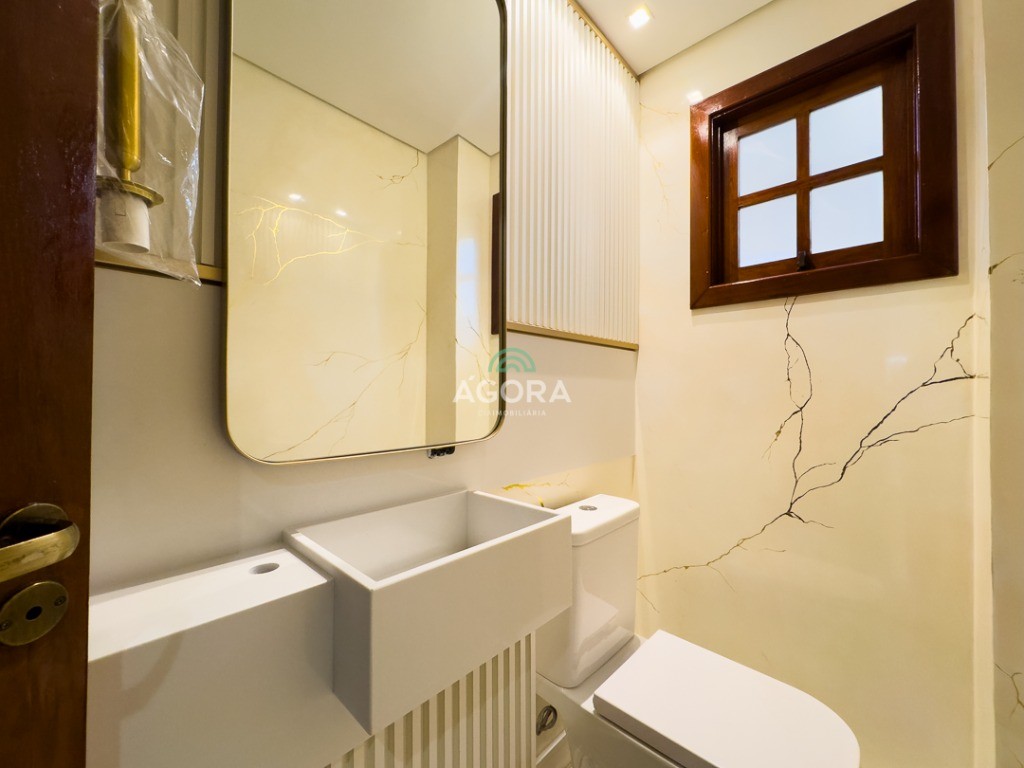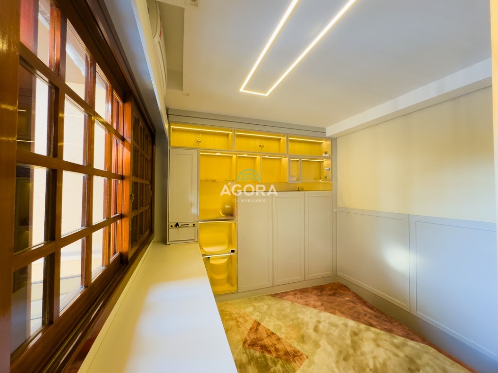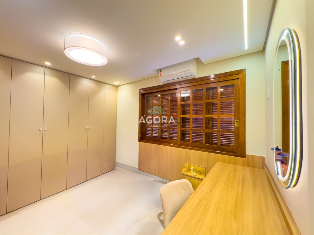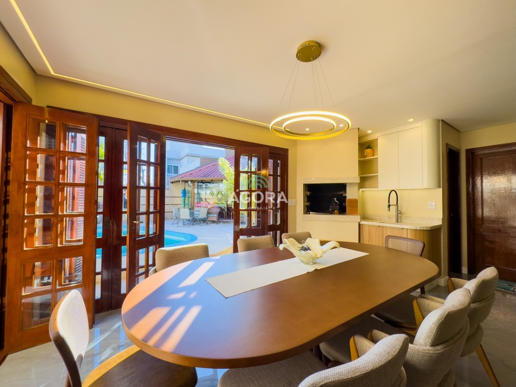 Ágora cia imobiliária vende: belíssimo sobrado com 4 (quatro) dormitórios, sendo 1 (uma) suíte master com closet, banheira de hidromassagem e sacada. 254m² de área privativa, sala de estar com lareira, sala de jantar, cozinha montada, dependência de empregada com banheiro, lavanderia, despensa. 3 (três) banheiros e mais 1 (um) lavado na sala de estar. Churrasqueira interna anexo a área da cozinha. Pátio com paisagismo e piscina. Espaço gourmet anexo aos fundos completamente equipado. Garagem coberta para 2 (dois) carros lado a lado. Vista panorâmica do bairro. Excelente localização. Região central. Fácil acesso e bem próximo a todos os comércios da região. Supermercados, shoping, escolas, igrejas, posto de gasolina, praça e etc. Totalmente reformado e completamente mobiliado. Móveis planejados de alto padrão. Novos e com acabamentos perfeitos. Ficam no imóvel 5 (cinco) ar condicionado split instalados. Casa sem reparos. Ideal para quem procura morar bem, com conforto, qualidade de vida e por um preço justo. Vale a pena visitar está sobrado!