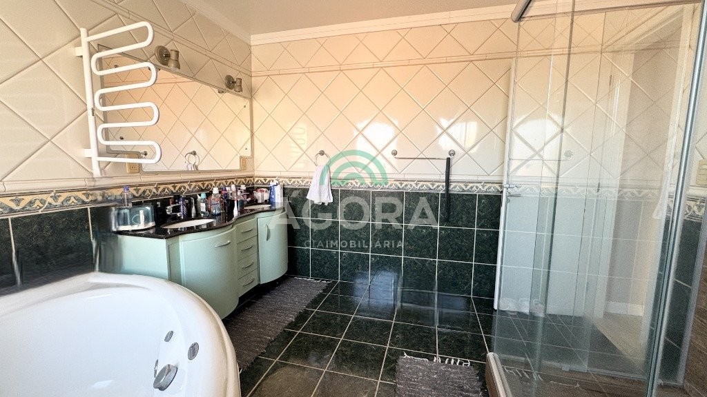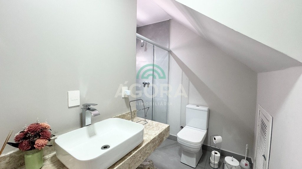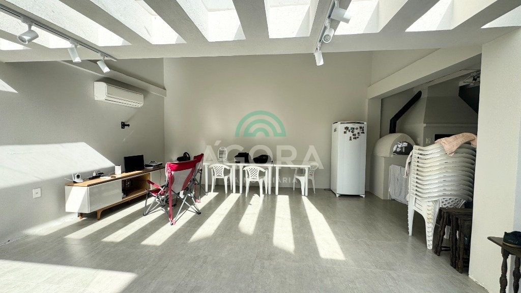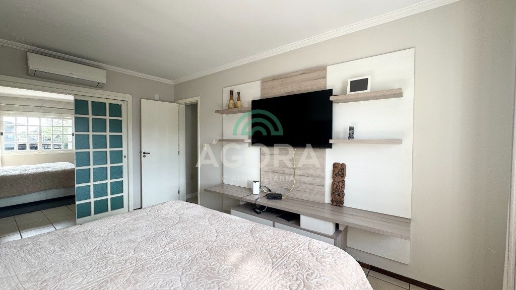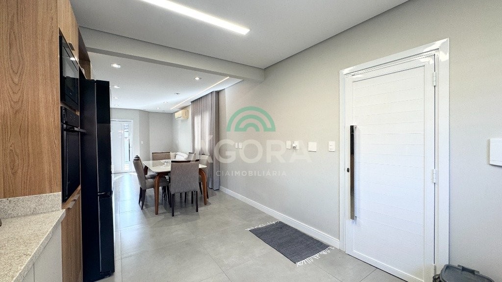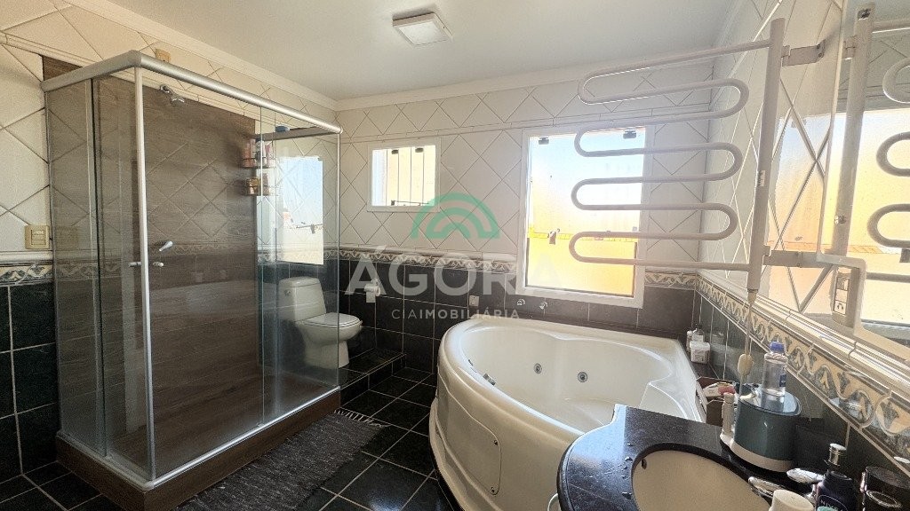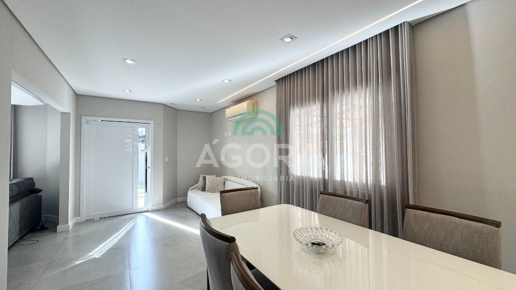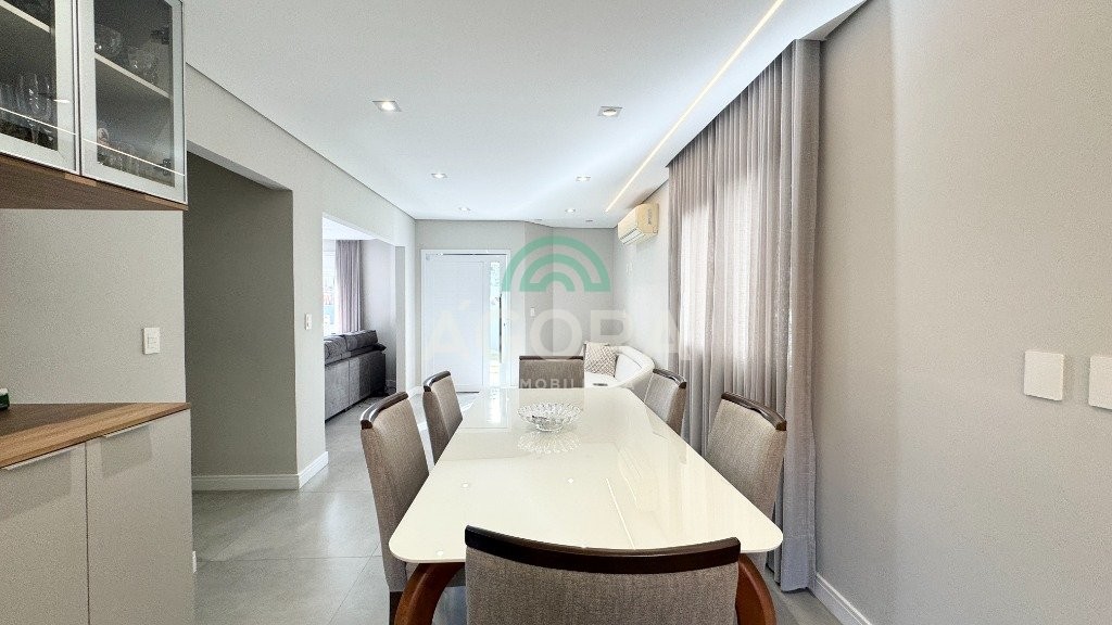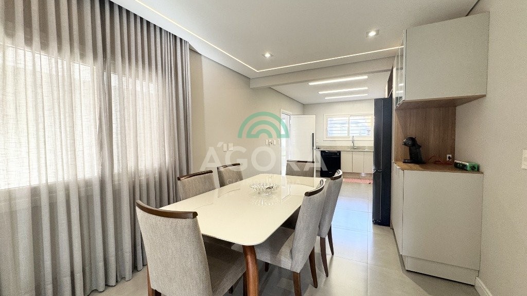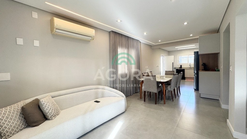 Ágora cia imobiliária vende: Sobrado com 290m², 3 (tres) dormitórios sendo 1 (uma) suíte com sacada, 2 (dois) closets e banheira, cozinha planejada, sala de estar e jantar integradas, lavanderia, 2 (duas) vagas cobertas e 2 (duas) vagas descobertas. Área gourmet com churrasqueira e forno de pizza, mezanino, banheiro, toda área fechada com portas de vidro. Pátio grande com piscina. Aberturas do térreo todas em PVC. Ficam todos móveis fixos, camas, sofá e mesas. Possui portão automático e placas fotovoltaicas, 7 (sete) ar condicionados split.