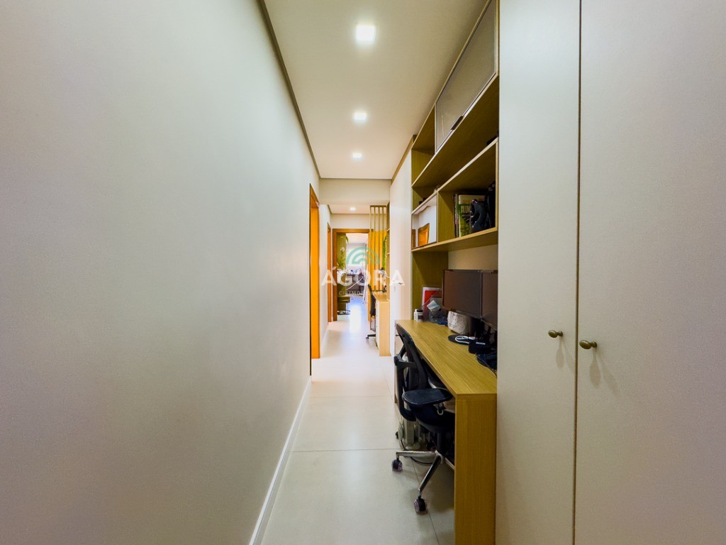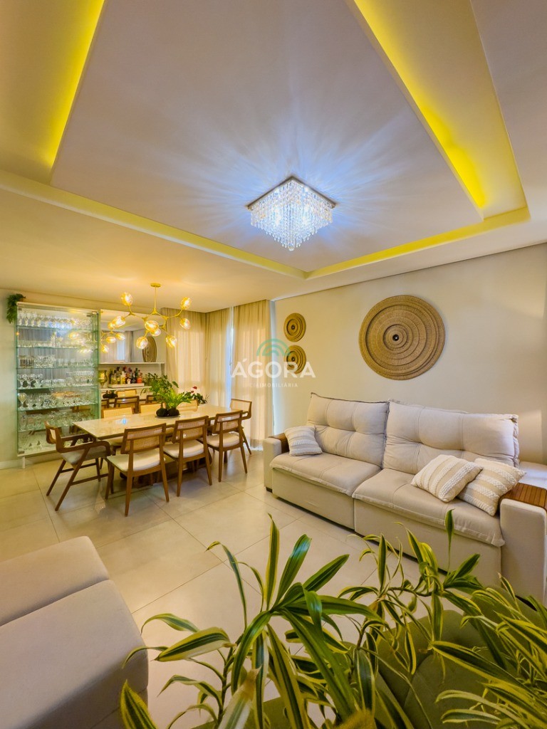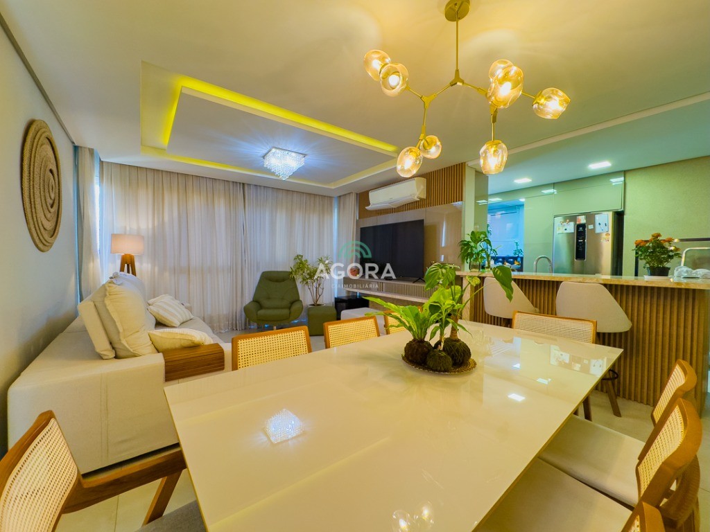 Localizado com fácil acesso às principais avenidas da cidade, o condomínio oferece portaria remota, salão de festas mobiliado, espaço fitness e espaço kids, além de um custo condominial reduzido. Deslumbrante apartamento, finamente mobiliado, de 132m² de área privativa, com 3 (três) suítes, sendo 1 (uma) master com closet, amplo living com sala de estar, jantar e cozinha totalmente integradas, amplo corredor com armários e escritórios, móveis de alta qualidade, lareira, churrasqueira, lavabo, banheiro social, área de serviço independente, e 3 (três) vagas de garagem cobertas e um depósito individual. É uma excelente oportunidade para quem busca um imóvel pronto para morar, com elegância, qualidade construtiva e em localização privilegiada. Agende sua visita e encante-se com cada detalhe.