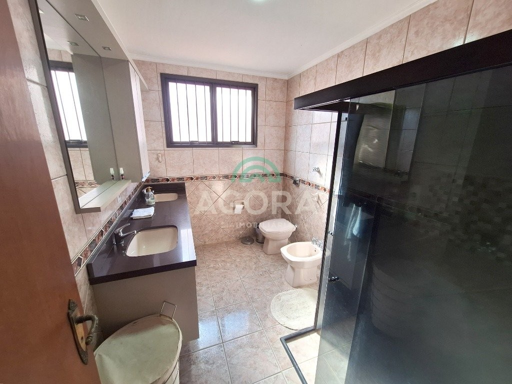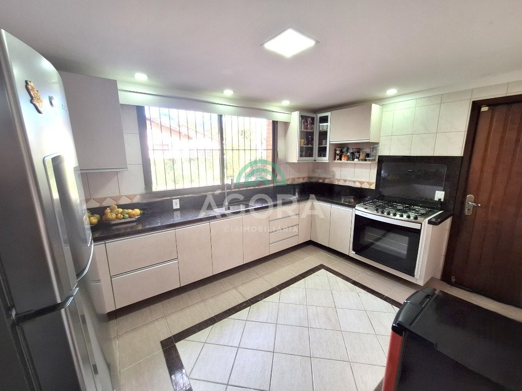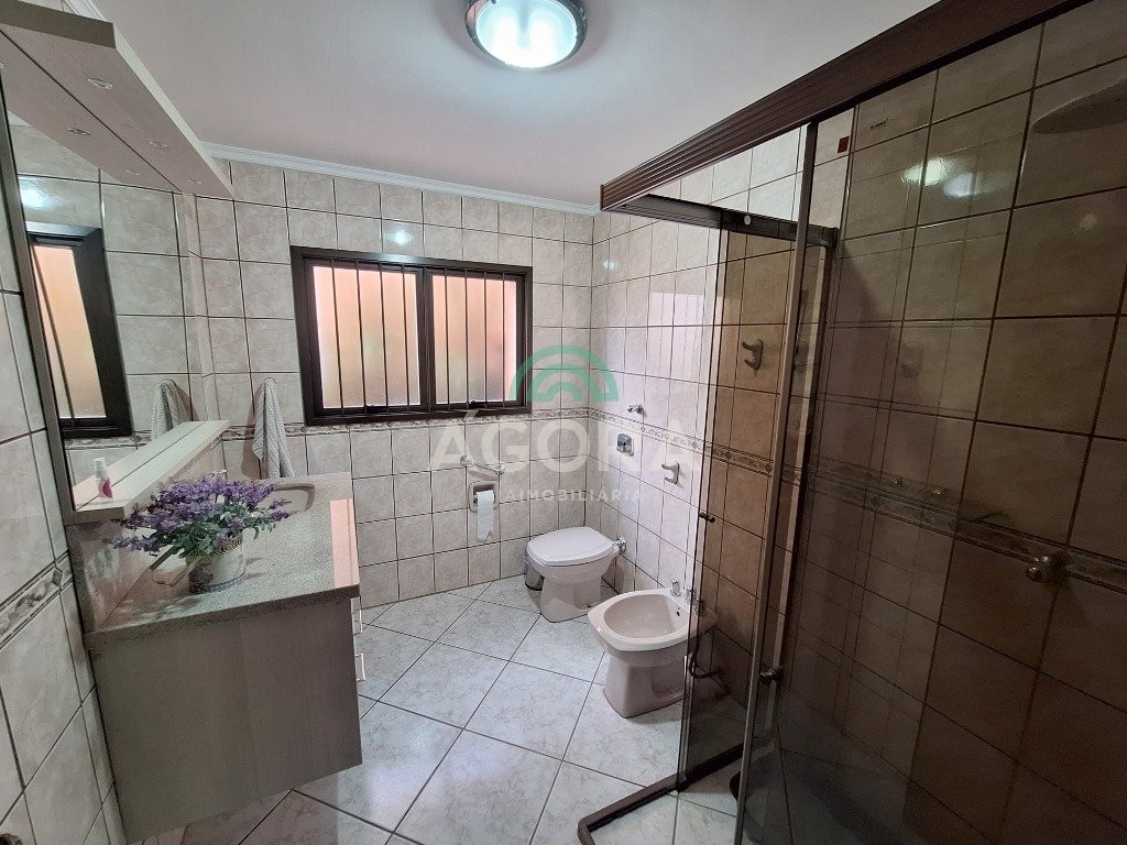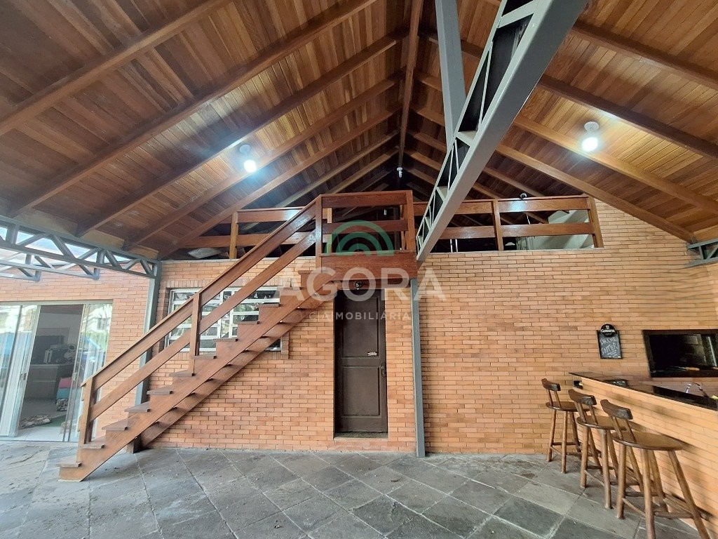 Sobrado mobiliado com ótimo padrão construtivo, composto por 4 (quatro) dormitórios sendo 1 (um) no térreo, e 1 (uma) varanda no andar de cima. Piso superior e escada com madeira nobre. Sala de estar com lareira integrada com sala de jantar, cozinha ampla com móveis sob medida, nos fundos salão de festas com mezanino e churrasqueira, garagem ampla para até 3 (três) carros cobertos,