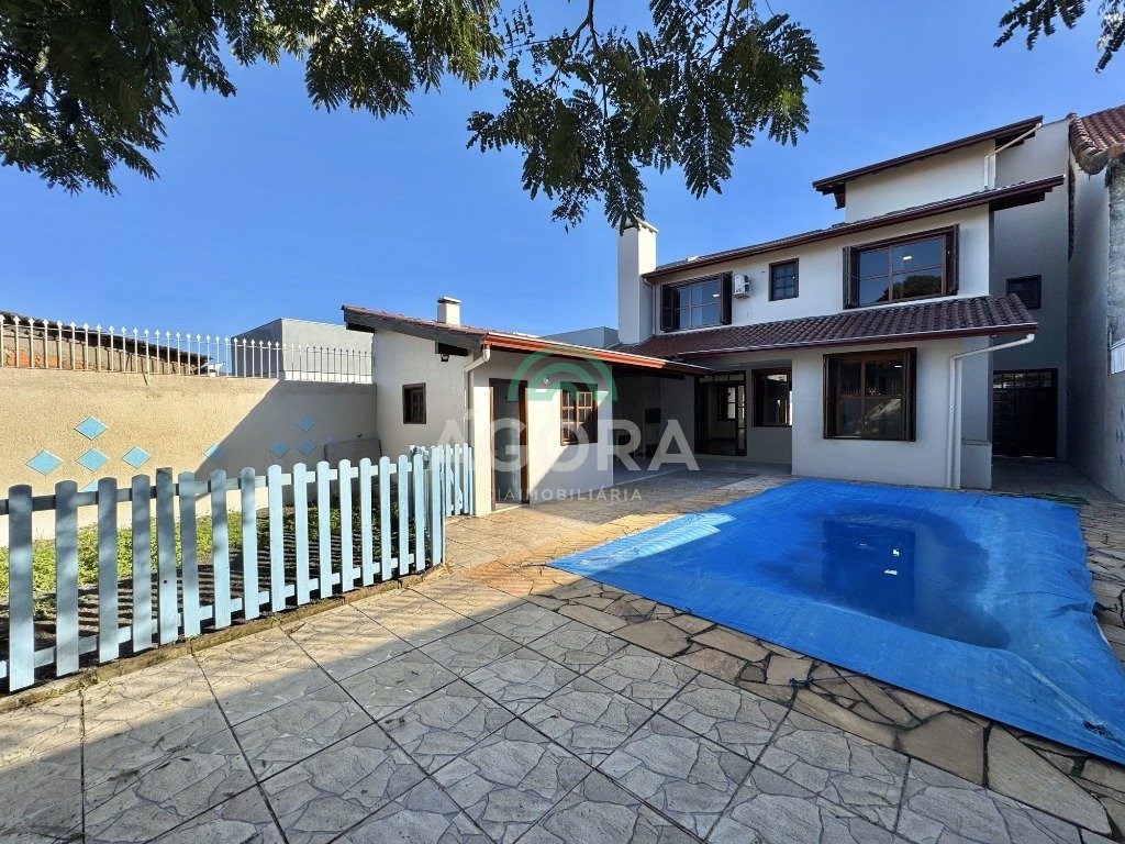 Lindíssimo sobrado no bairro harmonia, com 212m² de área privativa e 363m² de área total. No térreo, conta com 2 (dois) pátios, frente e fundos, piscina, churrasqueira, banheiro externo, box, além de sala de estar, cozinha, área de serviço e lavabo. No segundo pavimento, são 4 (quatro) dormitórios, sendo 1 (uma) suíte com banheira e sacada, além de banheiro social. São 3 (três) vagas de garagem, sendo 2 (duas) vagas cobertas. Excelente localização, em rua tranquila e próximo a comércios, escolas e vias de acesso.
