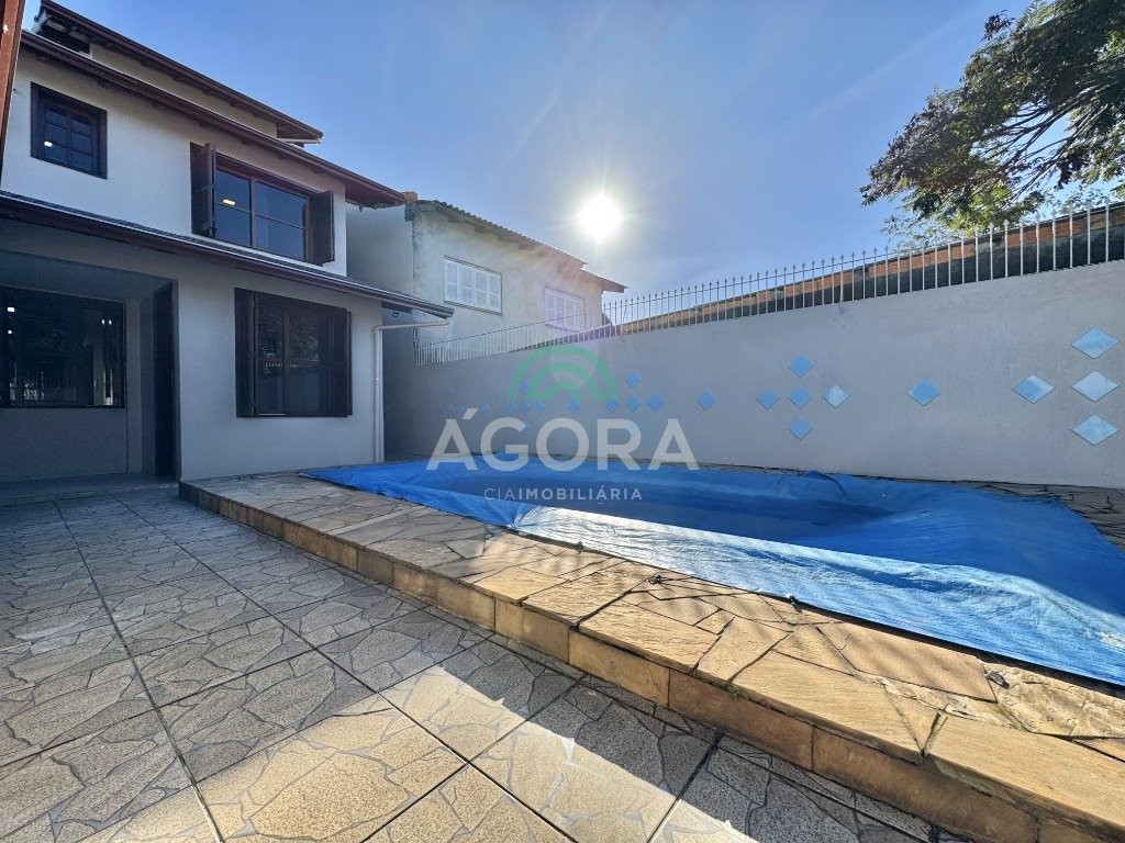 Lindíssimo sobrado no bairro harmonia, com 212m² de área privativa e 363m² de área total. No térreo, conta com 2 (dois) pátios, frente e fundos, piscina, churrasqueira, banheiro externo, box, além de sala de estar, cozinha, área de serviço e lavabo. No segundo pavimento, são 4 (quatro) dormitórios, sendo 1 (uma) suíte com banheira e sacada, além de banheiro social. São 3 (três) vagas de garagem, sendo 2 (duas) vagas cobertas. Excelente localização, em rua tranquila e próximo a comércios, escolas e vias de acesso.