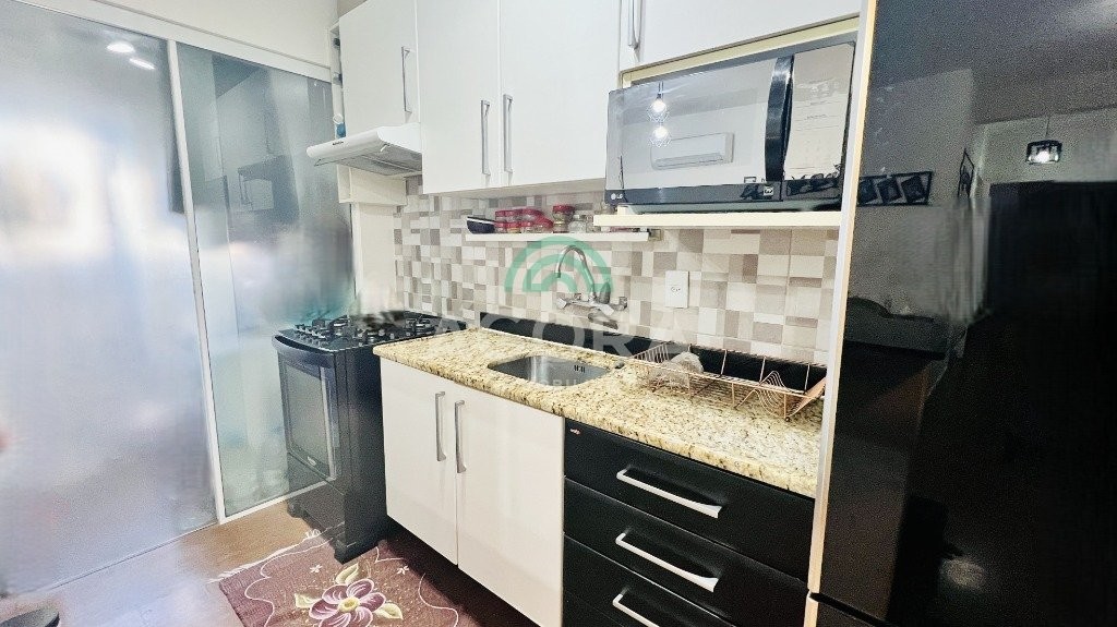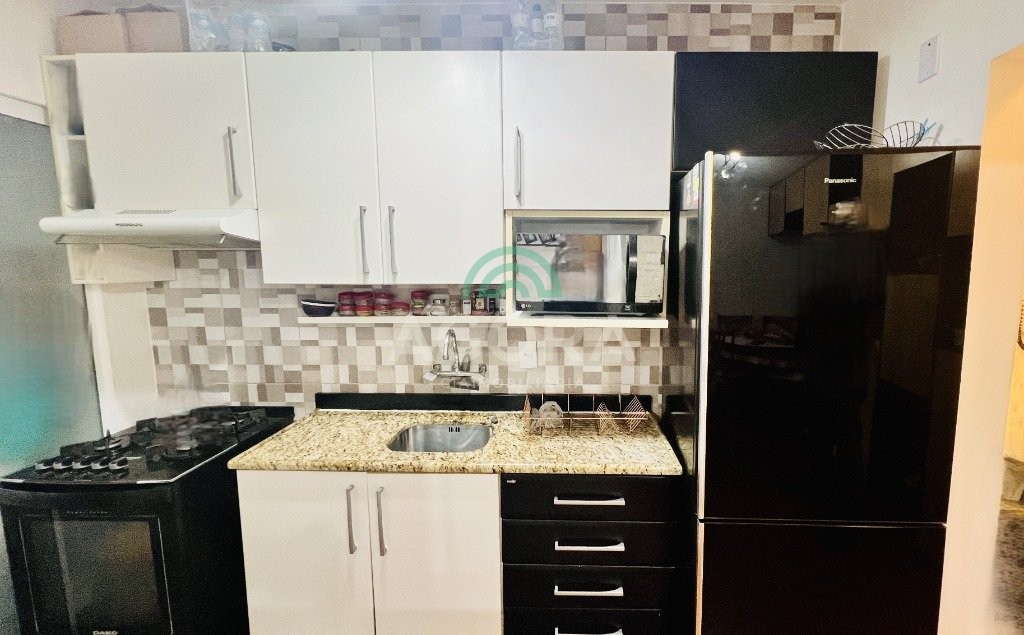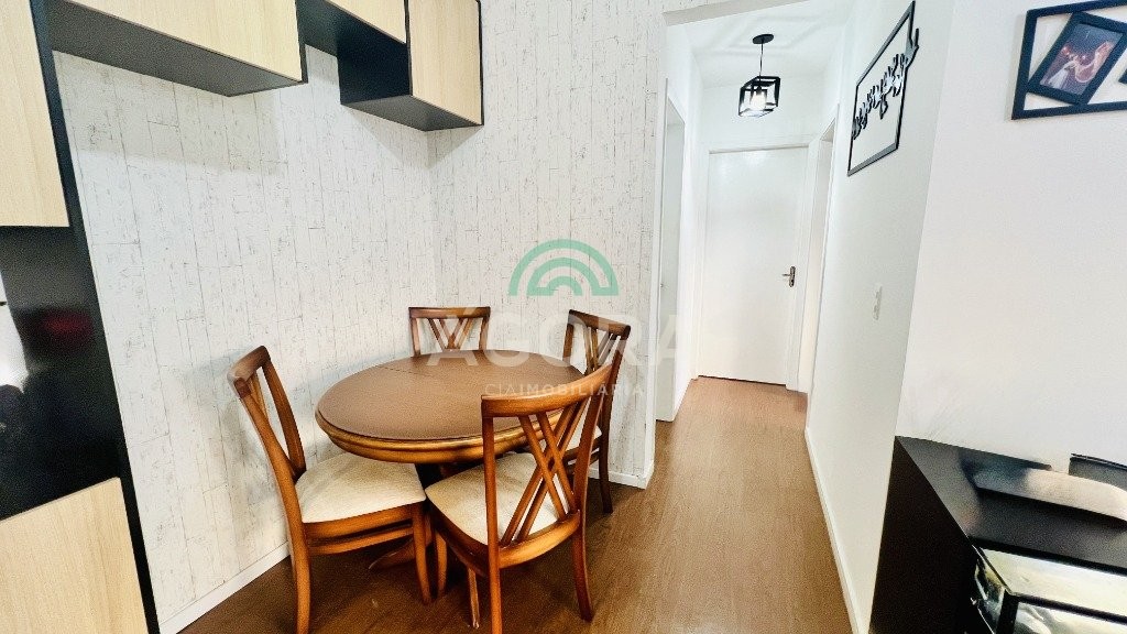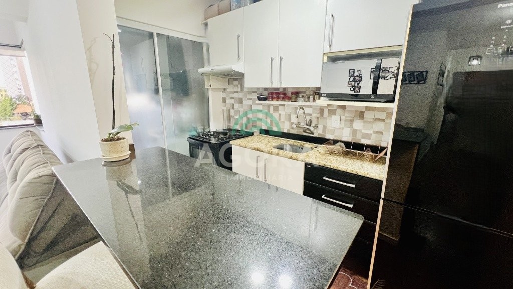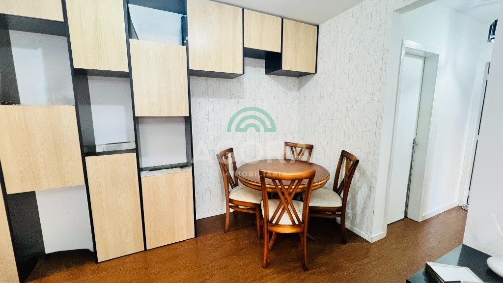 sofisticado apartamento mobiliado com 2 (dois) dormitórios, sala com sacada integrada (sacada fechada com disponibilidade de 75% de abertura), churrasqueira, cozinha americana, banheiro social, área de serviço, box simples. Imóvel com acabamentos de primeira linha, gesso, sanca, lâmpadas dicroicas, móveis dell anno, granito e espelhos.
