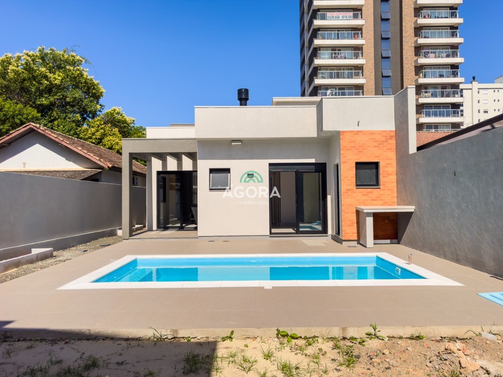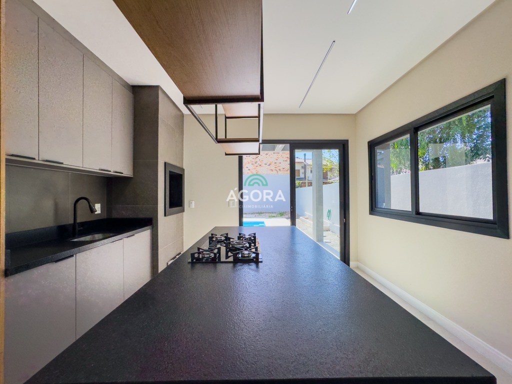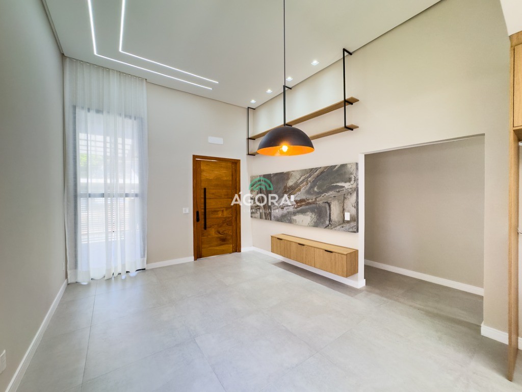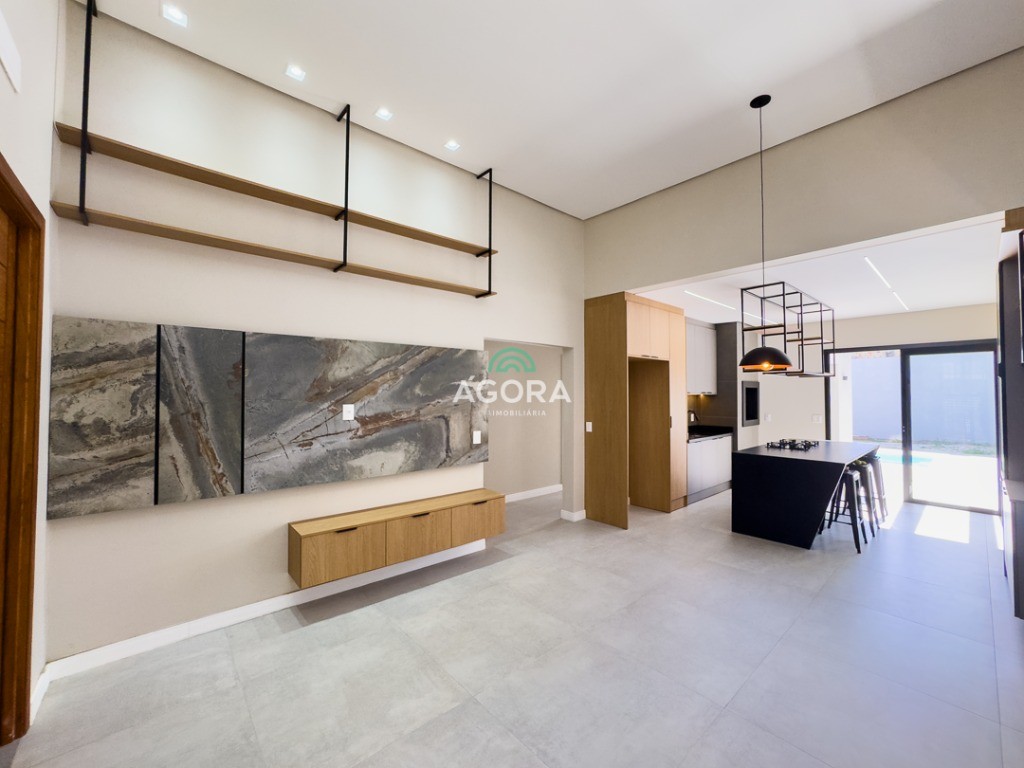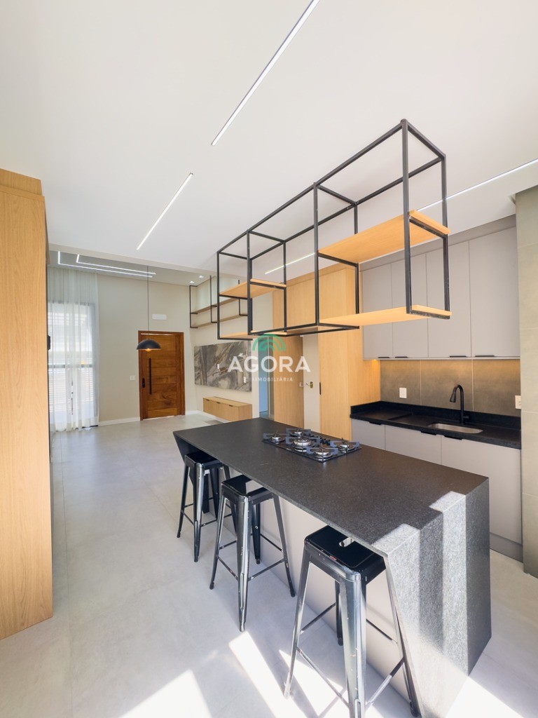 Casa térrea de123,55m² de área privativa, sendo 3 (três) dormitórios, 1 (uma) suíte, sala, living, cozinha, lavanderia, banheiro social e lavabo, 2 (duas) vagas cobertas e piscina com espera para aquecimento. Imóvel com espera fotovoltaica e aquecimento a gás. Incluso as pedras são gabriel preto escovado nos banheiros , living, lavabo e lavanderia. Imóvel fica com moveis planejados em todos os ambientes. Grades frontal de vidros, tem espera para câmera , interfone e pontos de luz e pergolado.