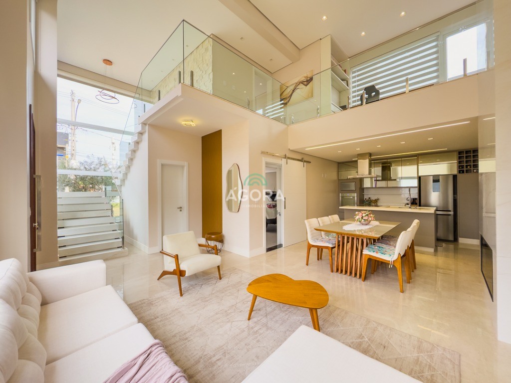 Ágora Cia Imobiliária vende: Sobrado incrível a venda com arquitetura moderna e imponente de esquina com ótima orientação solar, composto por 2 (duas) suítes, close, pé direito alto, cozinha integrada, espaço gourmet, lareira e lavanderia. Sobrado finamente mobiliado, controle de Alexia nas cortinas, tv, ar condicionado e luzes. Condômino fechado com toda infraestrutura de lazer e segurança para sua família, ótima localização a Porto Alegre e próximo ao aeroporto e zona norte e centro de Canoas, mercado, farmácias e demais comercio próximo.