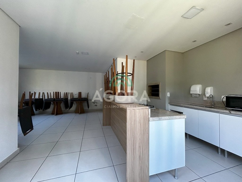 Ágora Cia Imobiliária vende: Apartamento de 53m² privativos, com 2 (dois) dormitórios, banheiro social, sala com lareira, cozinha com churrasqueira, área de serviço integrada, espera para água quente e esperas para split e vagas para 2 (dois) carros. O condomínio possui jardim e medidores de água e gás individuais. Localizado próximo a praças e diversos comércios locais.