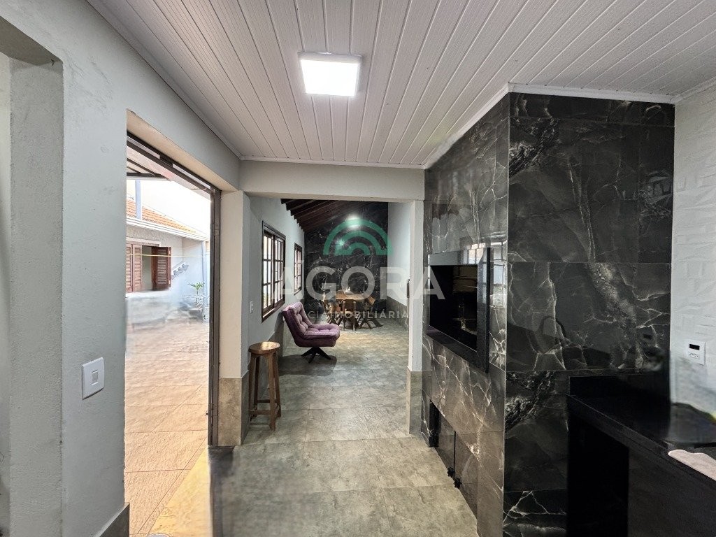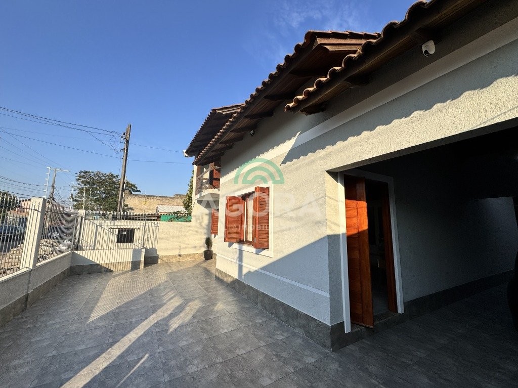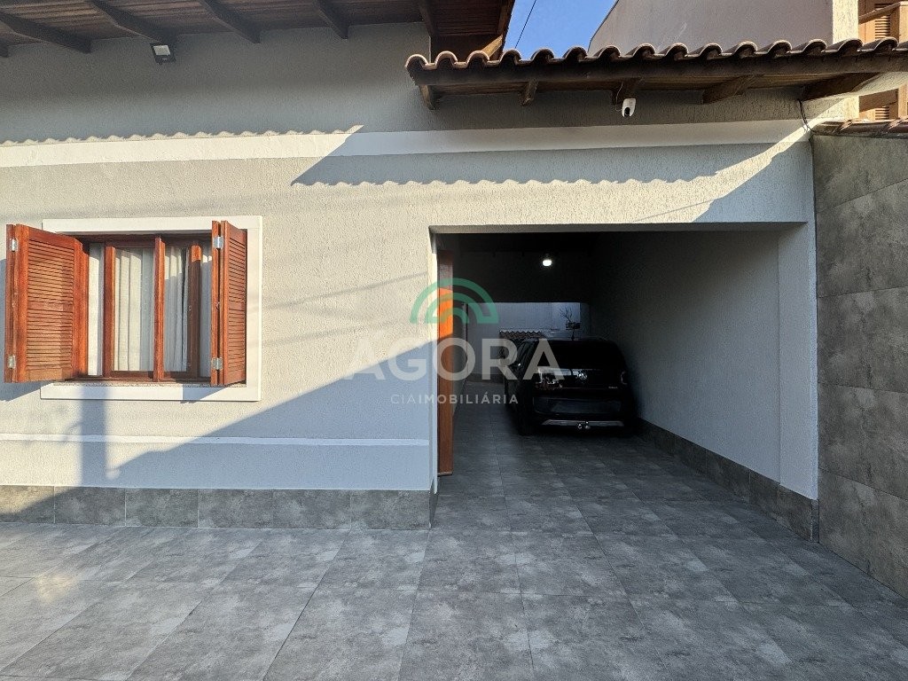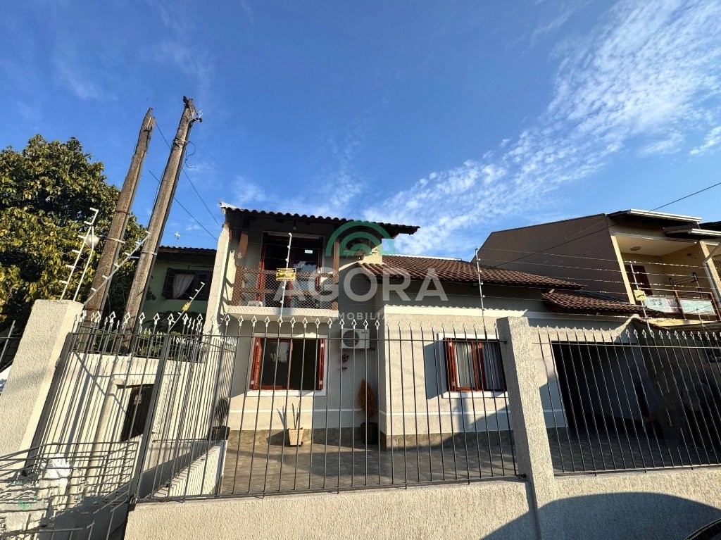 Sobrado de 181m² privativos, total de 3 (três) dormitórios, sendo 1 (uma) suíte com sacada piso superior, piso inferior com living integrado entre sala de estar e jantar com belo mezanino, cozinha separada, banheiro social, salão de festas com área de serviço, churrasqueira, 1 (um) dormitório pequeno, pátio, passagem lateral com garagem para até 3 (três) carros. Pátio frente. Localizado próximo a rua da republica, supermercado e demais comércios do bairro, fácil acessibilidade para a br448. . .