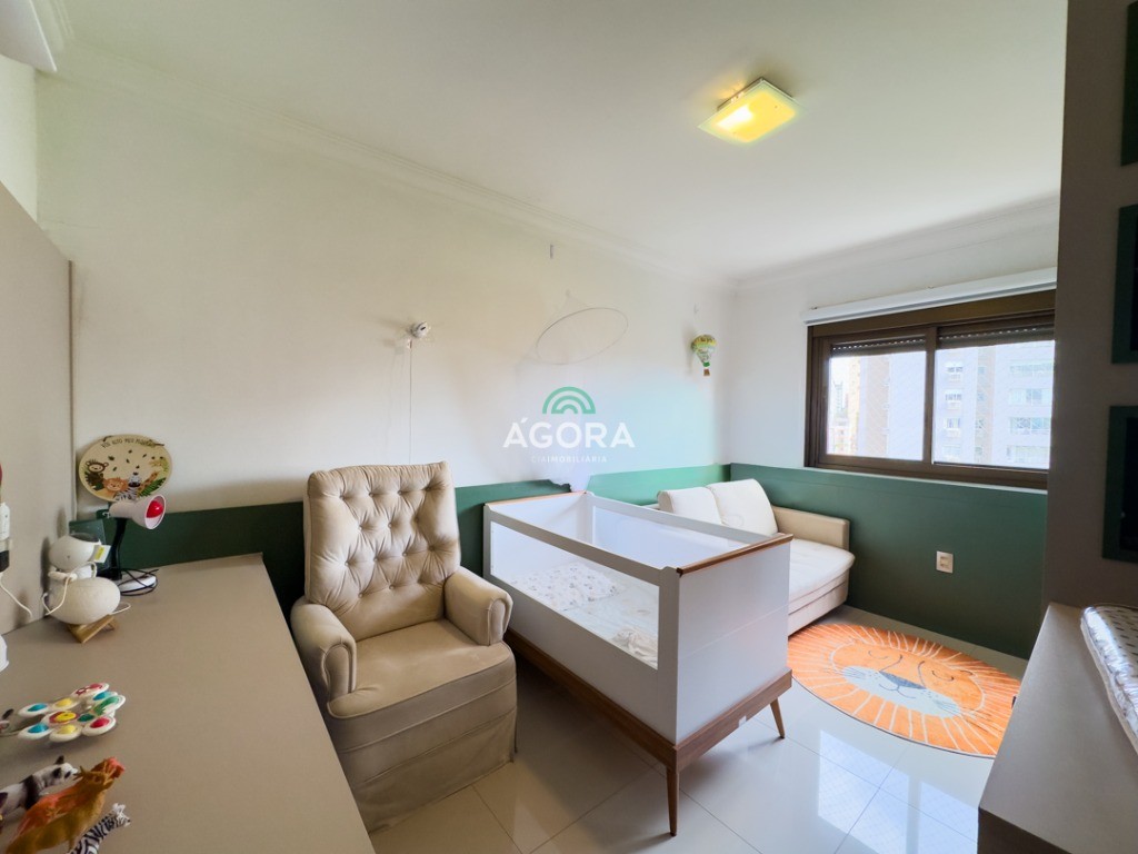 Apartamento com 4 (quatro) dormitórios, sendo 1 (uma) suíte, living estar e jantar integrado, sacada gourmet frontal, cozinha independente, lavanderia fechada, 2 (duas) vagas de garagem coberta e o imóvel fica semi-mobiliado. Condomínio com espaço gourmet, sala fitness, zeladoria, portaria digital monitorada,