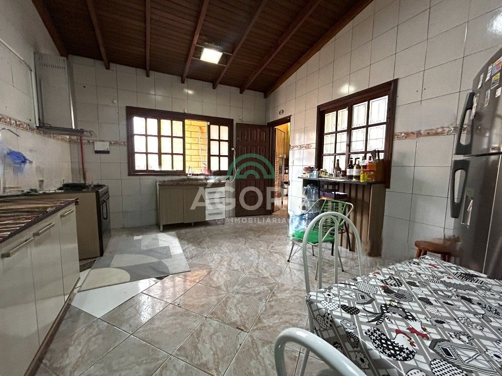 Casa térrea de 200 m² totais, salas, cozinha, 3 (três) dormitórios, sendo 1 (uma) suíte com hidromassagem, lareira, churrasqueira e vaga de garagem para 3 (três) carros.