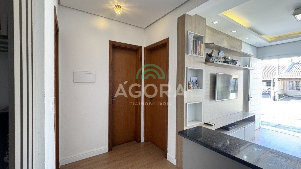 Casa térrea em condomínio, de 57m² privativos, living integrado entre sala de estar e cozinha, espaço gourmet nos fundos com churrasqueira, pequeno pátio nos fundos. O imóvel permanece semimobiliado com os móveis sob medida. 2 (duas) vagas para veículos. Condomínio moderno e seguro, com portaria virtual 24h com reconhecimento facial e app de acesso remoto