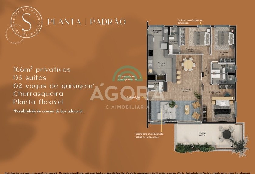 Apartamentos de luxo com 166m² privativos - pronto para morar unidade 501 disponível viva em uma torre única com apenas 12 apartamentos onde exclusividade e conforto são prioridade cada unidade conta com uma vista panorâmica da cidade trazendo luz natural e amplitude para todos os ambientes destaques do apartamento 166m² de área privativa 3 (três) suítes espaçosas 2 (duas) vagas de garagem churrasqueira integrada ampla sacada com vista privilegiada planta flexível e bem distribuída personalizações opcionais lavanderia fechada mini spa privativo escritório ou home office adaptação para acessibilidade infraestrutura e comodidades preparo para portaria virtual depósito individual bicicletário com bicicletas comunitárias atenuação acústica entre pavimentos salão de festas ficha técnica torre única com 12 unidades 7 pavimentos projeto arquitetônico a3 arquitetura. Engenharia | @a3arquitetura. Engenharia projeto de interiores ren studios | @ren. Studios pronto para morar