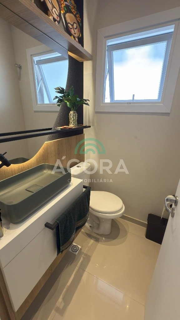 Excelentes sobrados com 3 (três) dormitórios, sendo 1 (uma) suíte com área privativa de 128,76m², living com lareira, churrasqueira e lavanderia separada piso inferior com porcelanato e piso superior com laminado. Abertura 100% pvc e água quente nos ambientes. Localização próxima a todas as necessidades diárias e ao shopping e supermercados